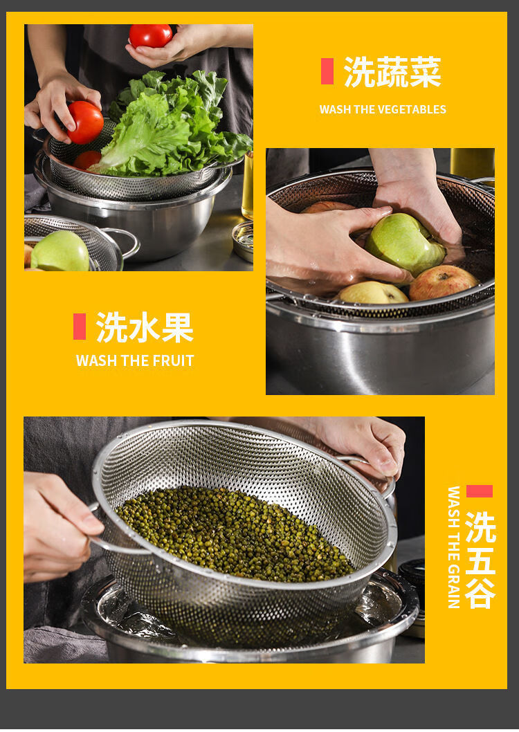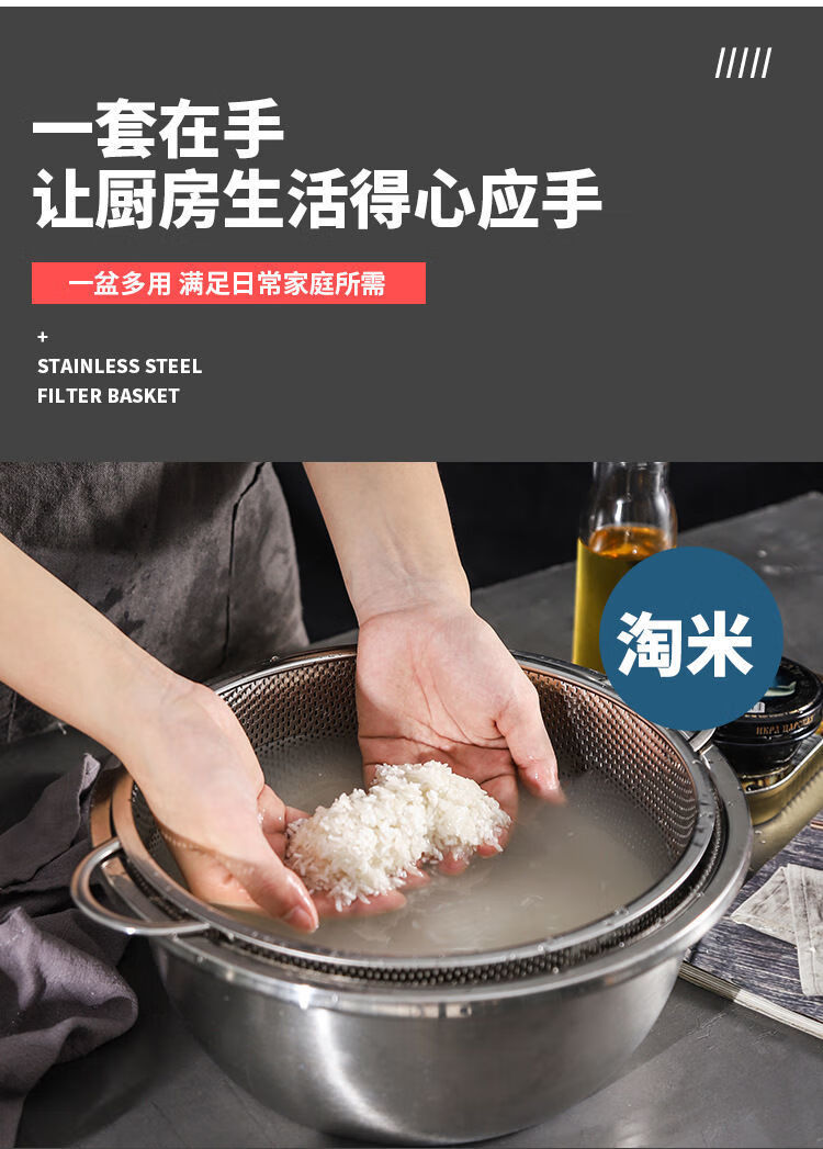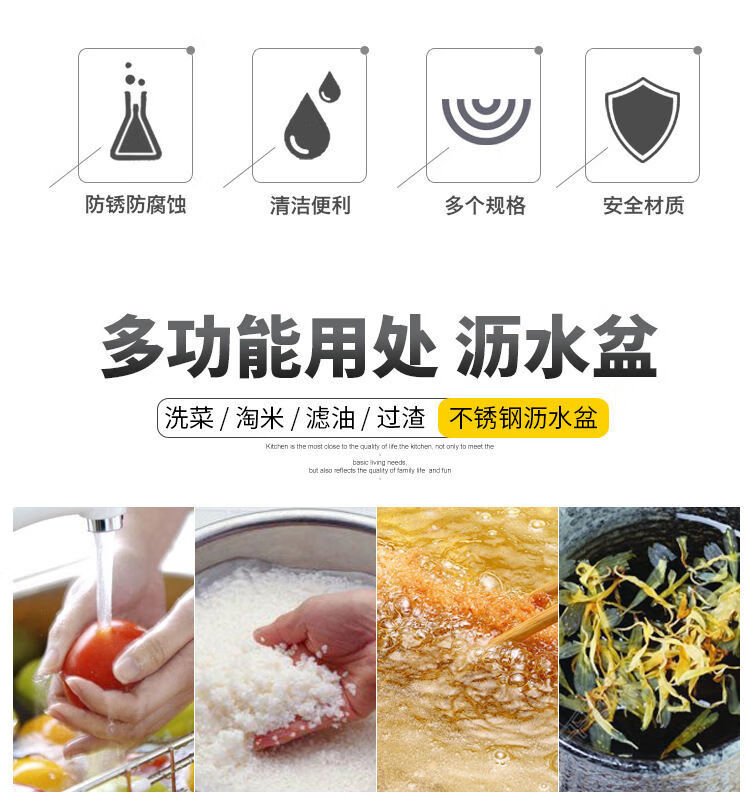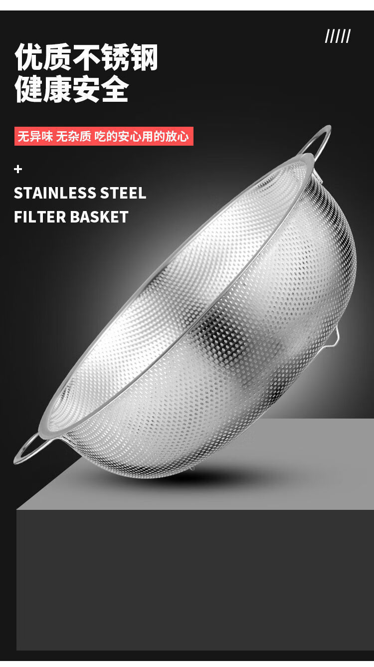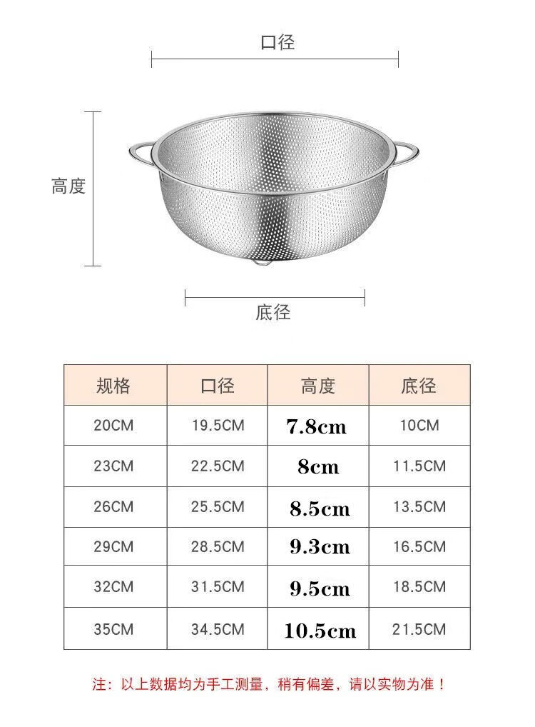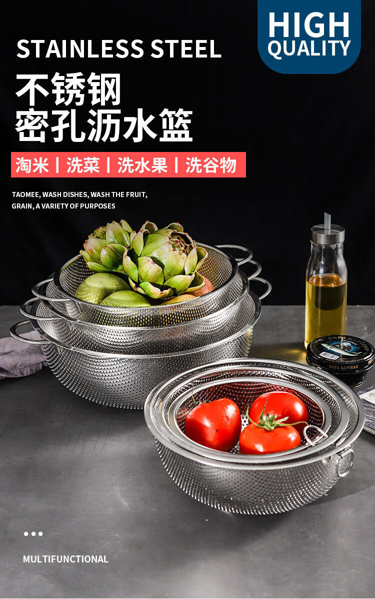 Bodenju stainless steel sink drain basket household fruit basin vegetable basket kitchen vegetable basket water food grade double ear dense hole basin 28.5CM leaky basin + 31CM solid basin