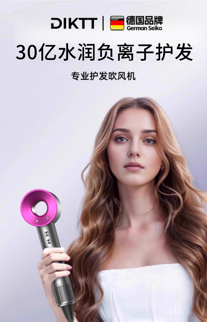 DIKTT Germany hair dryer for home use, silent negative ions, high power, no harm to power generation, hair dryer for girls, genuine home use, no harm to hair, silent second-drying hair care hair dryer, rose red, single nozzle, 3 billion negative ions, Valentine's Day gift for your partner