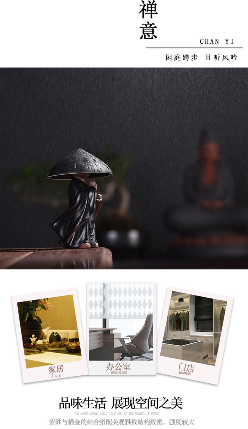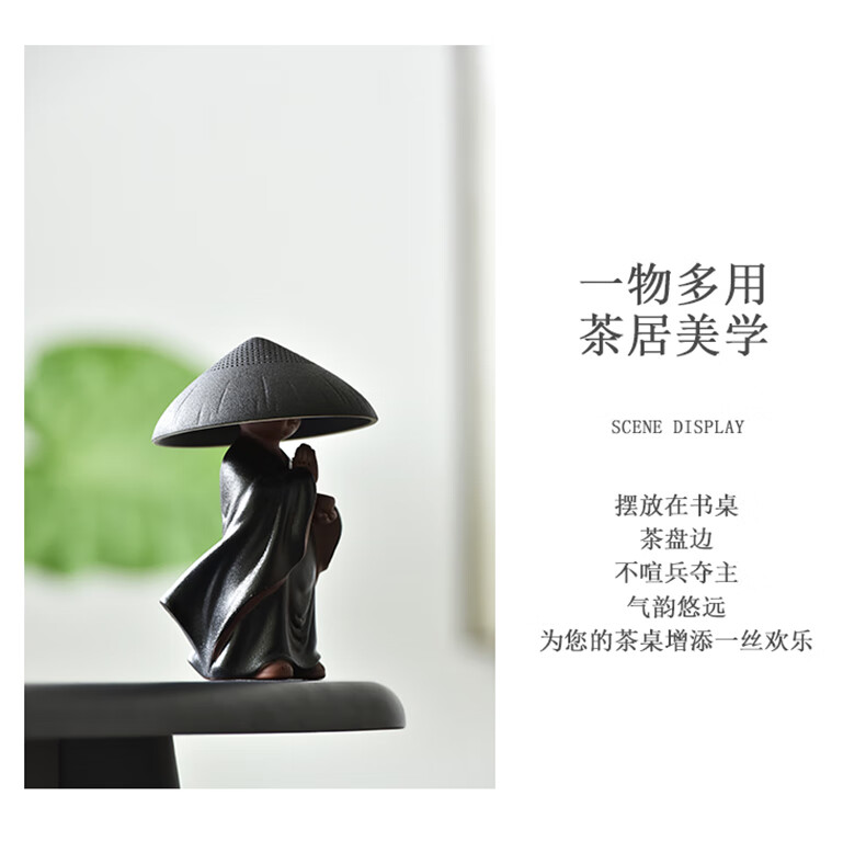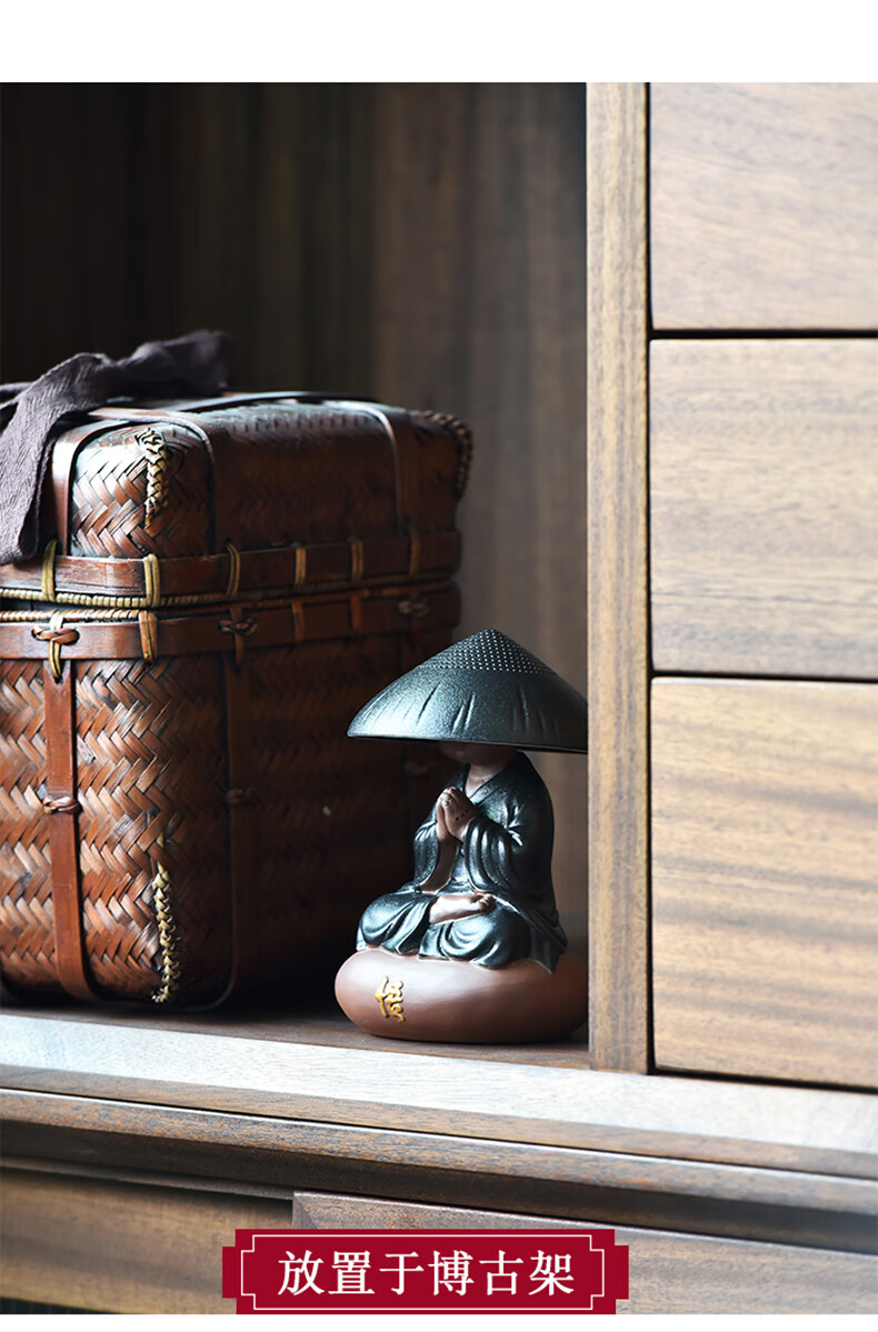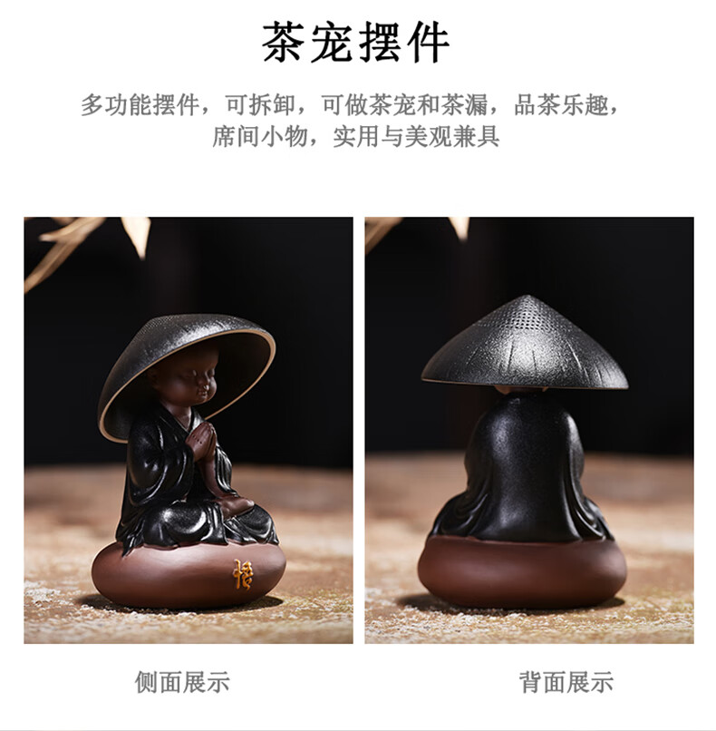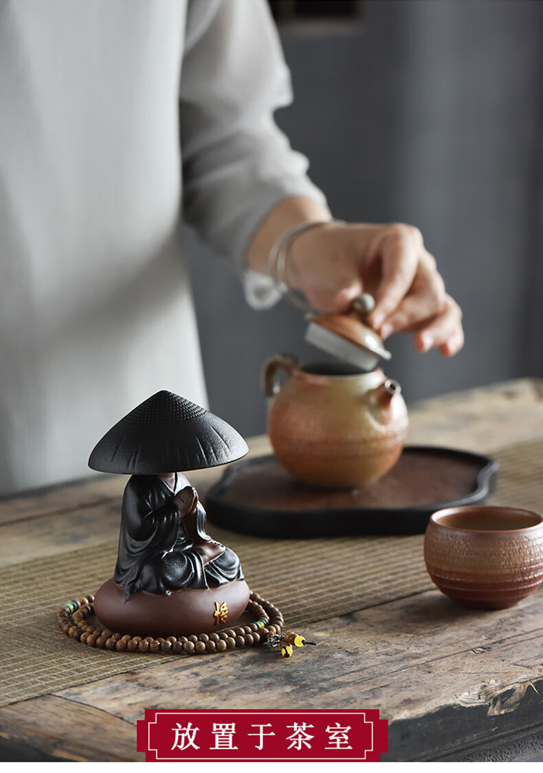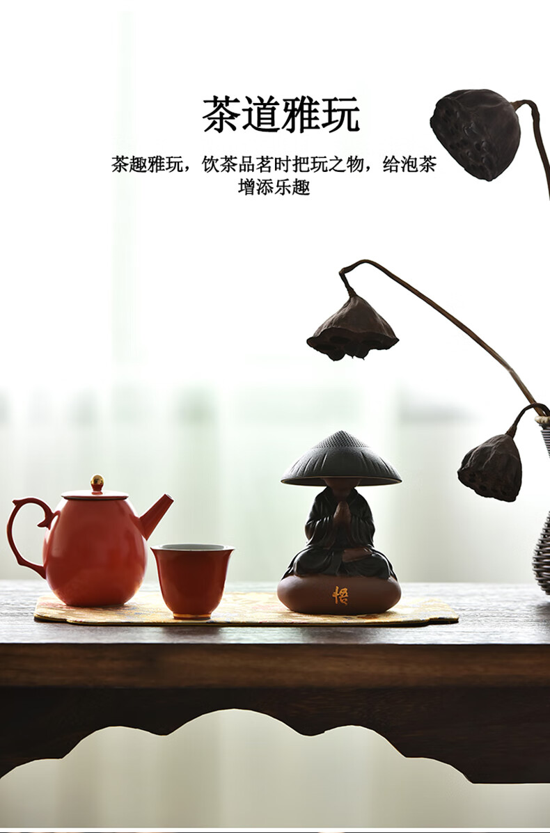 Chinese style little monk purple clay ornaments Zen living room office tea table desktop creative tea pet little novice decorations high-end enlightened little monk (sitting) + 1 string of Buddhist beads