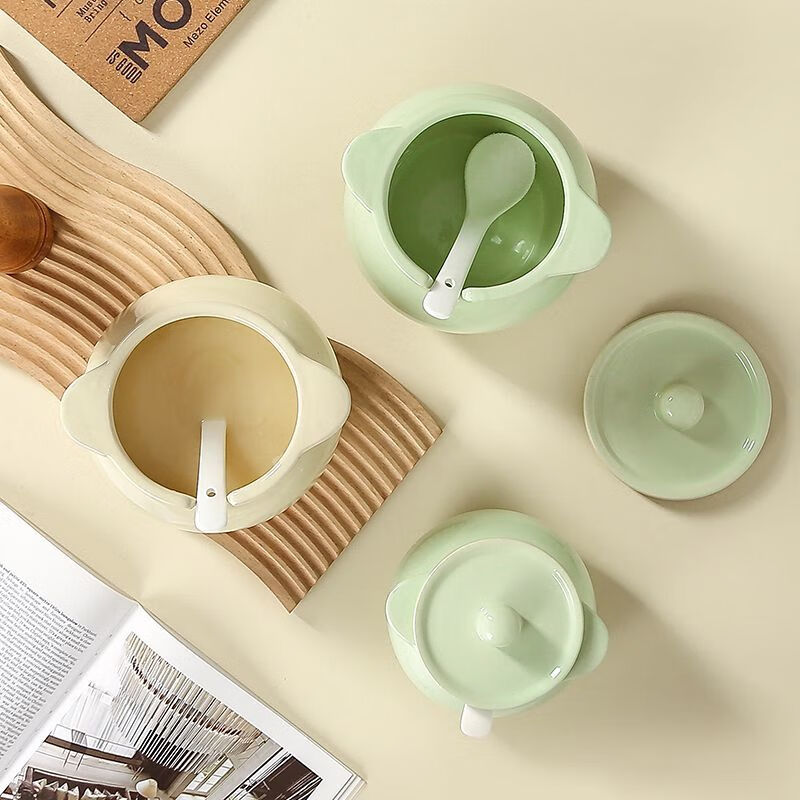 Chaosihui ceramic oil tank lard tank high temperature resistant double-eared oil storage tank with lid kitchen oil spicy extra large capacity extra thick custard 2500ml 1395 degrees high temperature firing without bursting quality