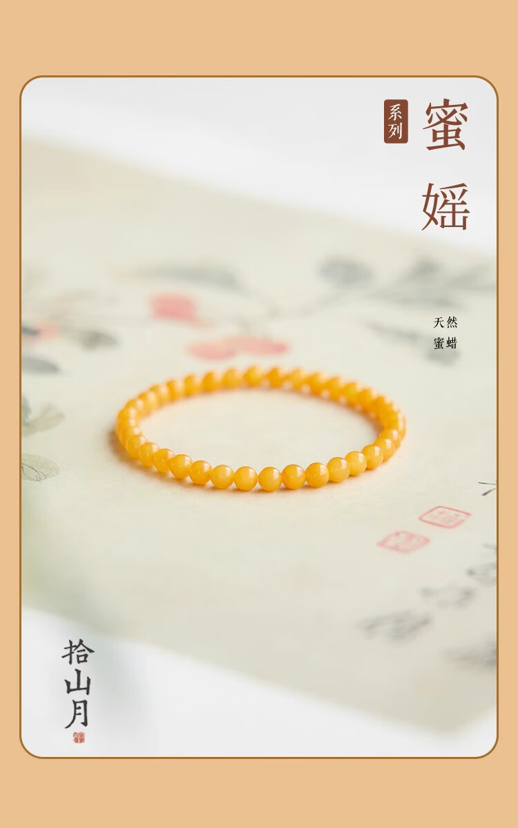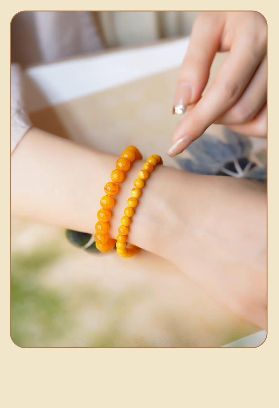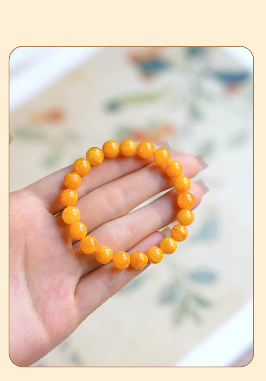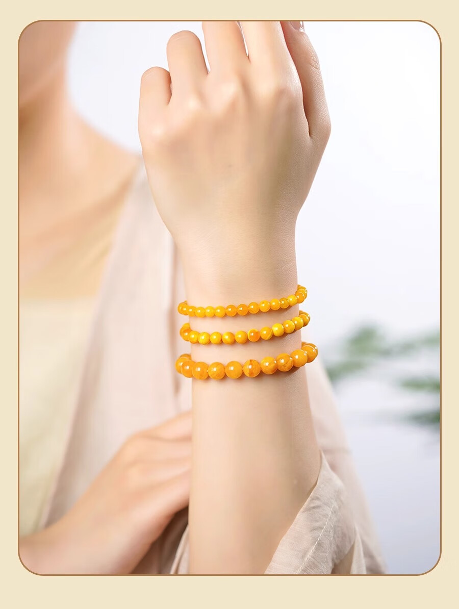 Natural beeswax bracelets, demon flower, chicken oil, yellow ore, soil replenishing plate, Chinese style high-end gift for mothers, authentic bracelets for men and women, 6mm natural chicken oil yellow, beeswax bracelets, 14-15cm hand circumference