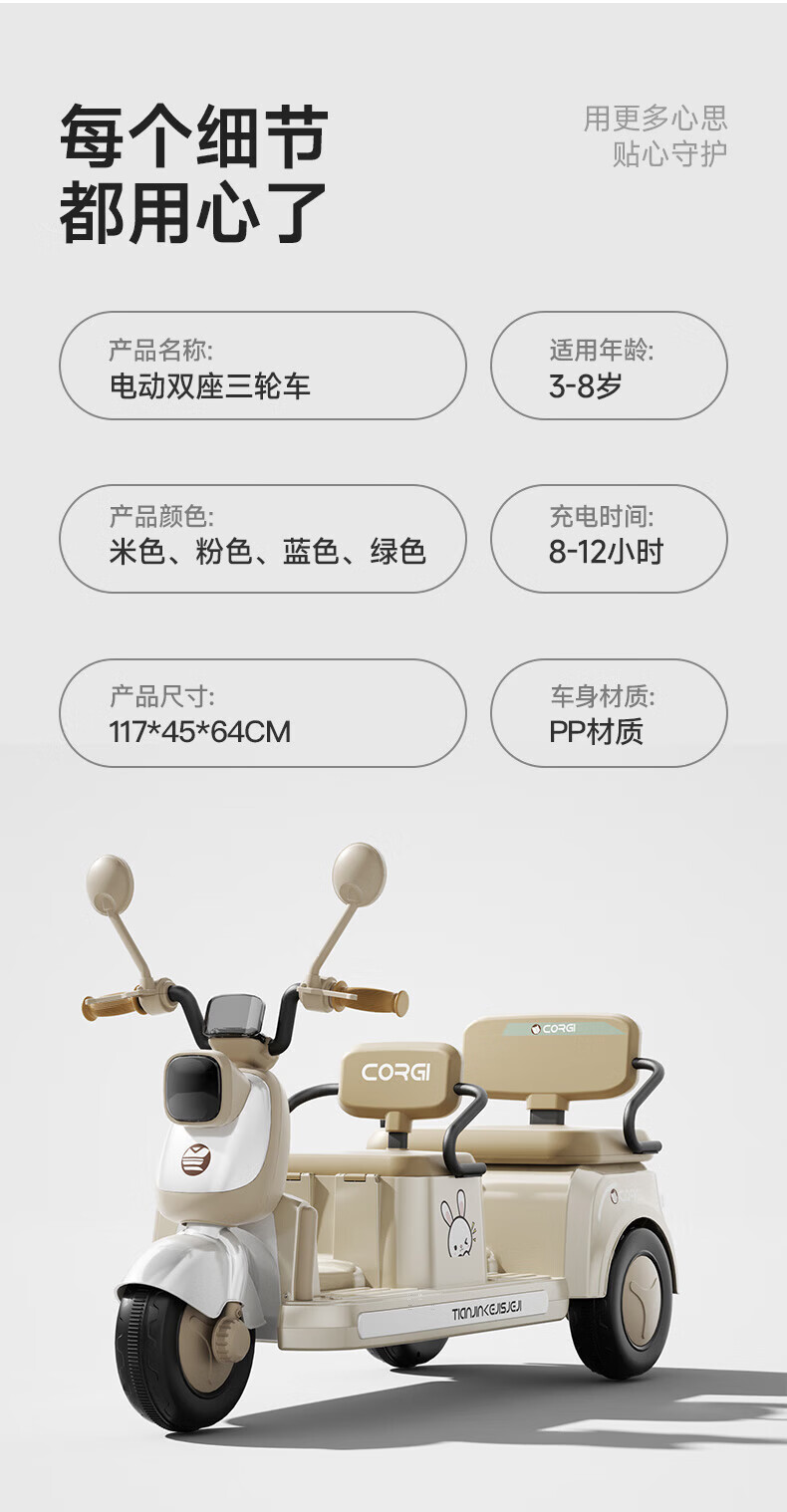 Aobele children's electric car motorcycle 1-3-6 years old baby tricycle children's toy car can sit on a person remote control battery car coffee remote control dual drive + 12V4A + early education music 1-7 years old birthday Children's Day gift