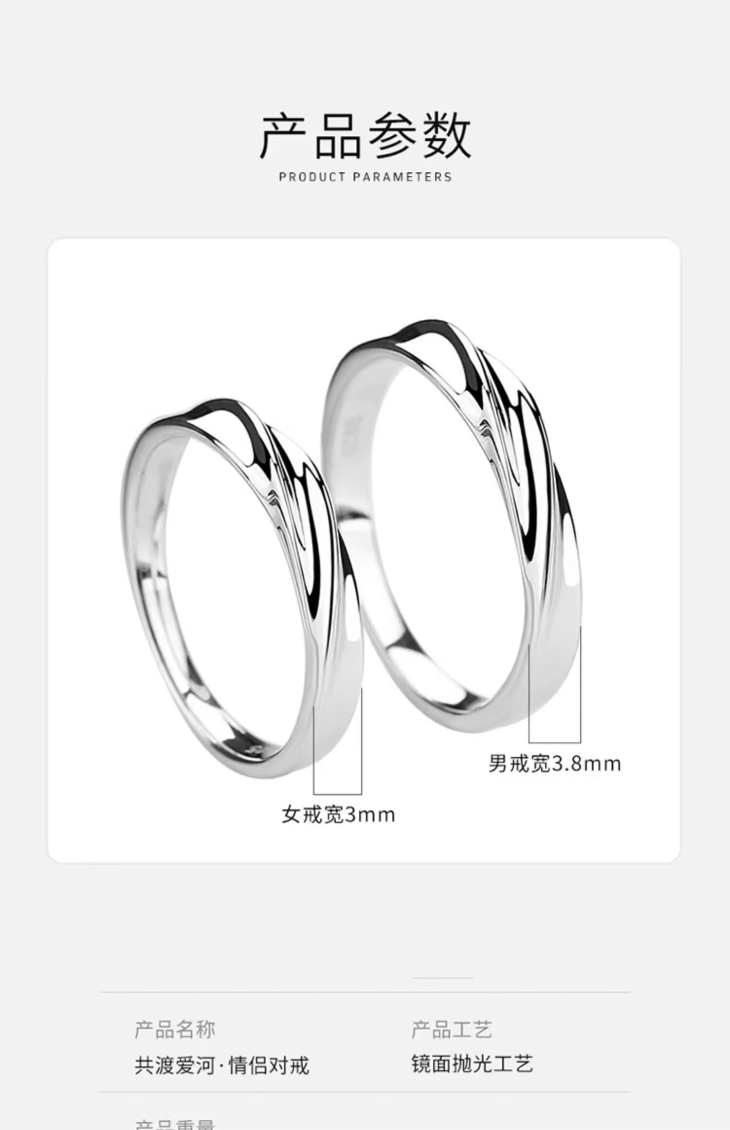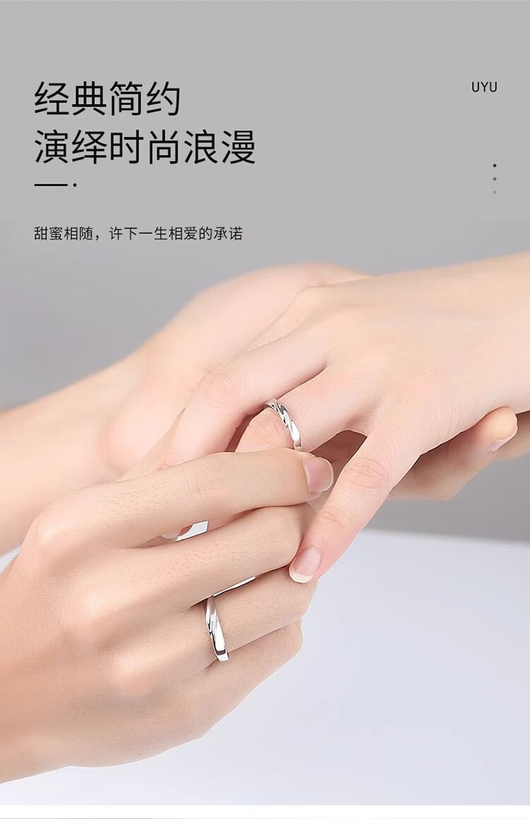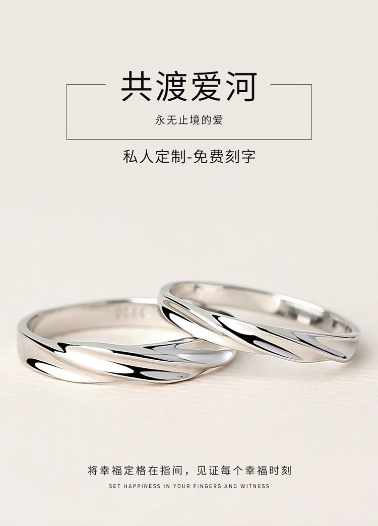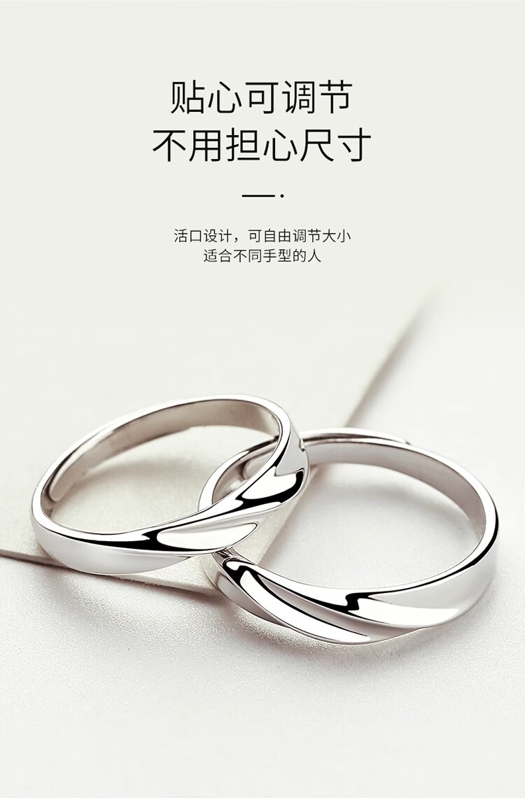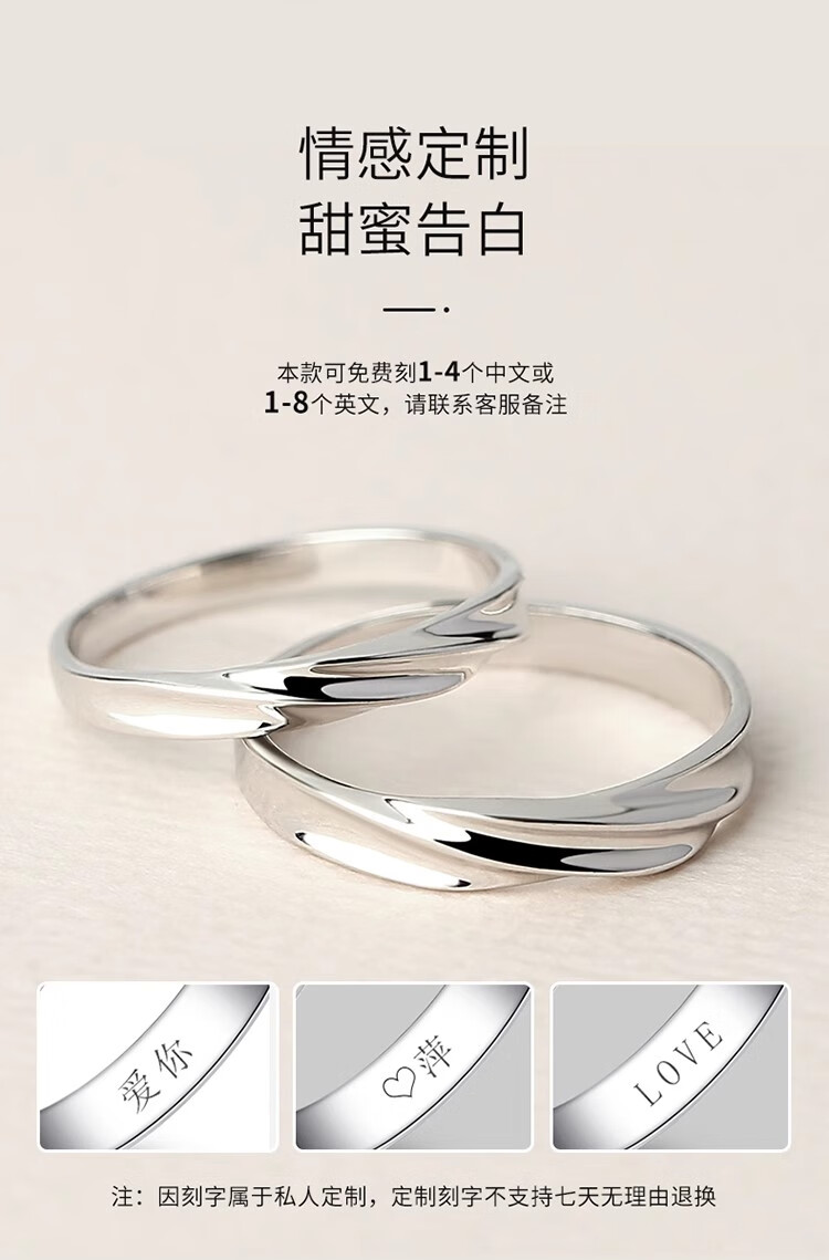 Couple's sterling silver ring, a pair of platinum pt950 plain rings, proposal for men and women, custom-engraved Valentine's Day gift, light luxury style - women's style to share love - rose gift box