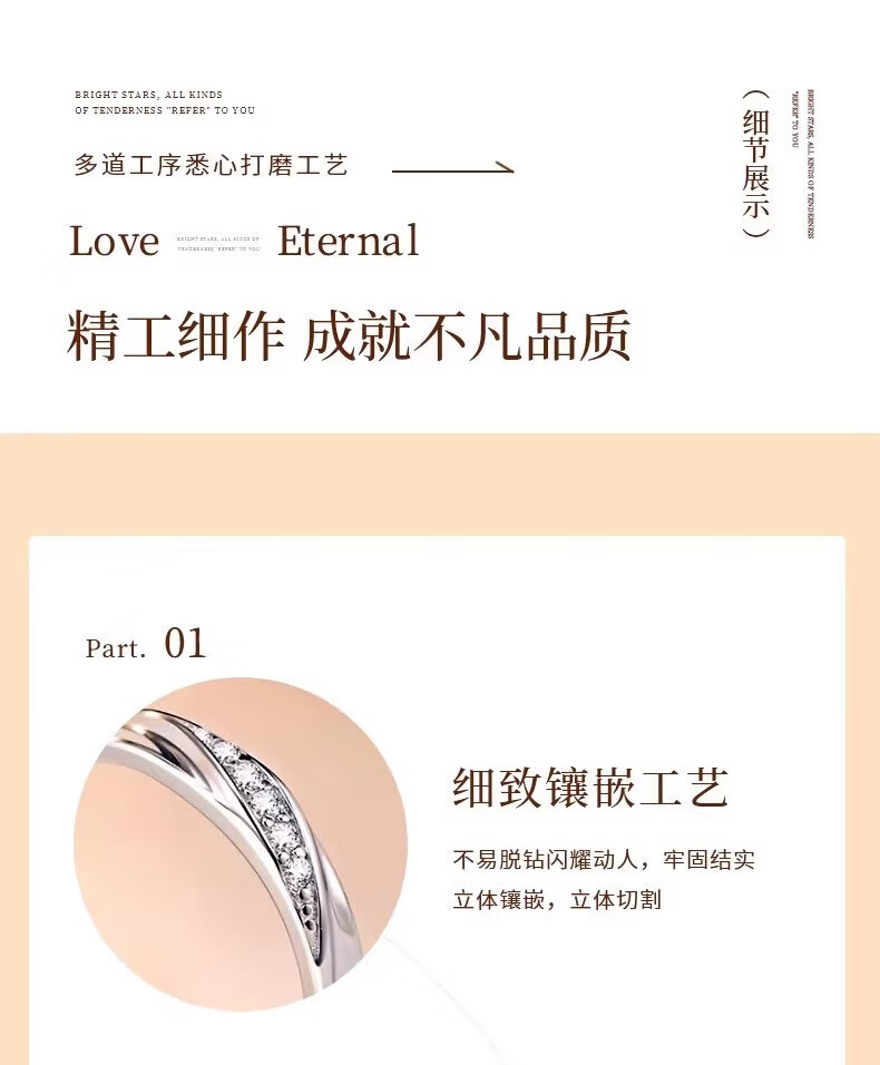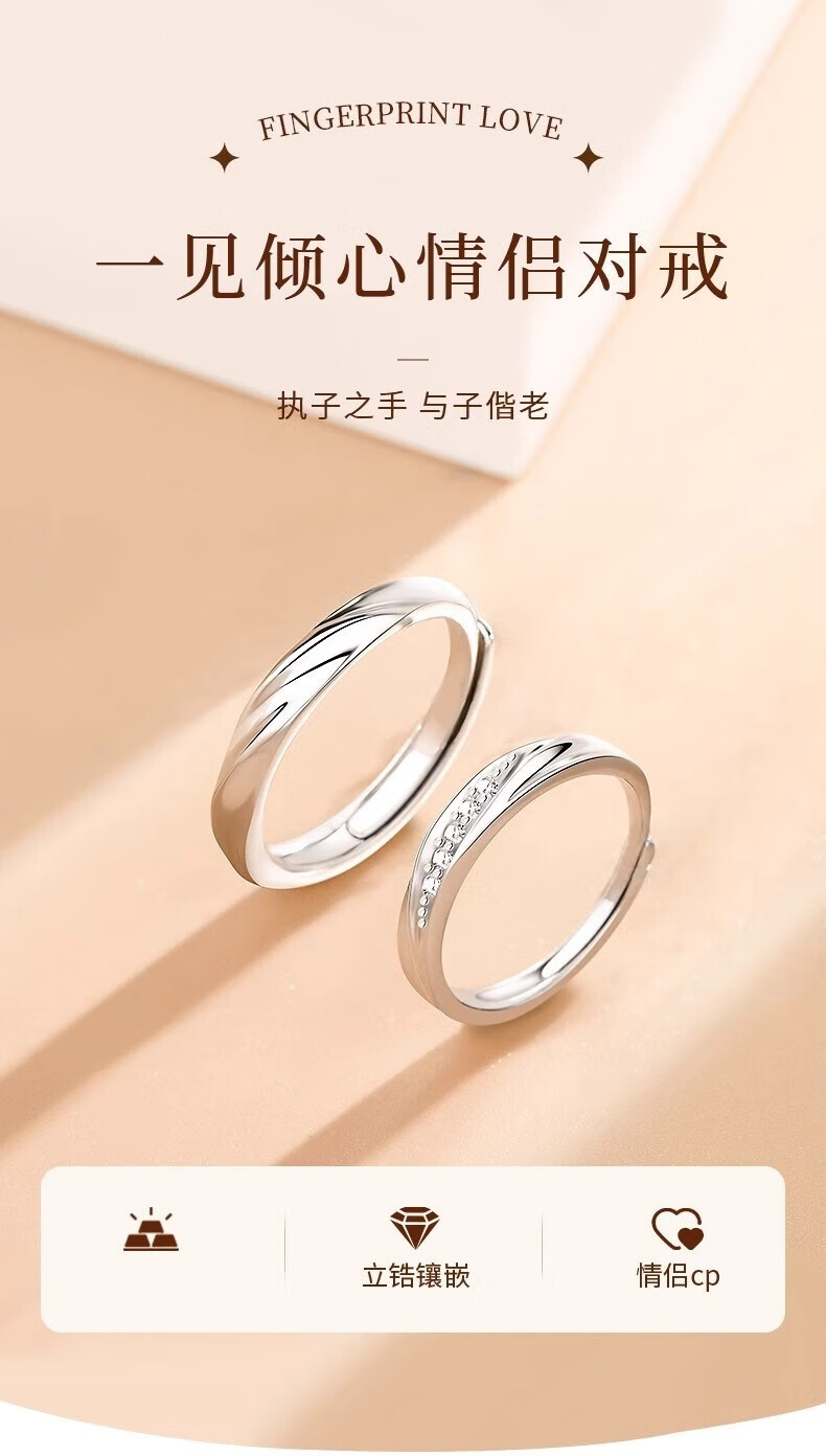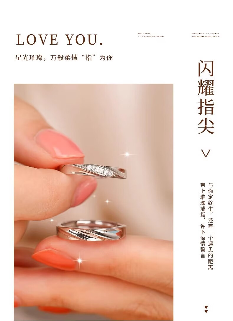 Pt950 platinum ring for lovers to fall in love together, a pair of fashionable and personalized rings for men and women 520 Valentine's Day gift for girlfriend, light luxury model - women's ring to fall in love together - rose box