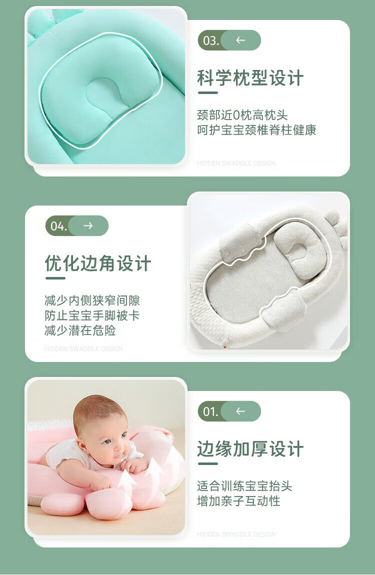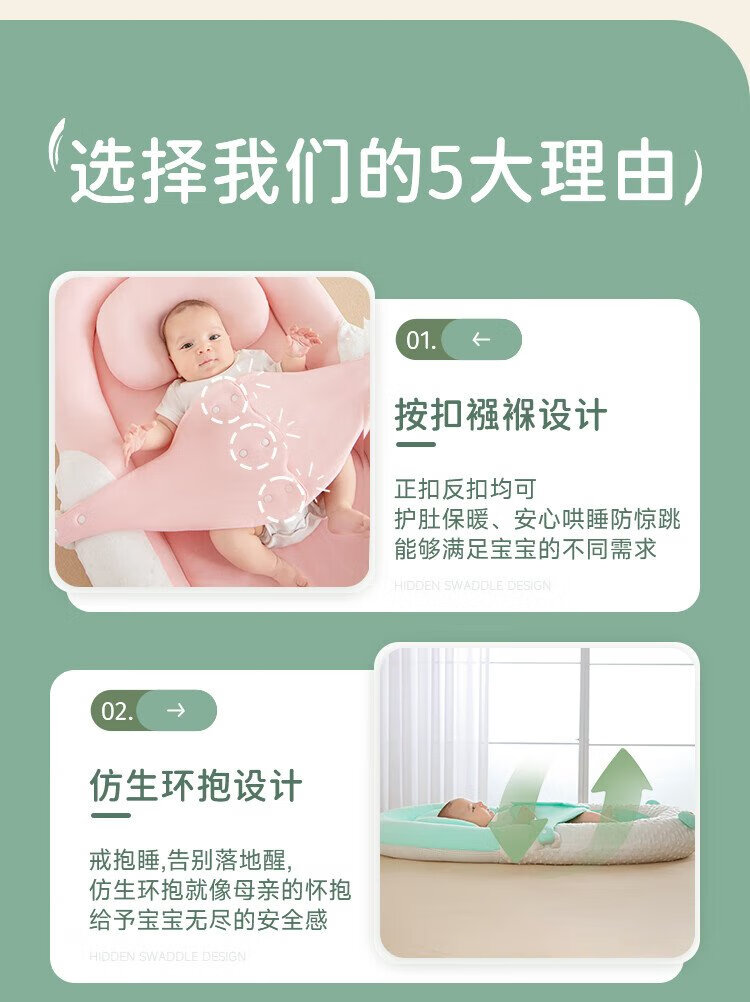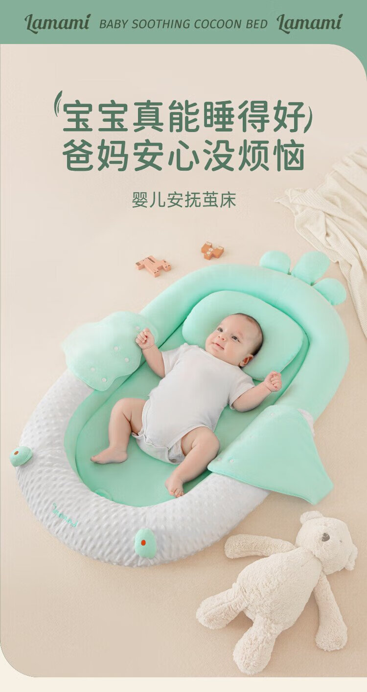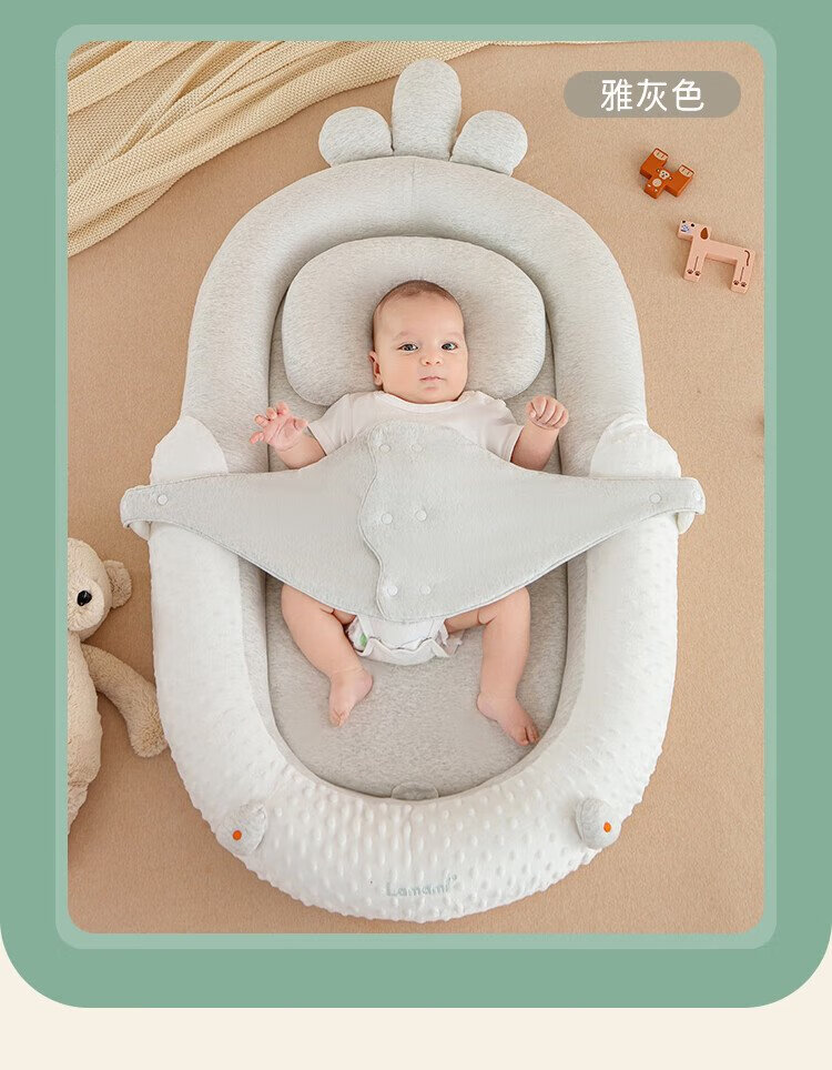 Lamami Bed-in-Bed Baby Newborn Sleeping Anti-Jump Uterine Bionic Bed Baby Styling Sleep Soothing Cocoon Bed Elegant Gray Comes with a saliva pocket upon ordering