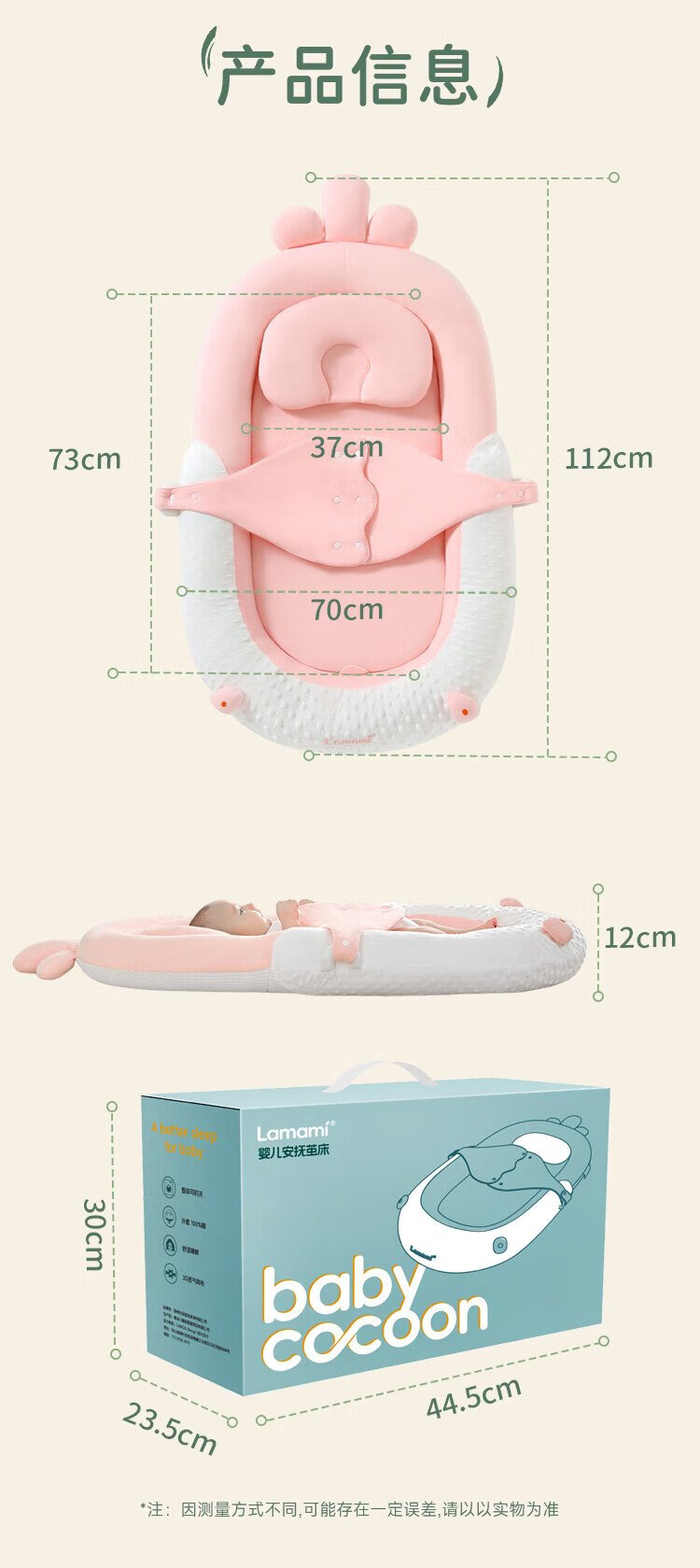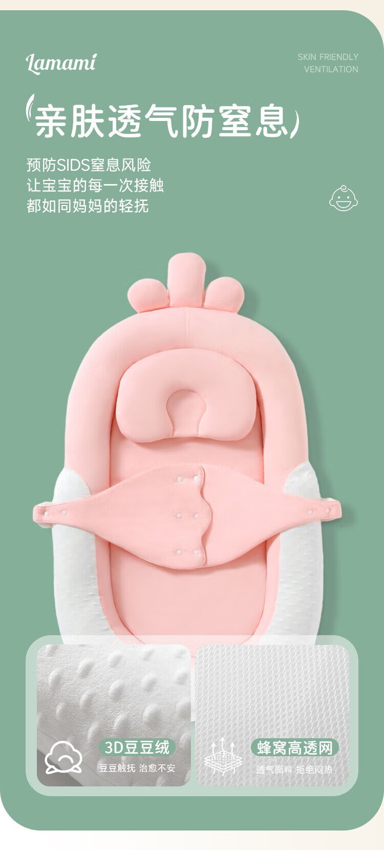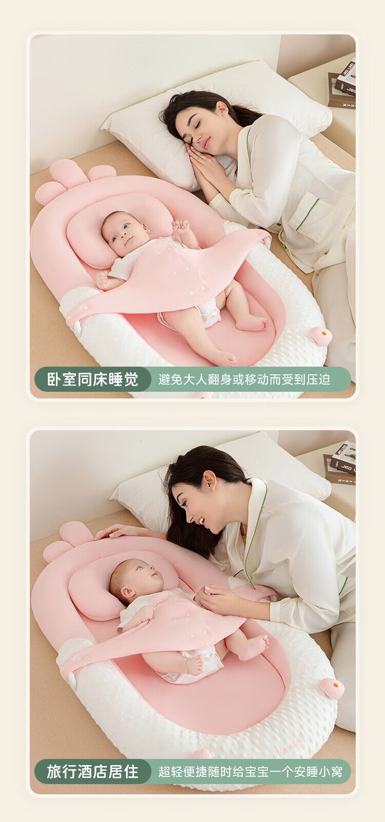 Lamami Bed-in-Bed Baby Newborn Sleeping Anti-Jump Uterine Bionic Bed Baby Styling Sleep Soothing Cocoon Bed Elegant Gray Comes with a saliva pocket upon ordering