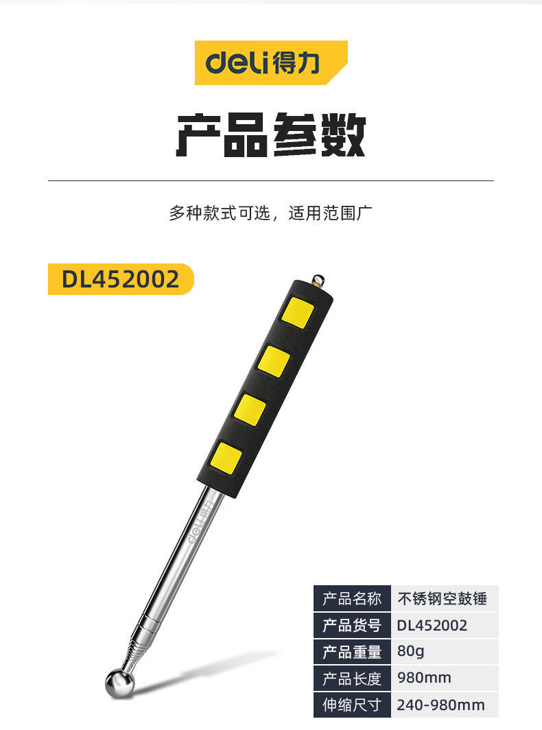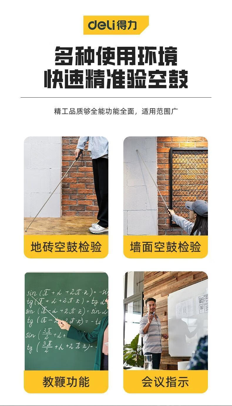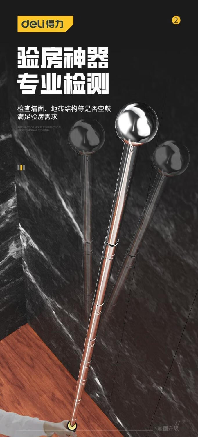 Deli empty drum hammer home inspection tool set home inspection stick ring drum hammer home inspection hammer knocking tiles special drum hammer extension 115cm medium style