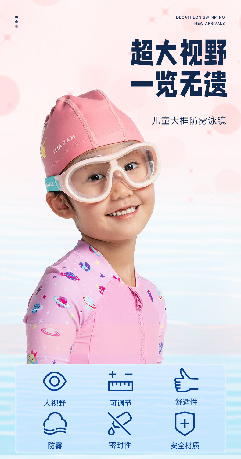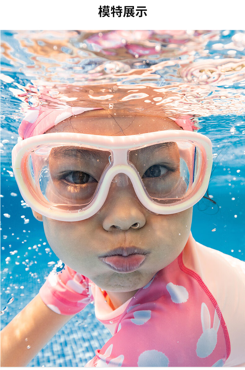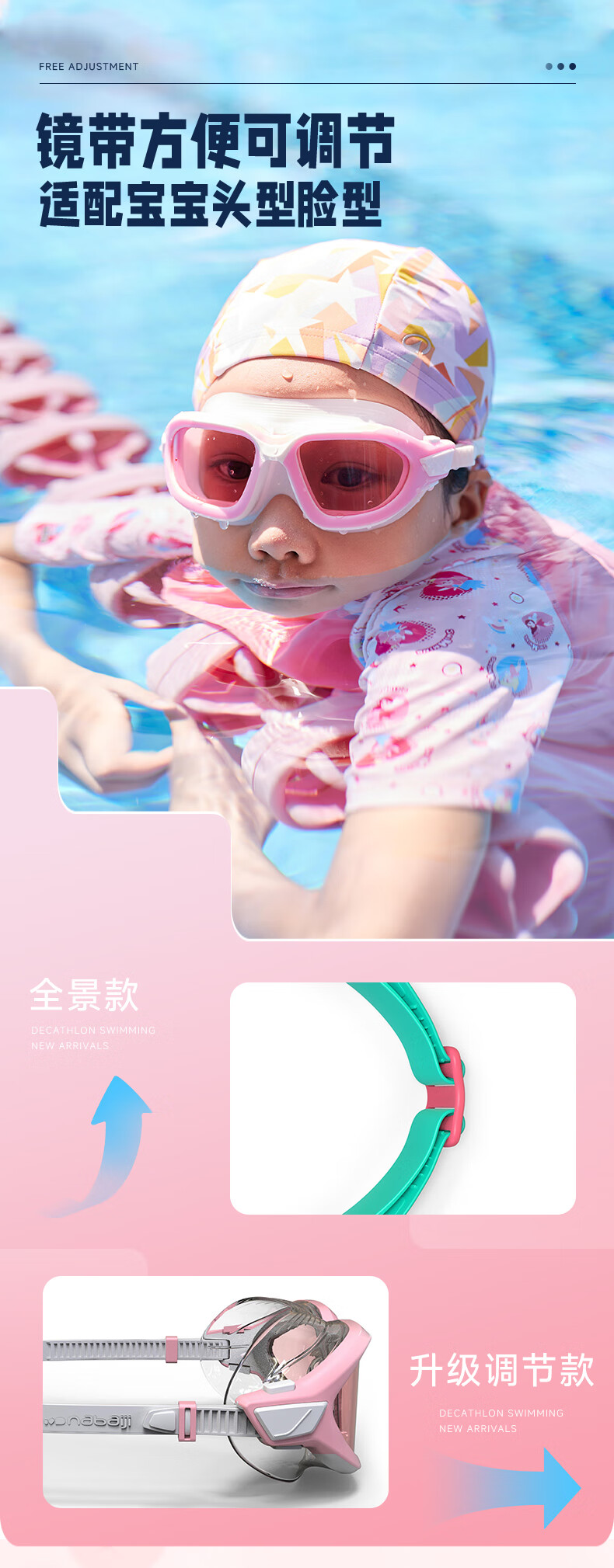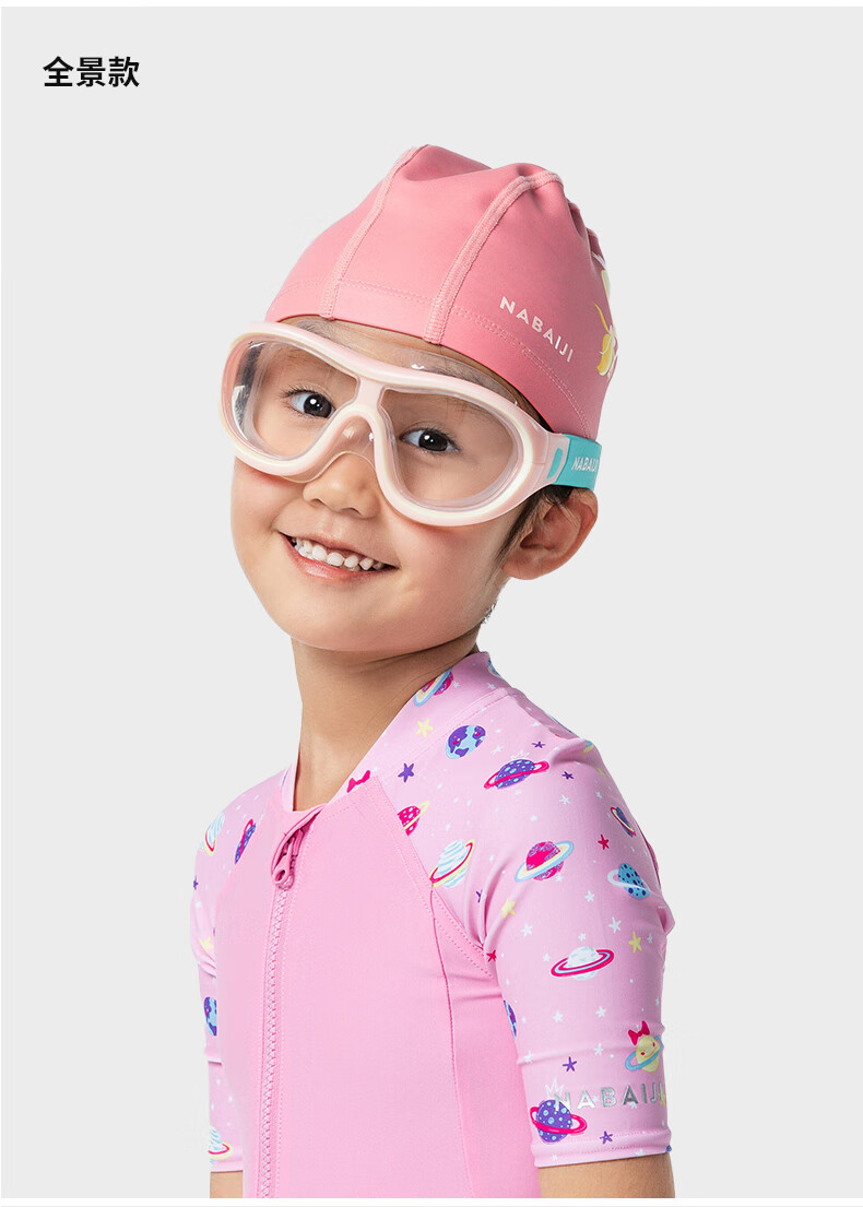 Decathlon (DECATHLON) children's swimming goggles girls waterproof anti-fog high-definition swimming goggles diving goggles swimming cap set IVA5 panoramic style - lively pink and green (rear adjustment of the headband) flat light