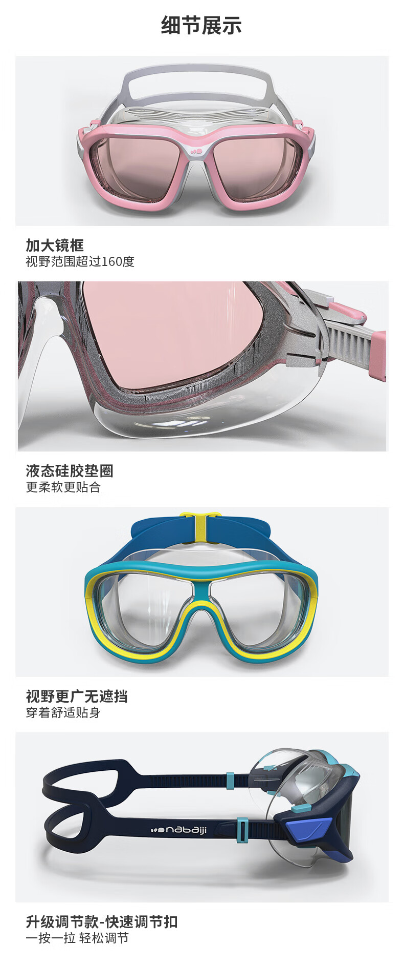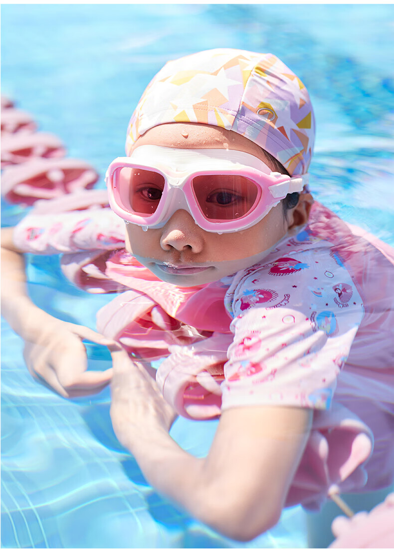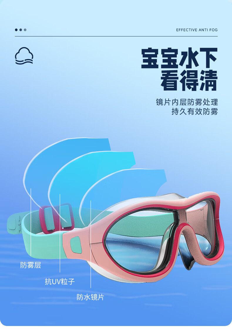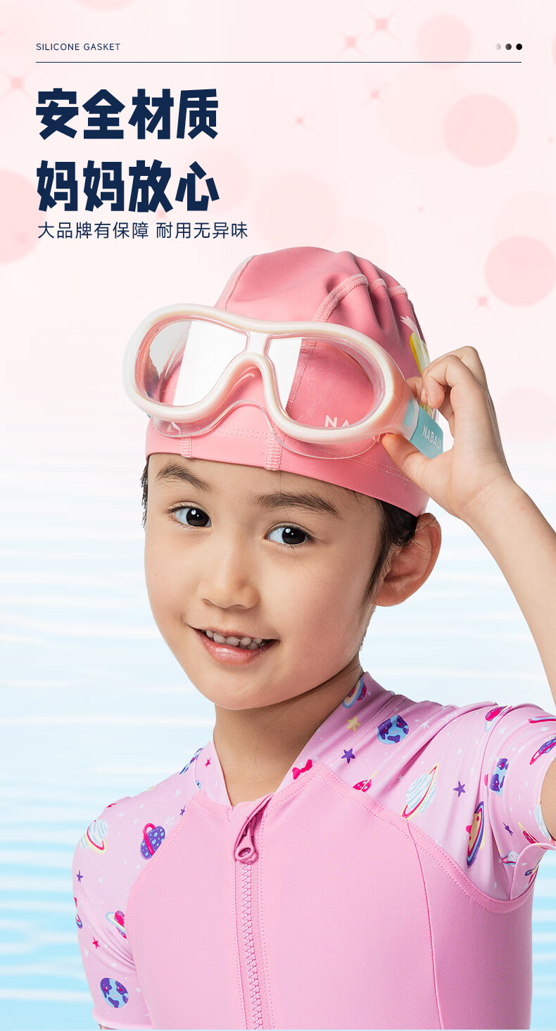 Decathlon (DECATHLON) children's swimming goggles girls waterproof anti-fog high-definition swimming goggles diving goggles swimming cap set IVA5 panoramic style - lively pink and green (rear adjustment of the headband) flat light