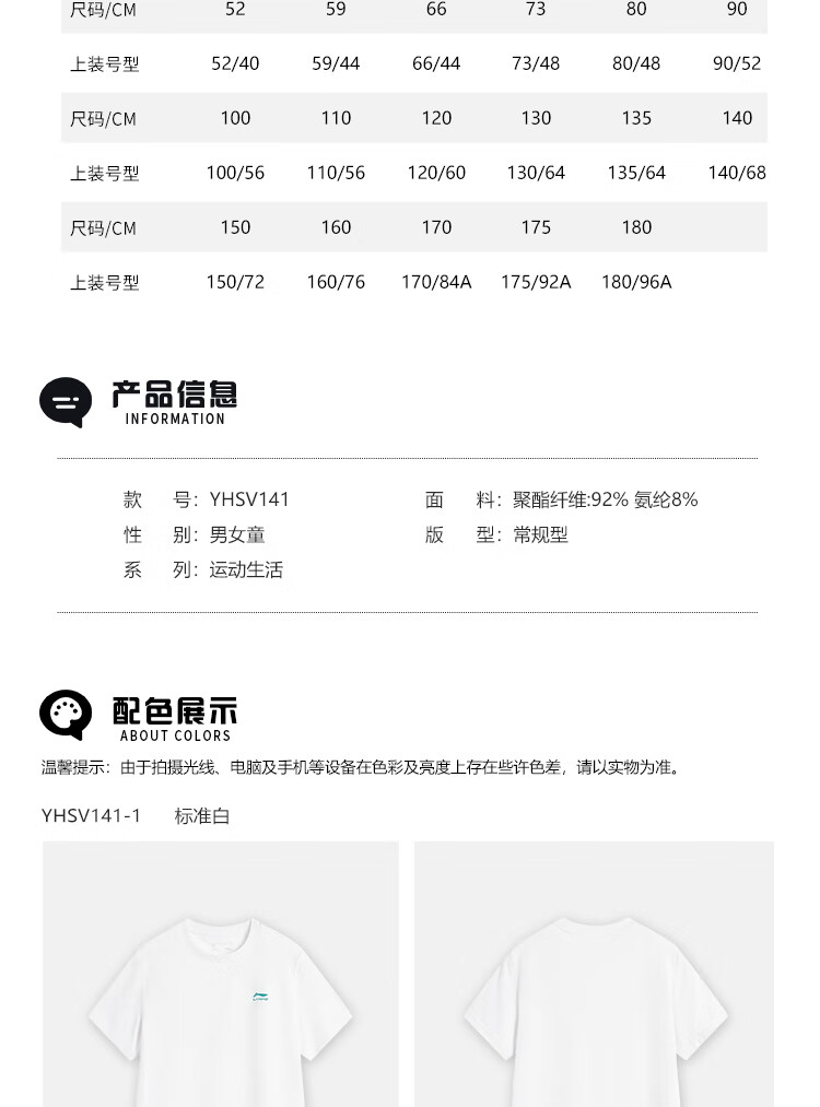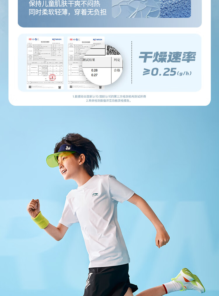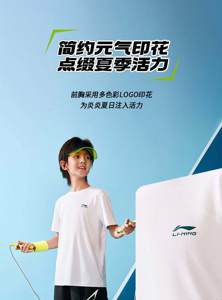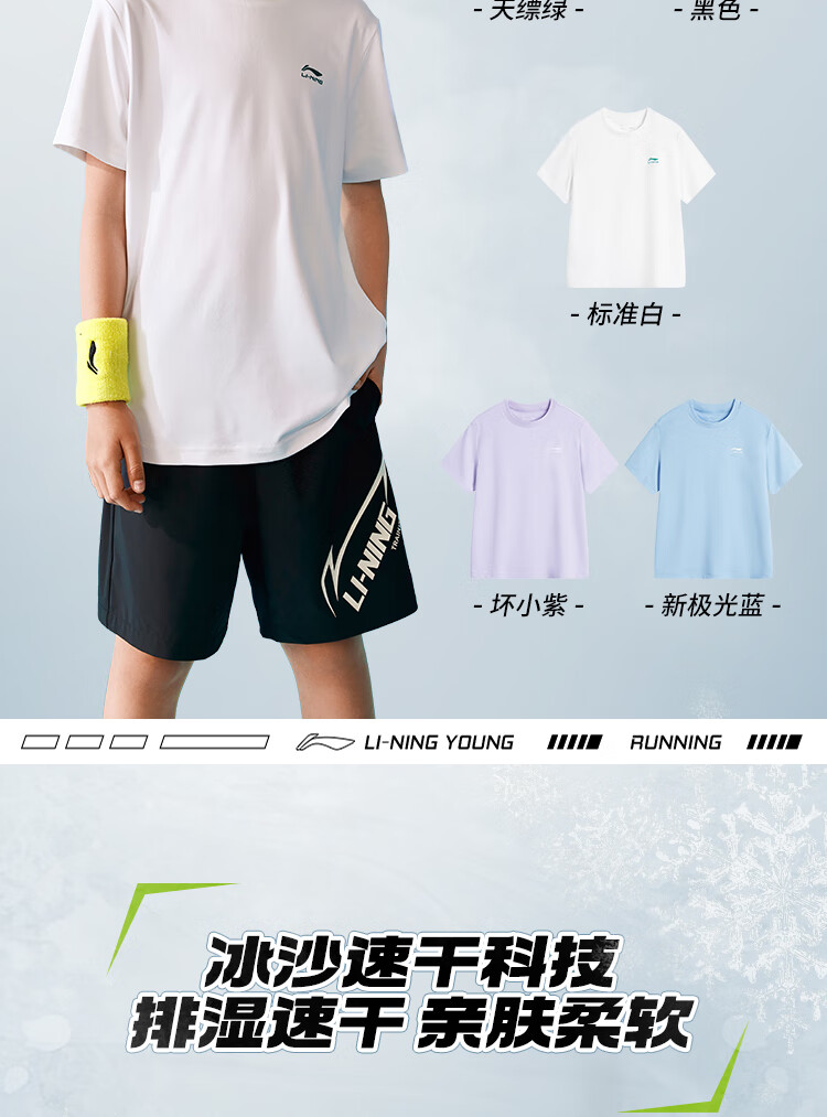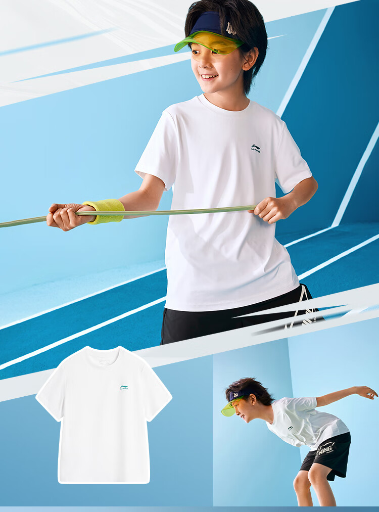 Li Ning children's quick-drying T-shirt 2025 summer style boys' cool and cool technology thin short-sleeved men's and women's half-sleeves standard white (cooling technology-quick drying) 170