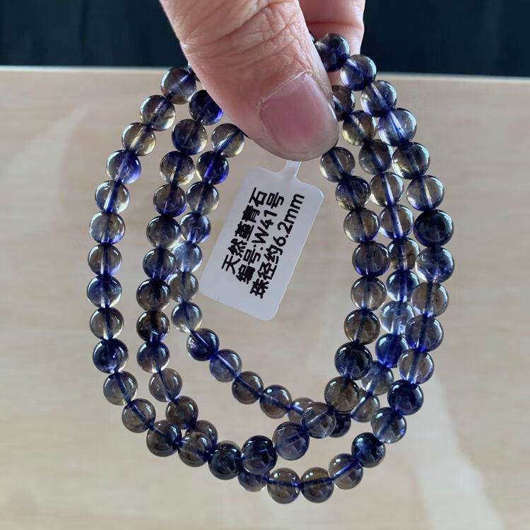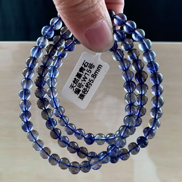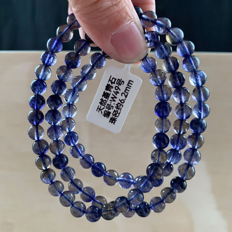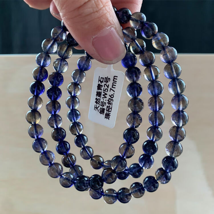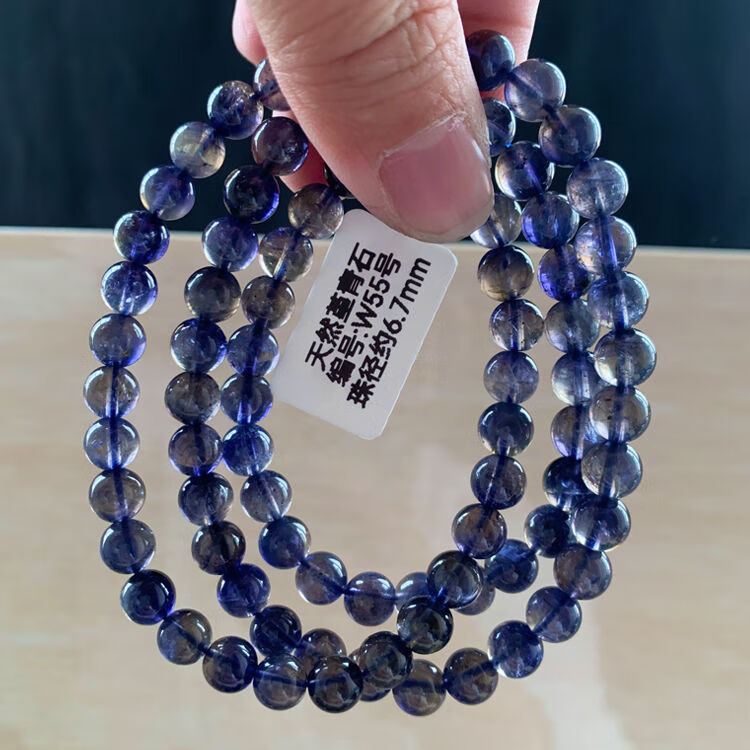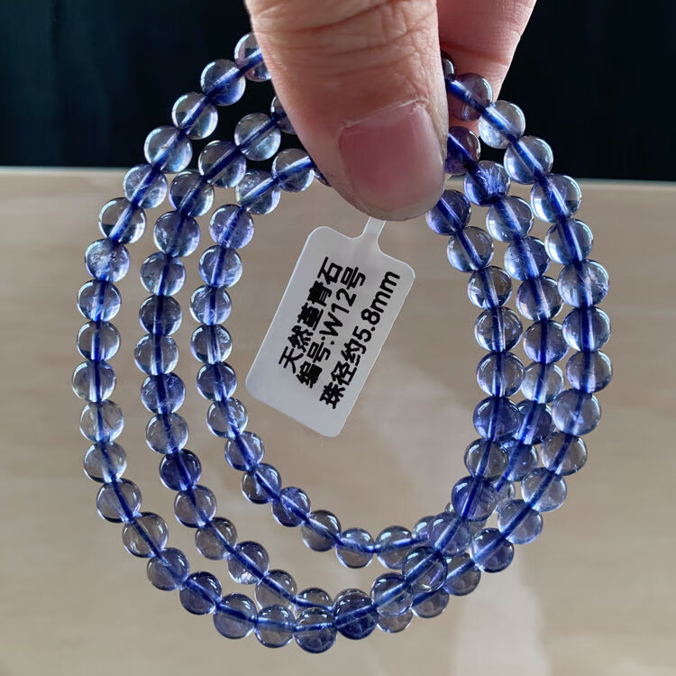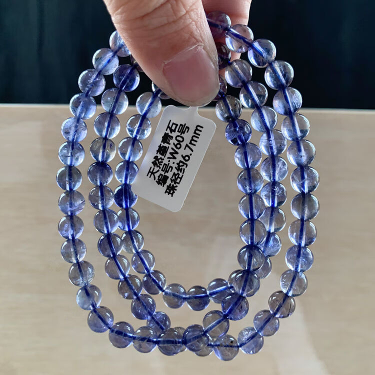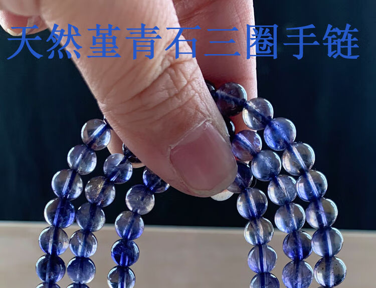 Ally natural ice-transparent cordierite three-circle Buddha beads bracelet blue crystal tanzanite lapis lazuli blue crystal bracelet as a gift (W39) about 6.2mm