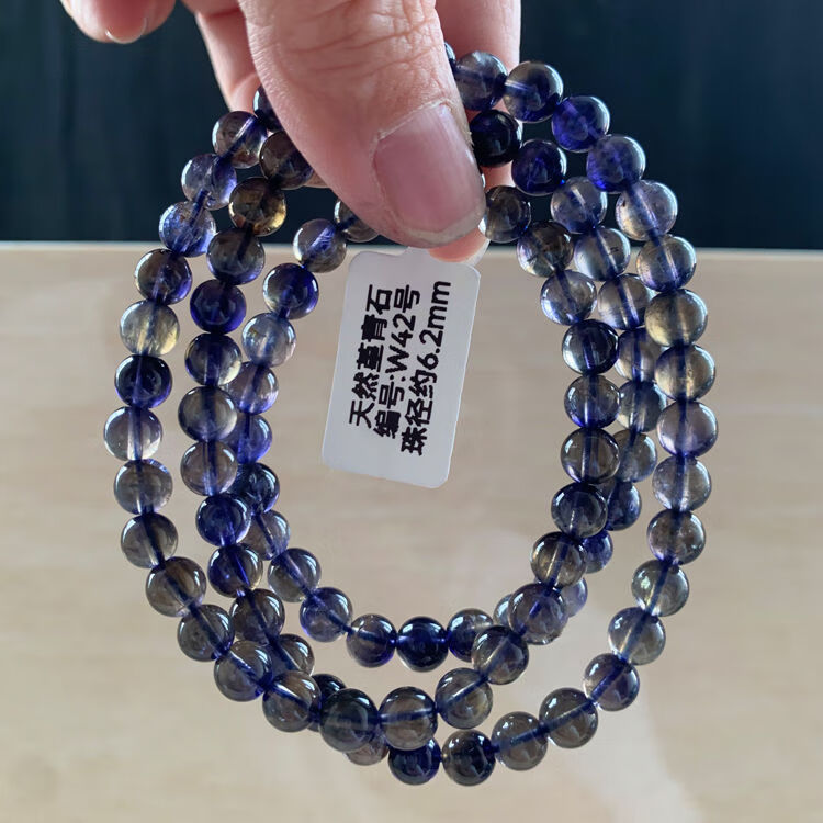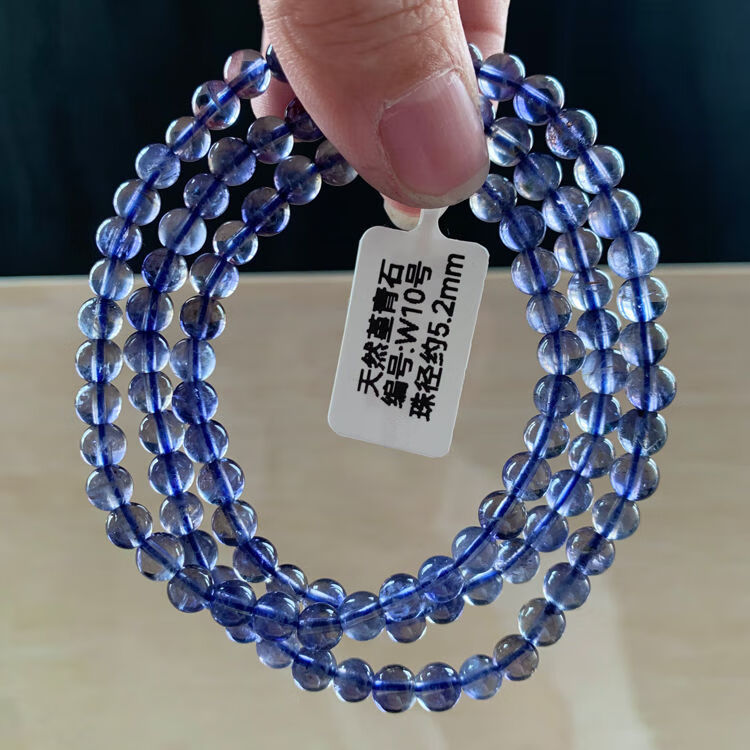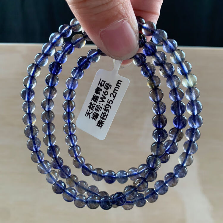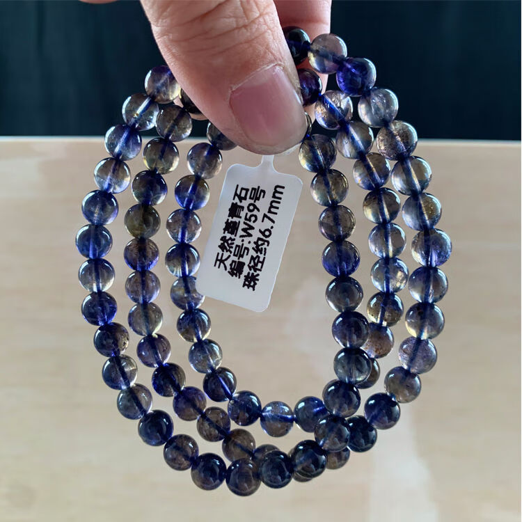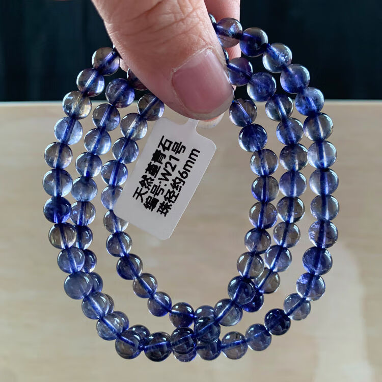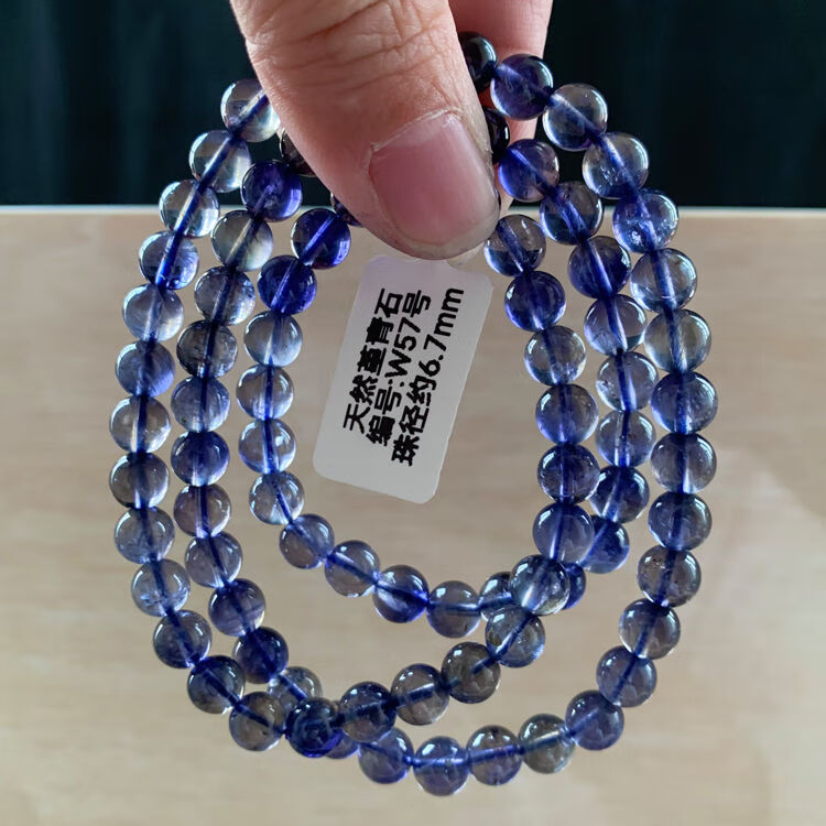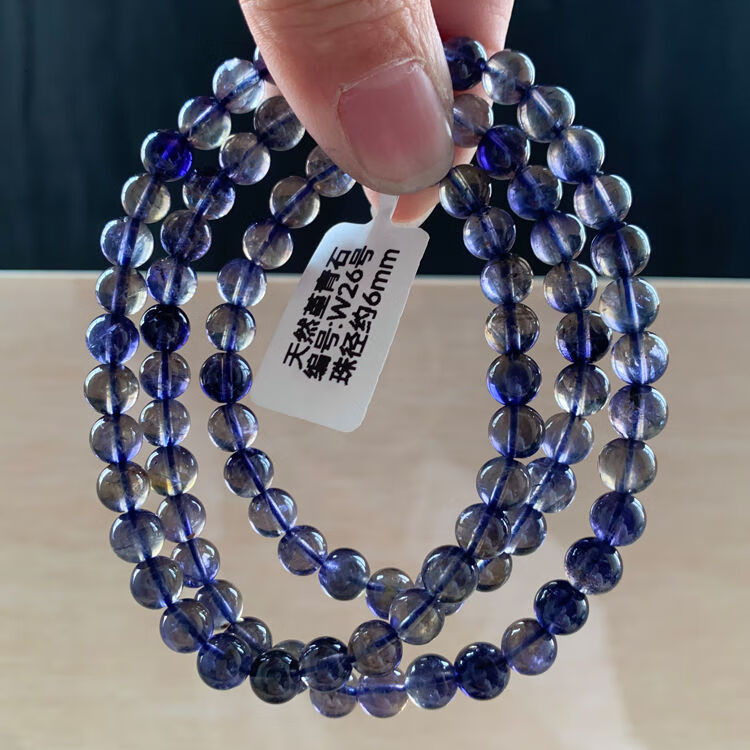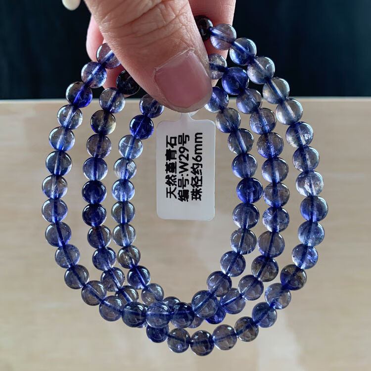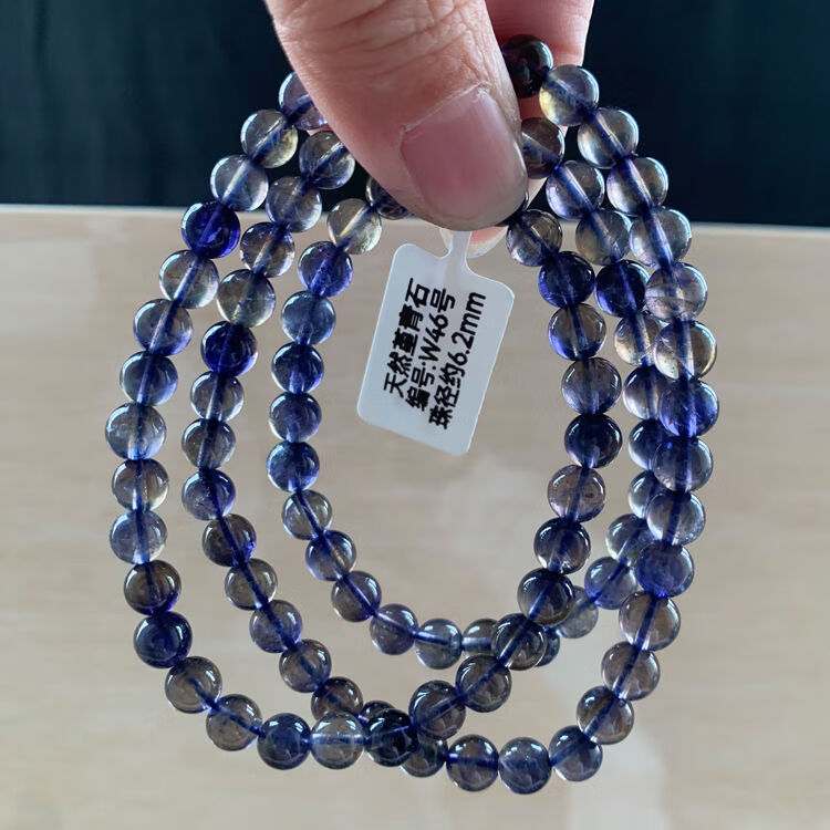 Ally natural ice-transparent cordierite three-circle Buddha beads bracelet blue crystal tanzanite lapis lazuli blue crystal bracelet as a gift (W39) about 6.2mm