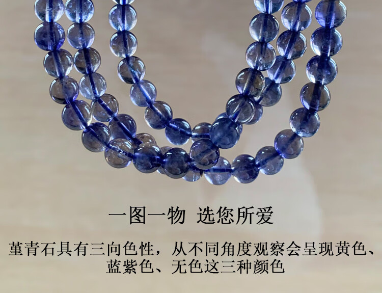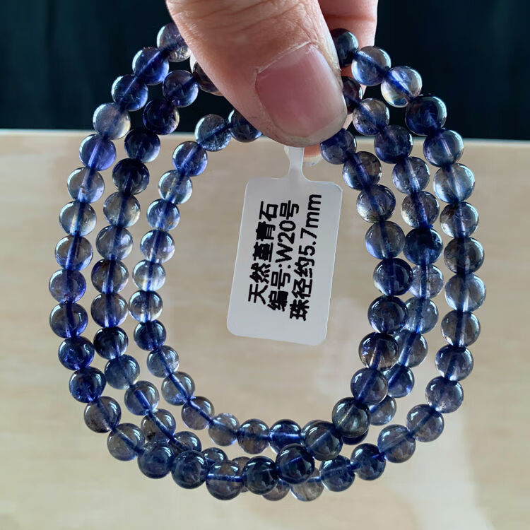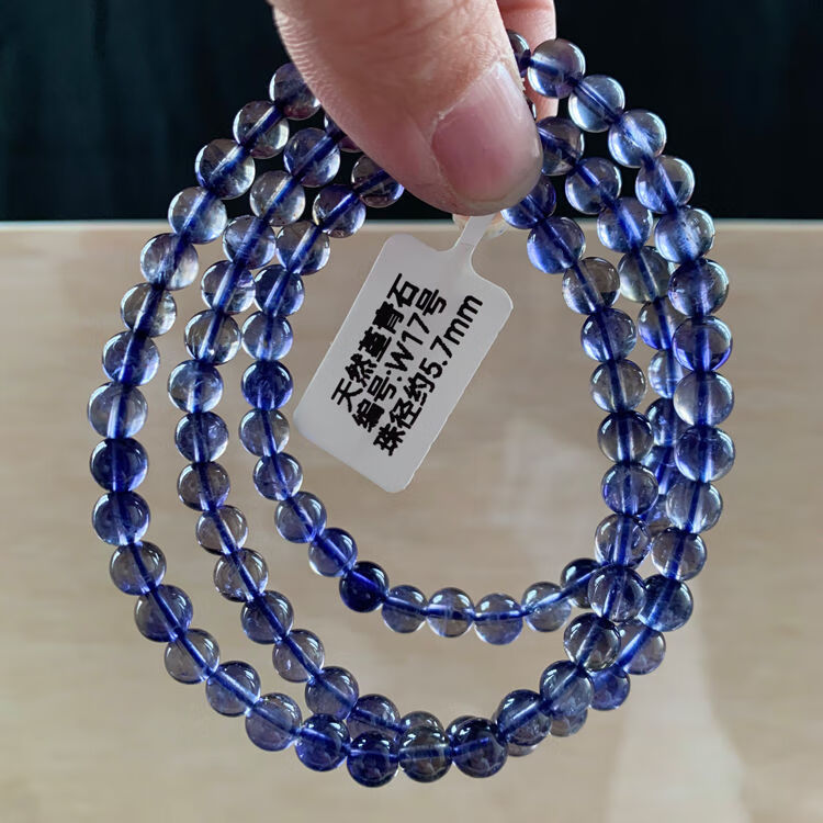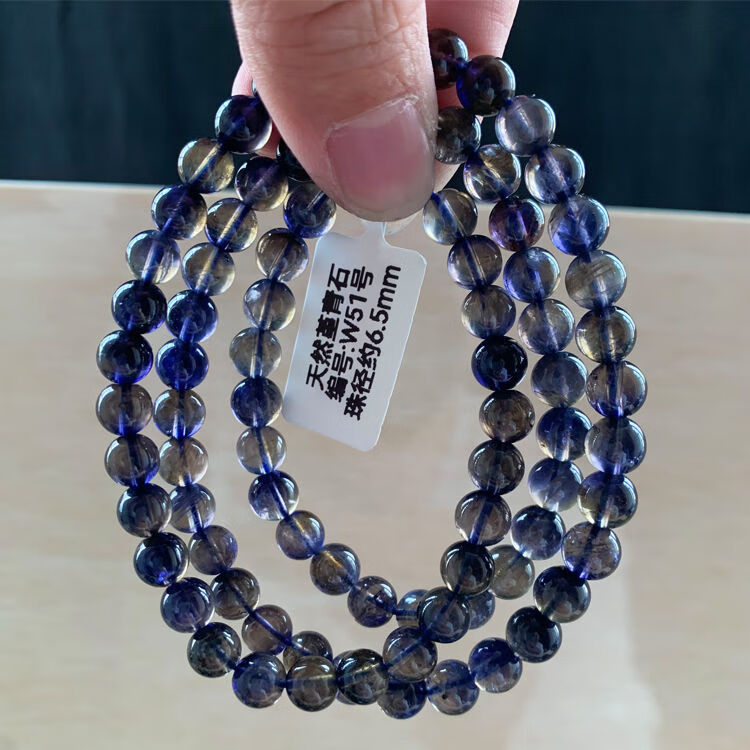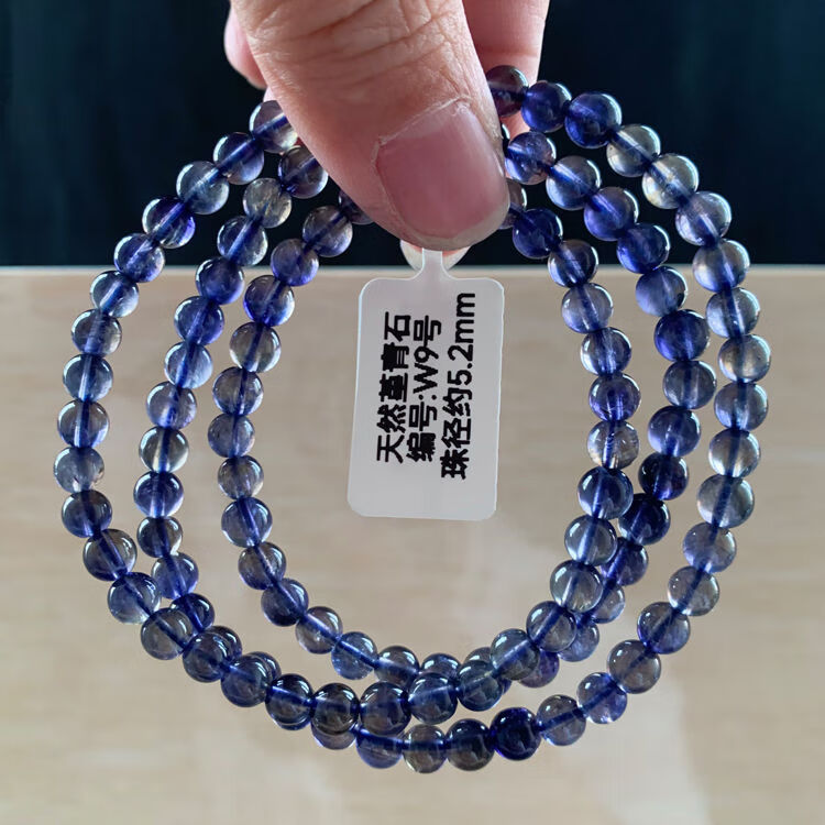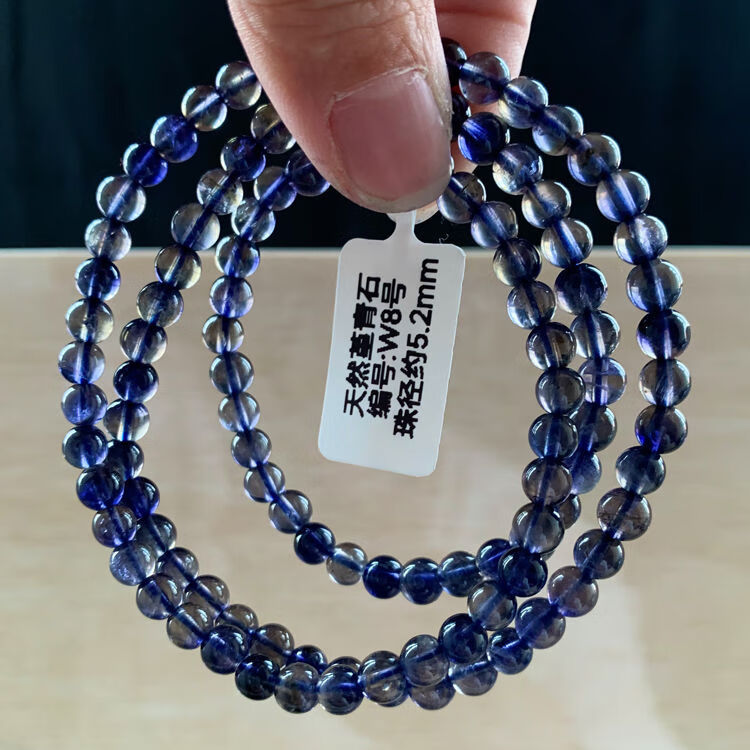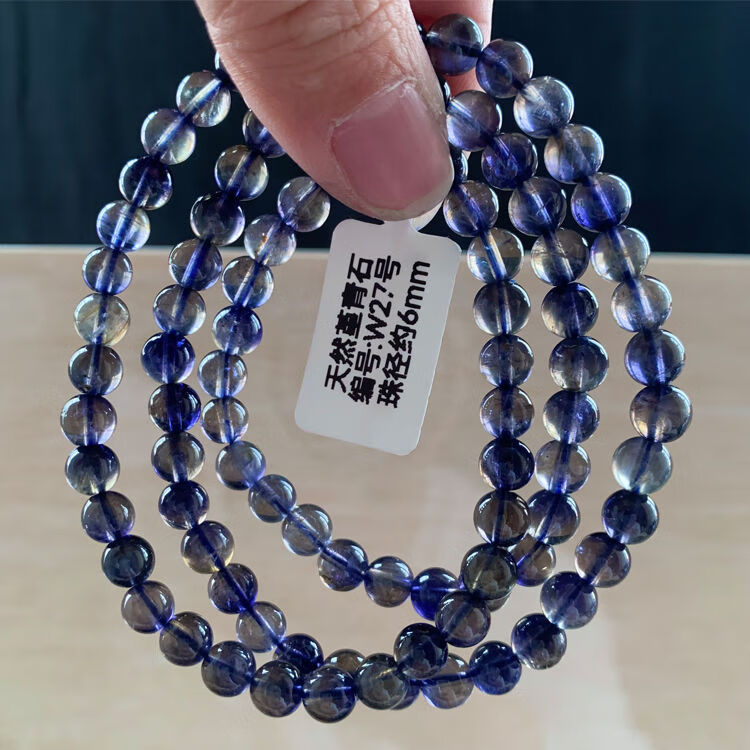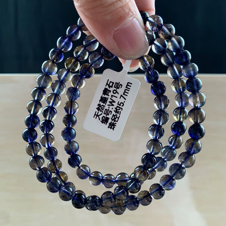 Ally natural ice-transparent cordierite three-circle Buddha beads bracelet blue crystal tanzanite lapis lazuli blue crystal bracelet as a gift (W39) about 6.2mm