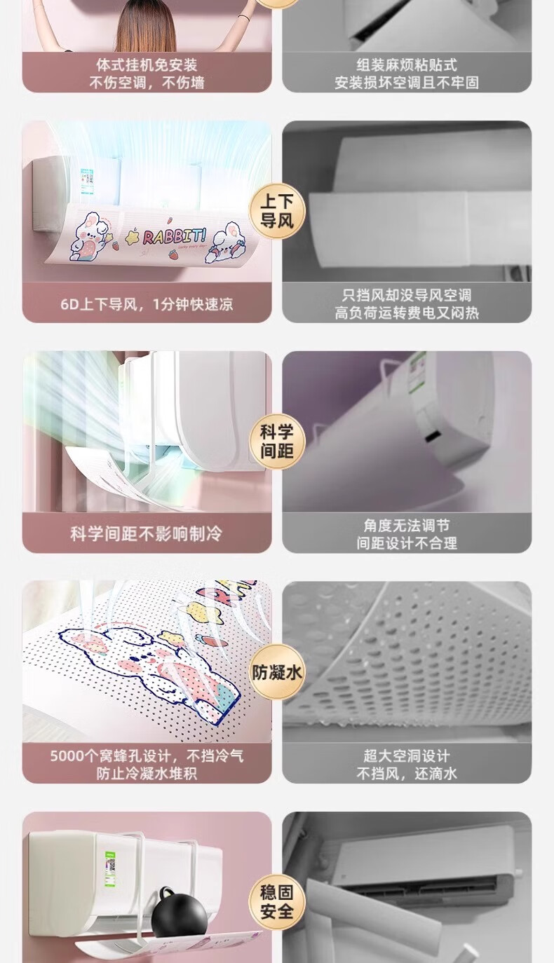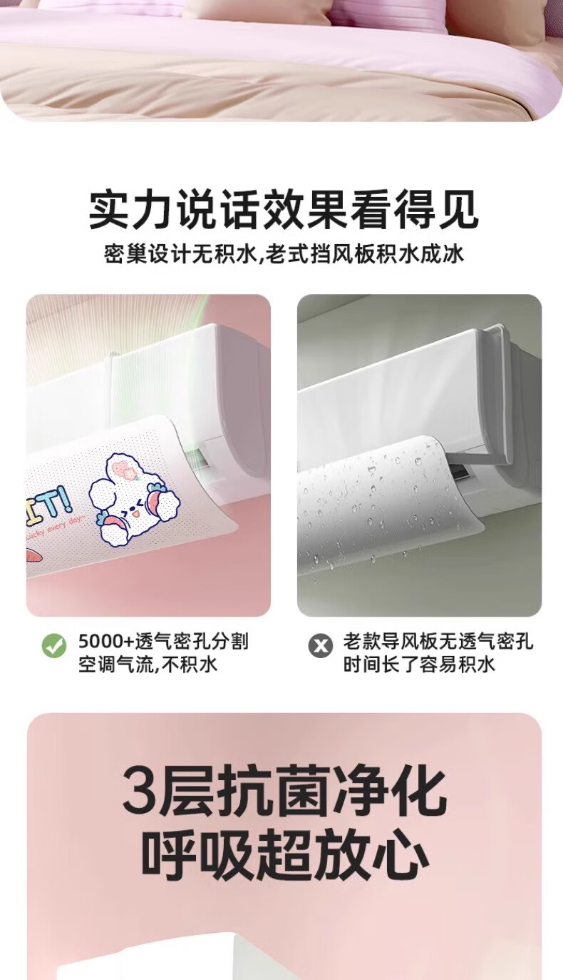 Air conditioner windshield anti-direct blowing wind guide artifact Gree Midea Haier universal partition air-conditioning confinement curtain for wall-mounted machines 1 pack universal wall-mounted machine random pattern