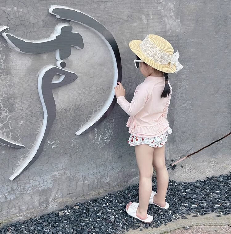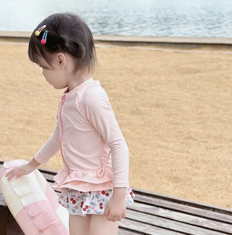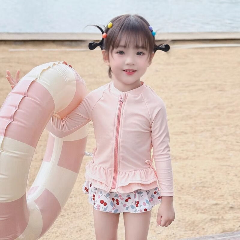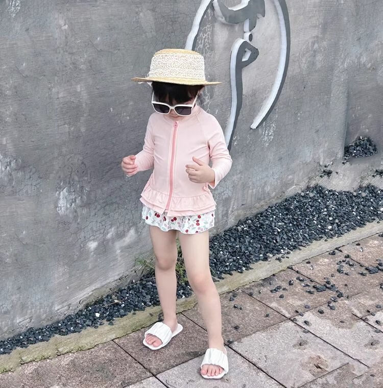 Remtin Girls Swimsuit Girls Quick-Drying Split Swimsuit Set Baby Swimsuit Long Sleeve Swimsuit Internet Celebrity Swimming Pink + Swimming Cap 90