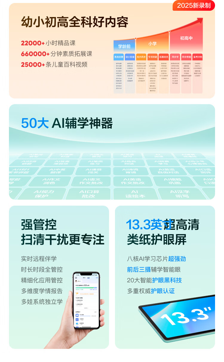 Xiaodu learning machine Z20 Plus 13.3-inch large screen tablet 6G+256G large memory tablet for primary school, junior high school and high school students to learn English and mathematics for all ages for free Z20 Plus standard version