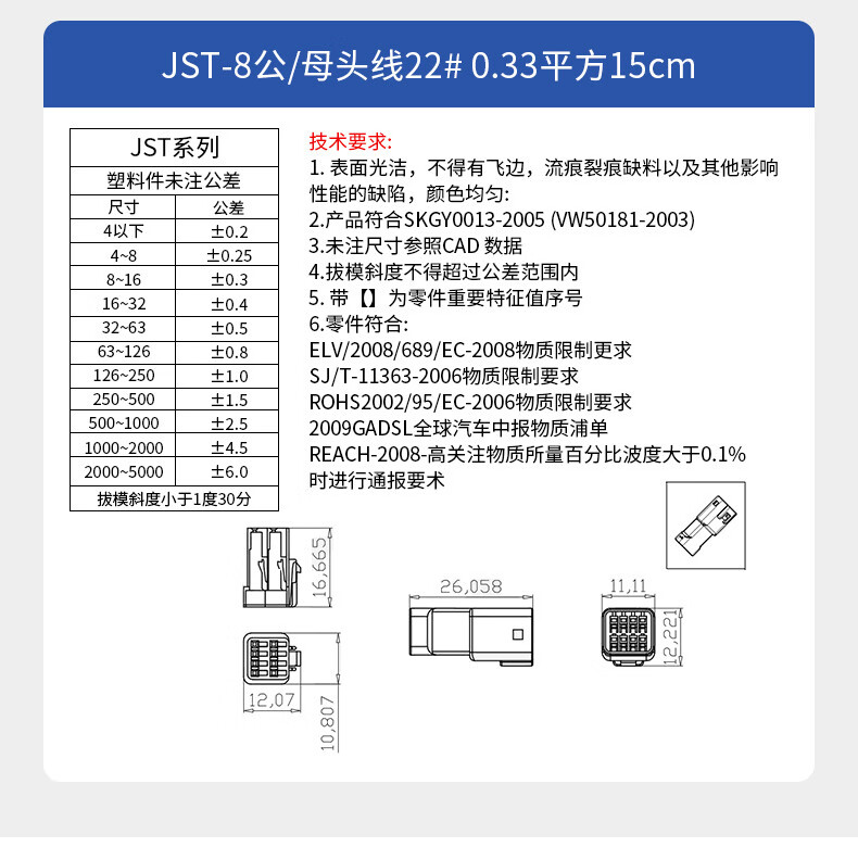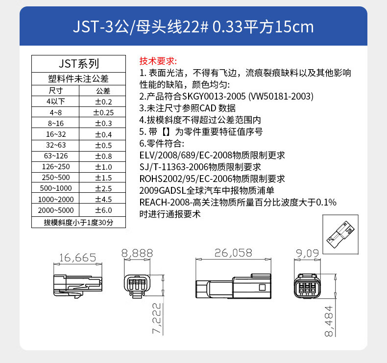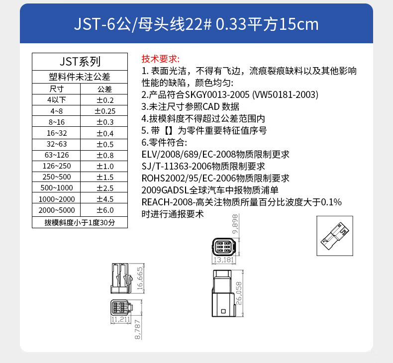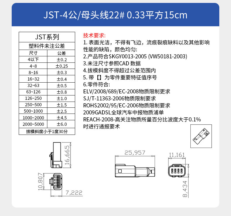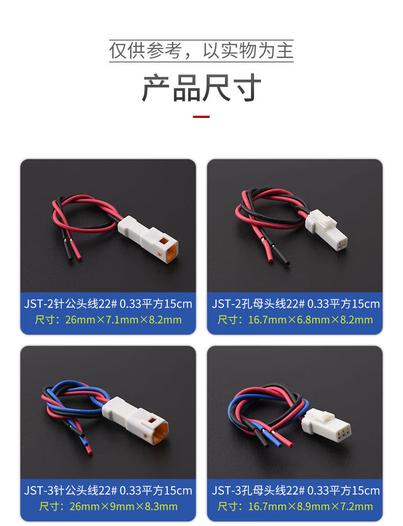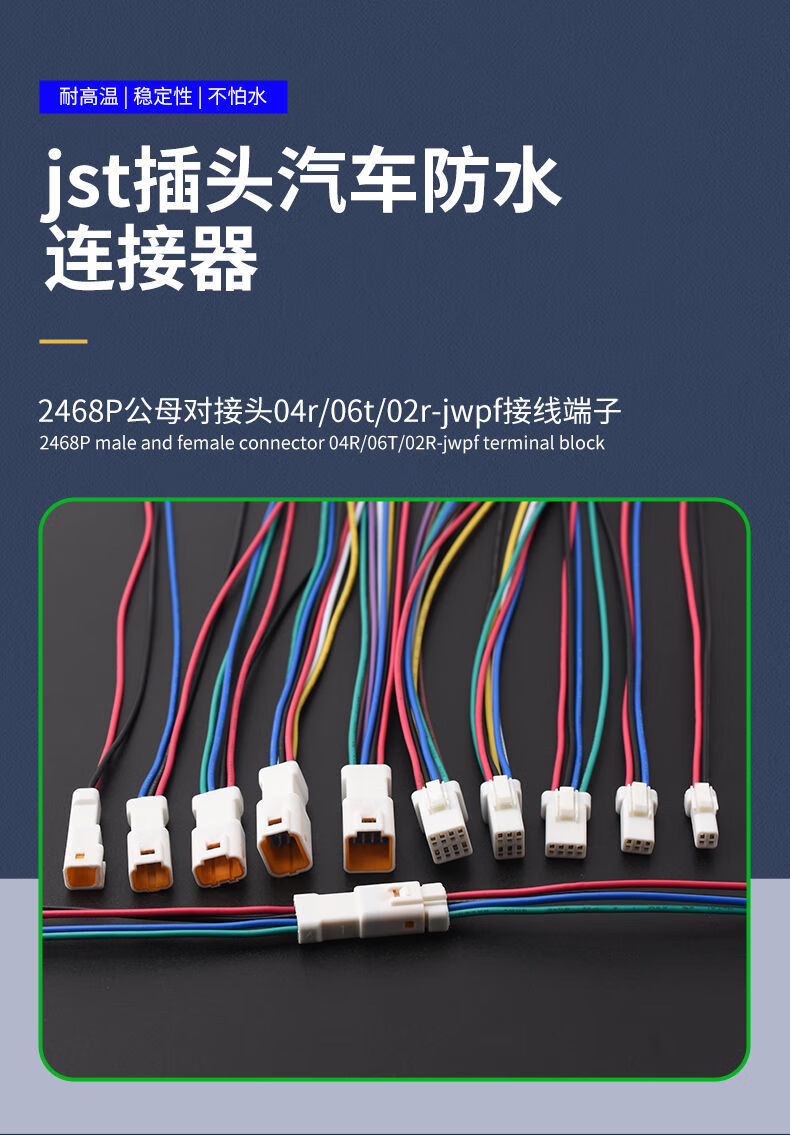 Jst plug car waterproof connector 246P male and female connector 04r/06t/02r-jwpf terminal block JST-4 hole female head wire 22#0.33 square 15cm
