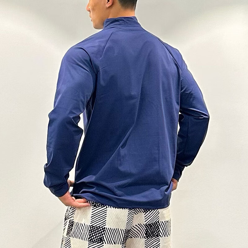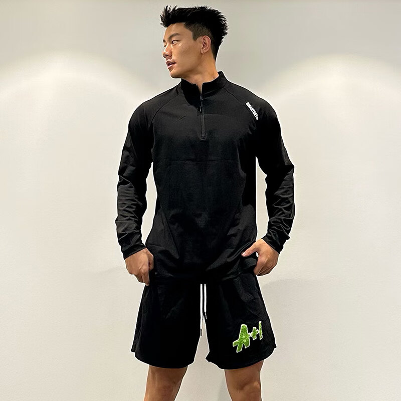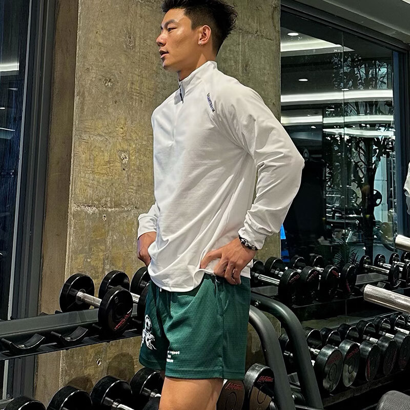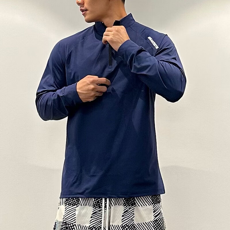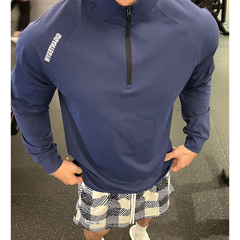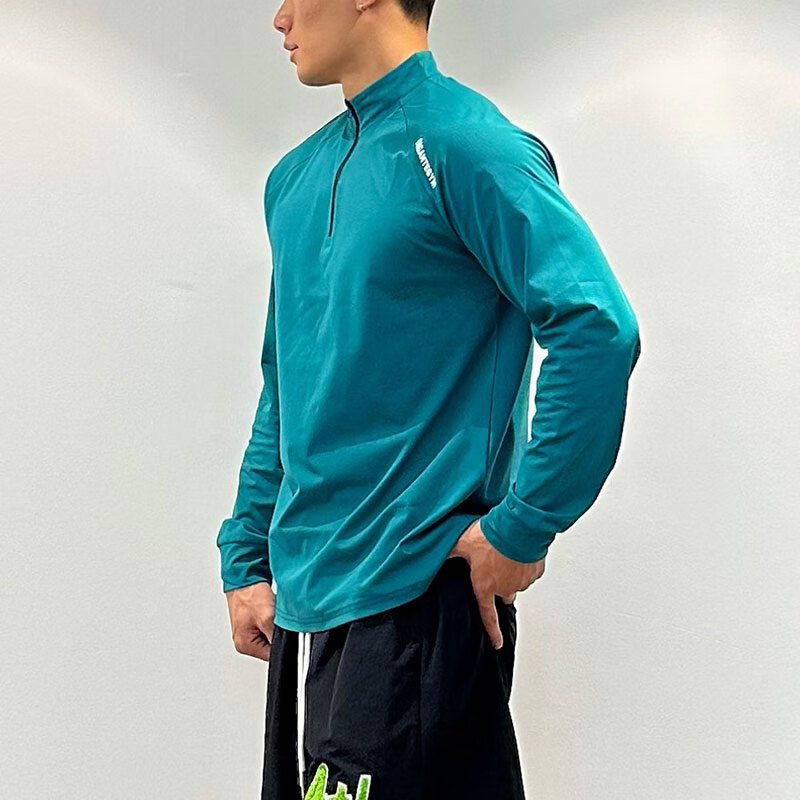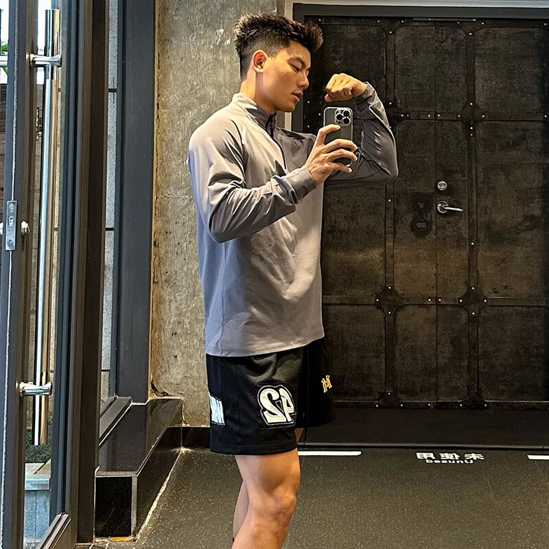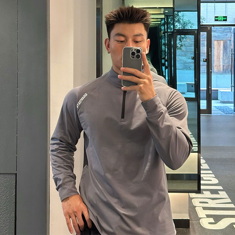 OLOEY fitness long-sleeved men's loose elastic half-zip sports t-shirt American running spring and autumn basketball training cycling jersey carbon gray M