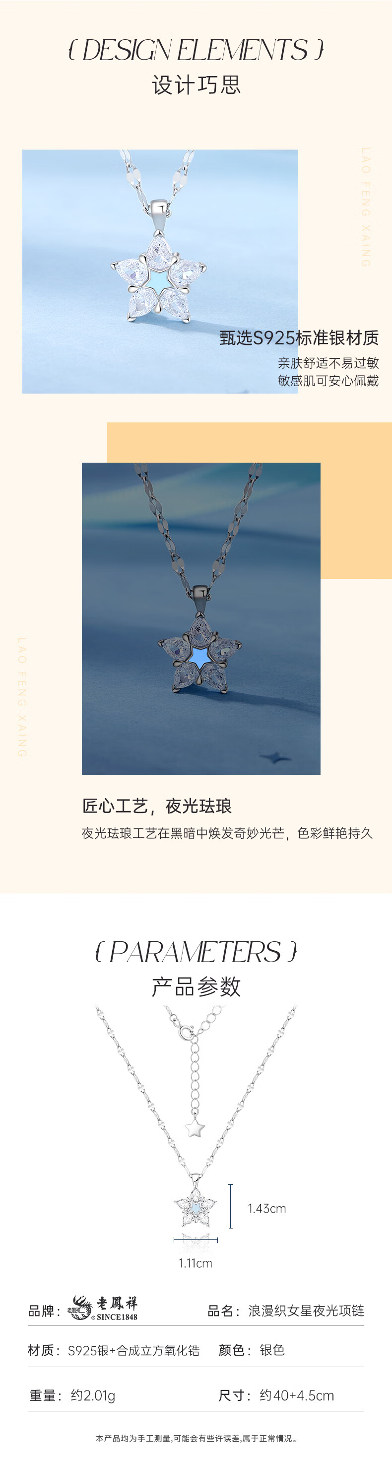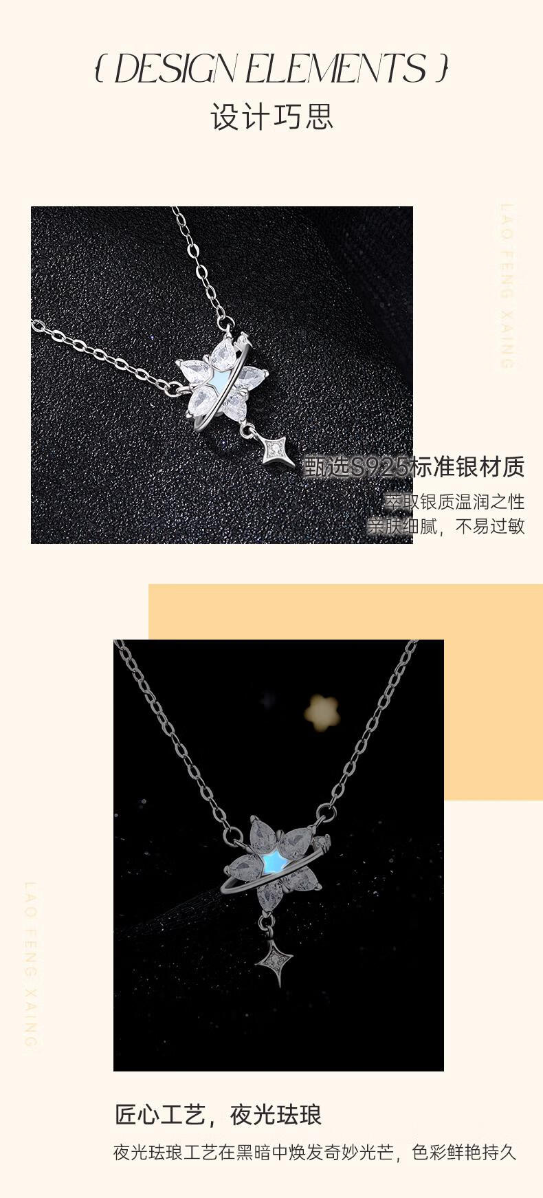 Lao Fengxiang silver necklace for girls, clavicle chain, luminous star, high-end anniversary birthday gift for girlfriend and wife, local warehouse/nearby delivery, shining Vega star