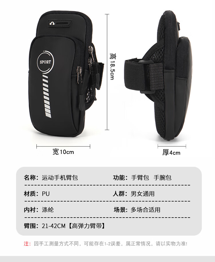 New waterproof sports fitness running mobile phone arm bag marathon running wrist bag unisex mobile phone arm bag black 7.0 inches/arm bag