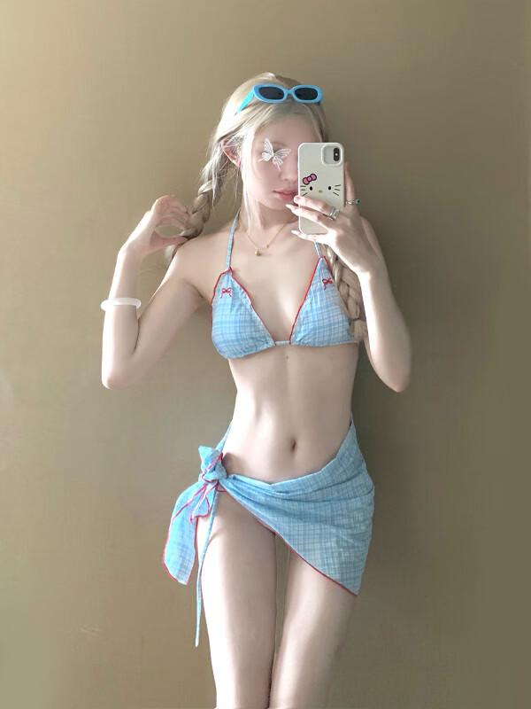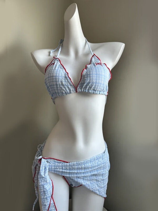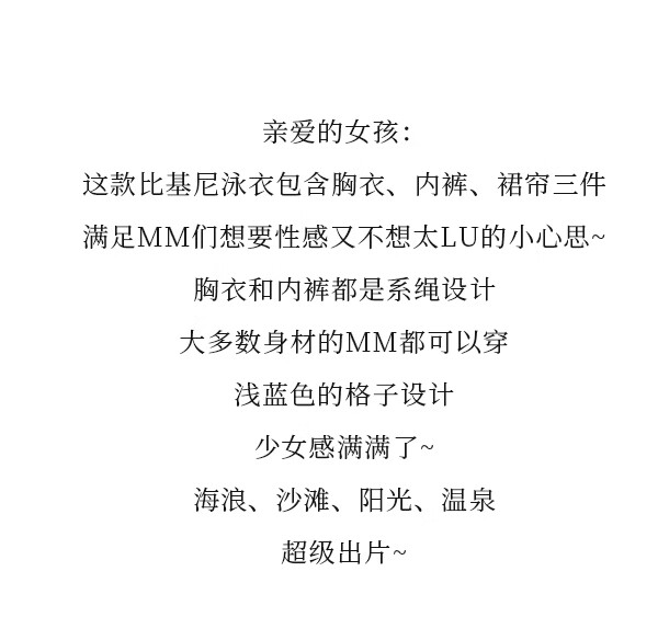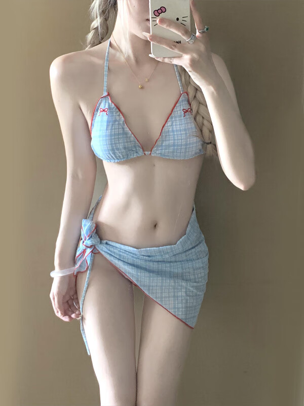 Nine-inch Sunshine New Swimsuit for Girls Cute Girl Retro Plaid Three-piece Skirt Bikini Split Small Breast Swimming Spa Blue Plaid (Three-piece Set) One Size (Recommended Weight 120Jin Jin is equal to 0.5 kg)