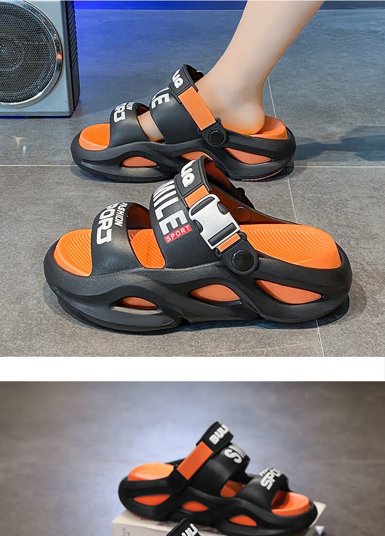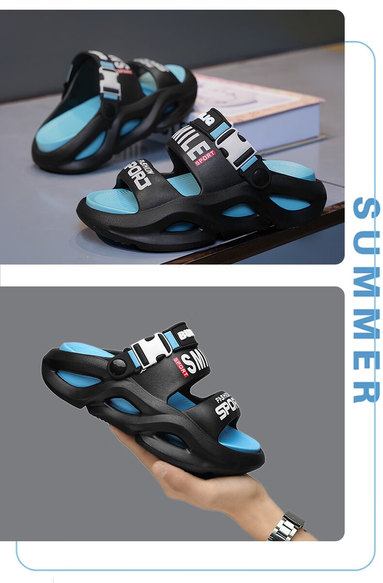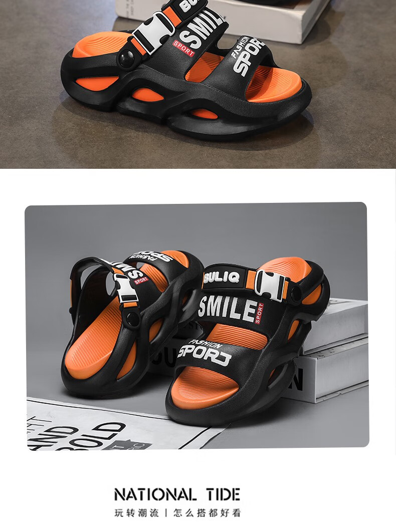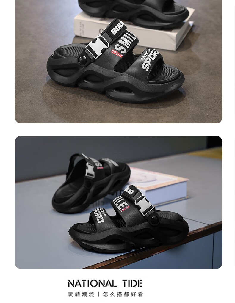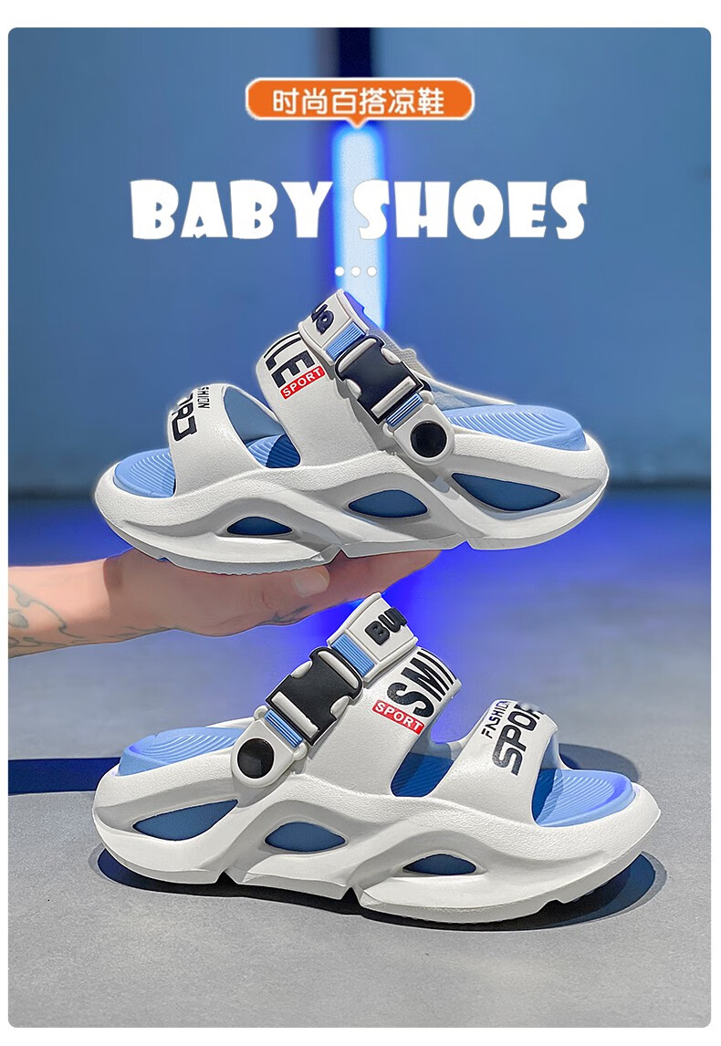 Huilirui boys' slippers two-wear children's sandals 2025 new summer soft-soled anti-slip beach shoes for middle-aged and older children to wear outside sandals Volcanic ash sandals main picture 36 3637