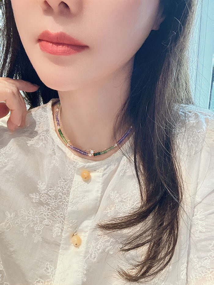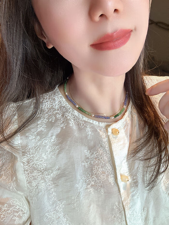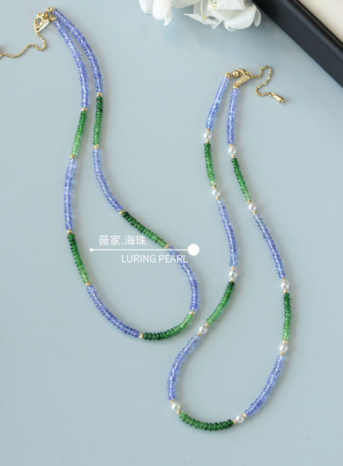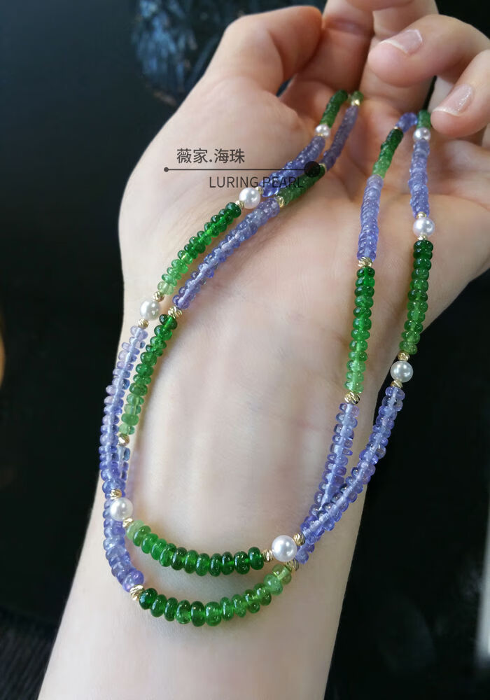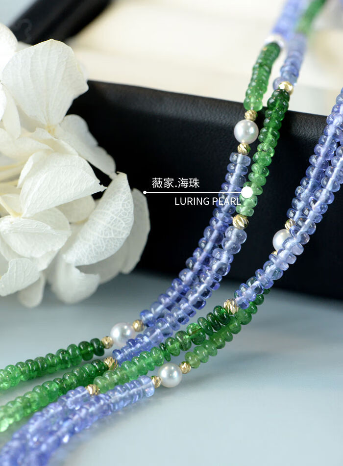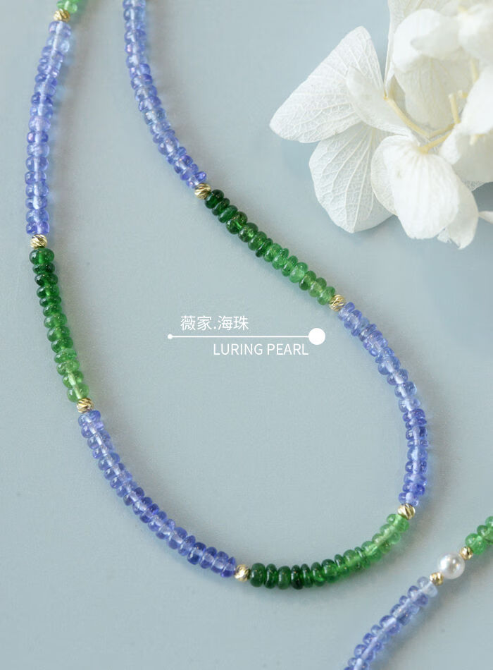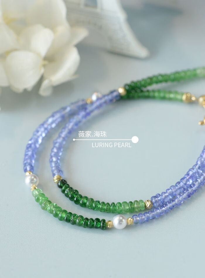 Shaoyu Monet Garden Natural Tsavorite Tanzanite Japanese Akoya Pearl Necklace Bracelet Ready Stock/Pearl Style/Necklace Total Length Approximately 42+5cm