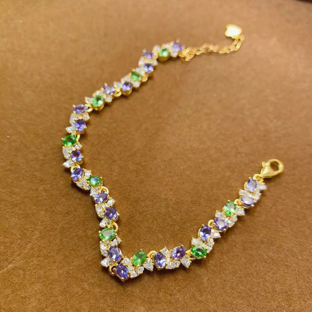 Shaoyu natural tanzanite tsavorite bracelet s925 high clarity color high gorgeous 3*4mm