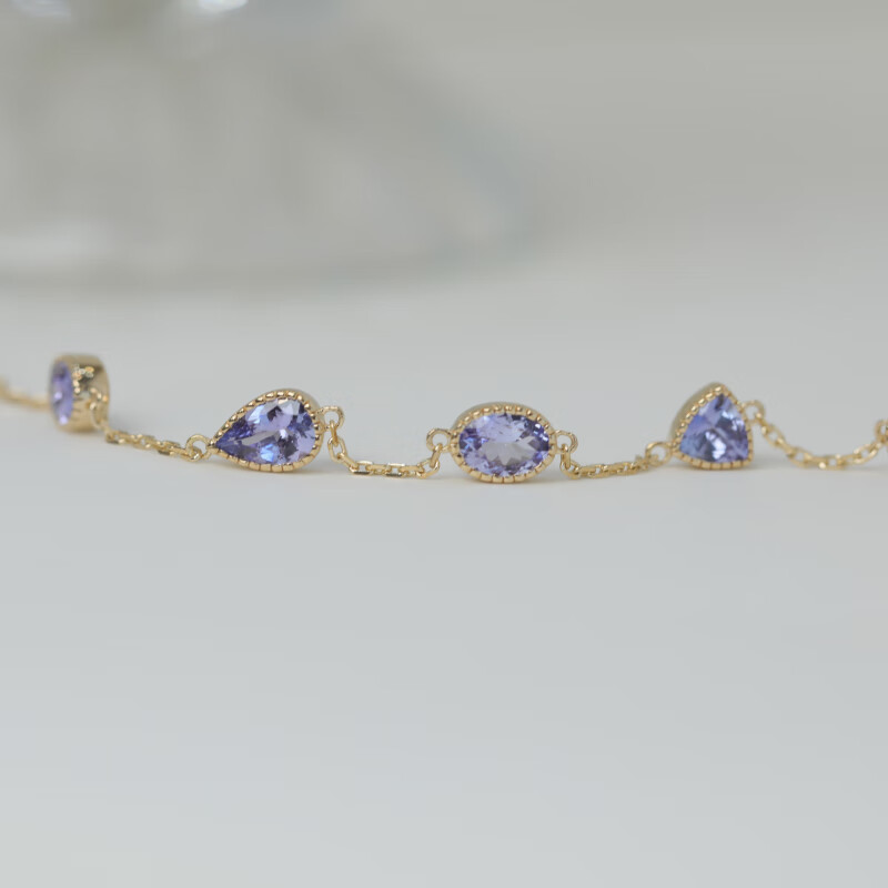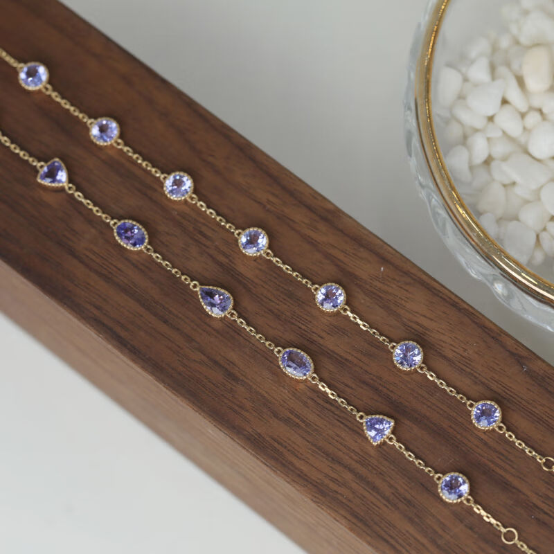Shaoyu Natural Tanzanite 18k Gold Bracelet Duobao Water Drop Oval Round Blue Purple Tanzanite Bezel Inlaid Retro Bracelet Round Bracelet