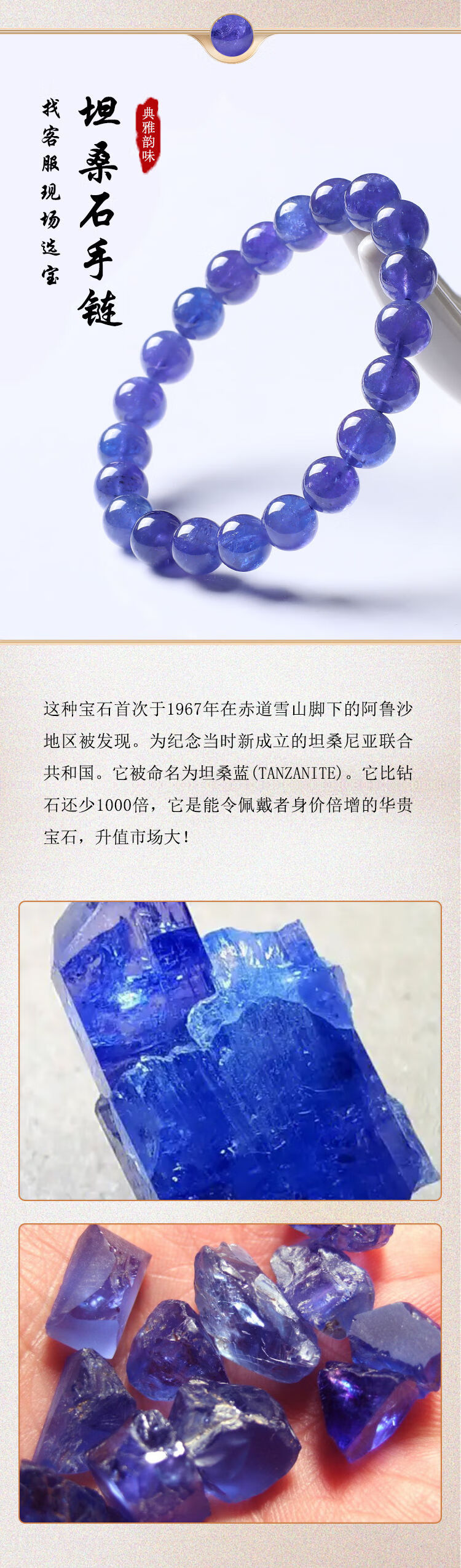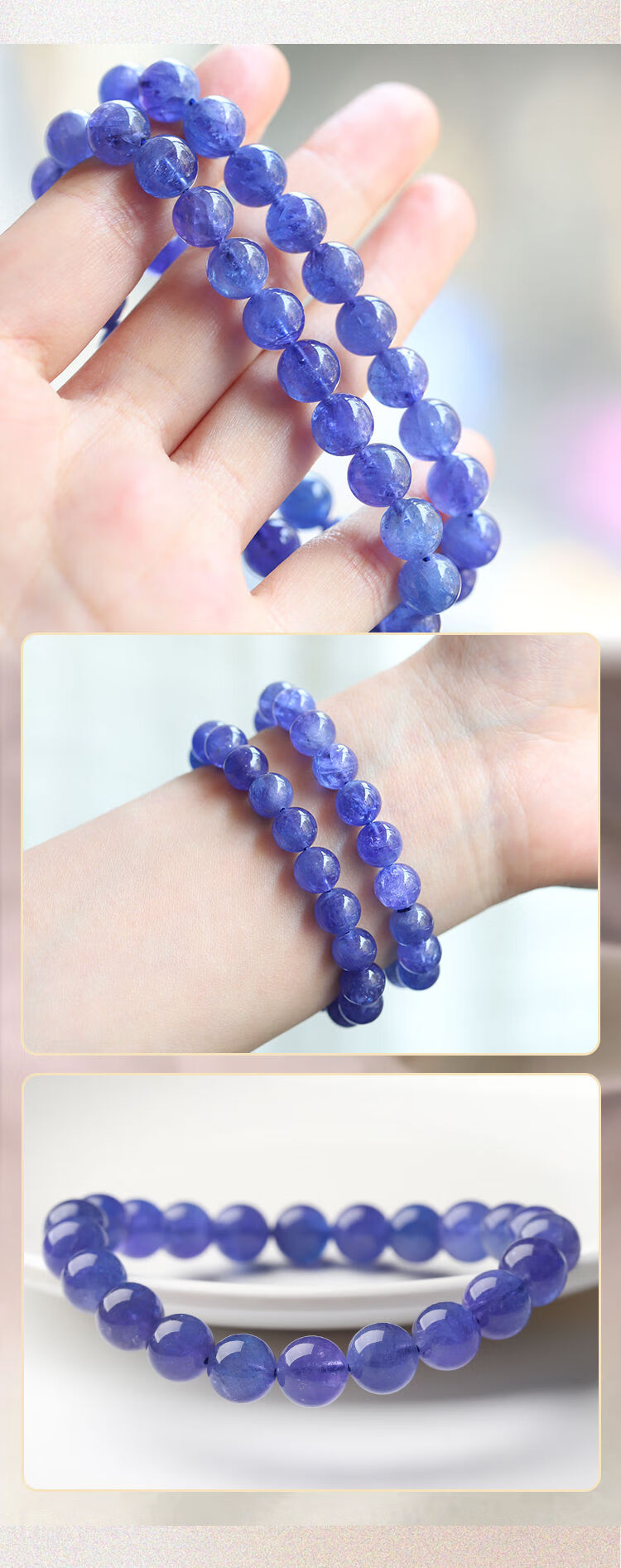 Shaoyu Tanzanite Bracelet Ice Sapphire Bracelet Loose Beads Women's Single Circle Jewelry Gift Classic and Versatile 8mm Ice Tanzanite Bracelet