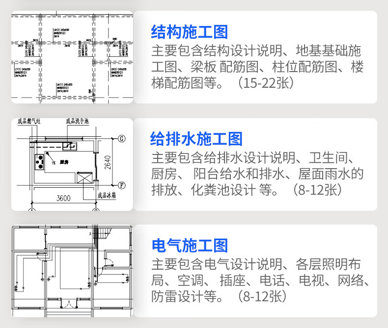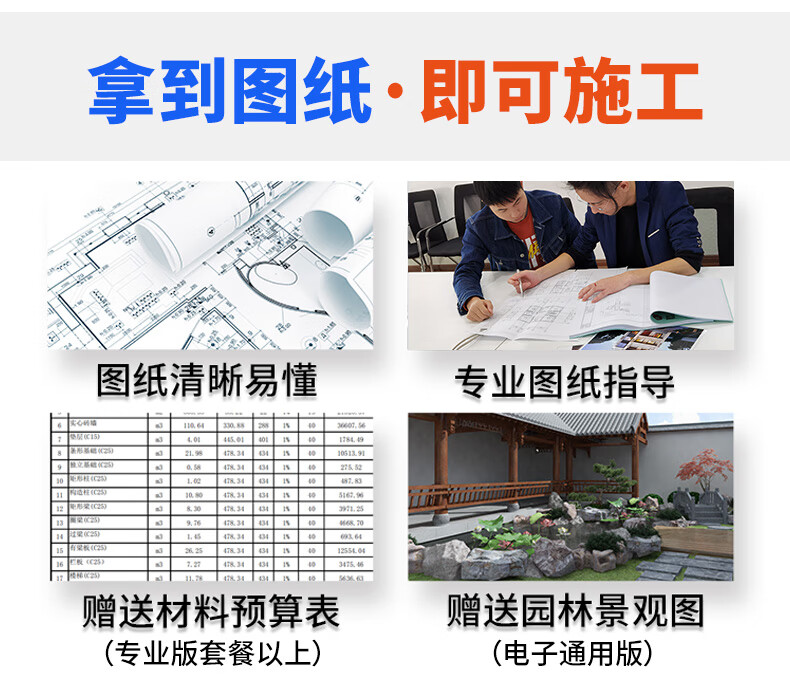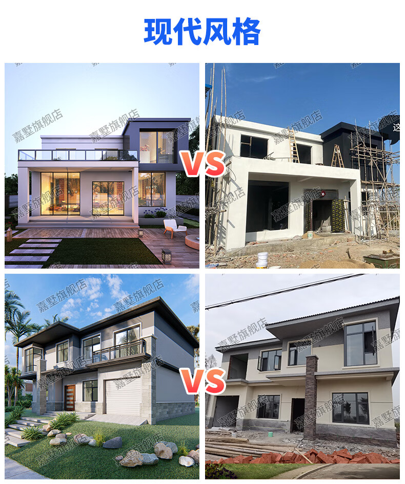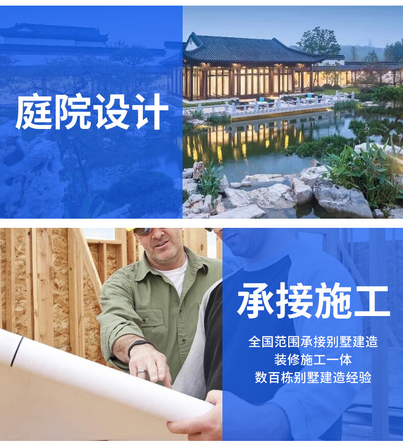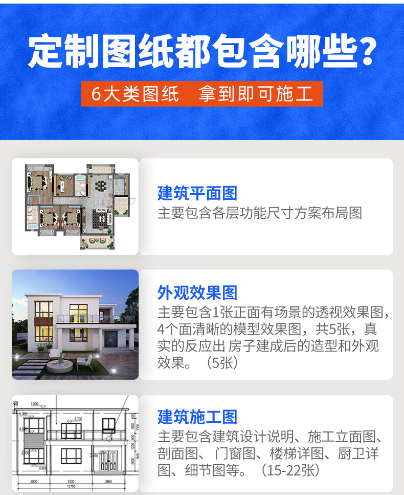 Design drawings of self-built houses in rural Jiashu. New Chinese-style courtyard two-story villa with paper courtyard. One, two and three small foreign houses.