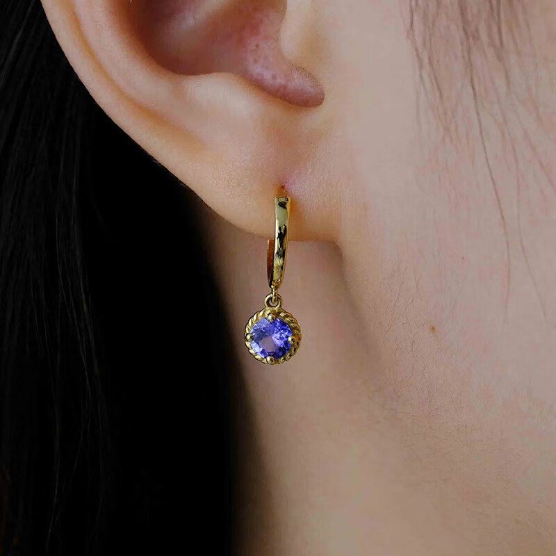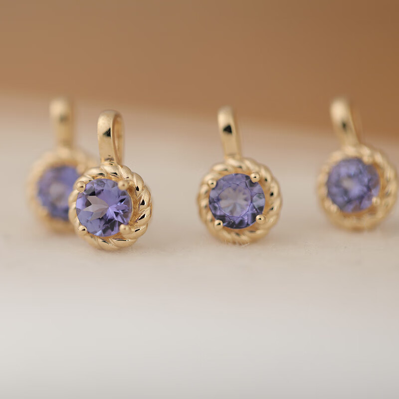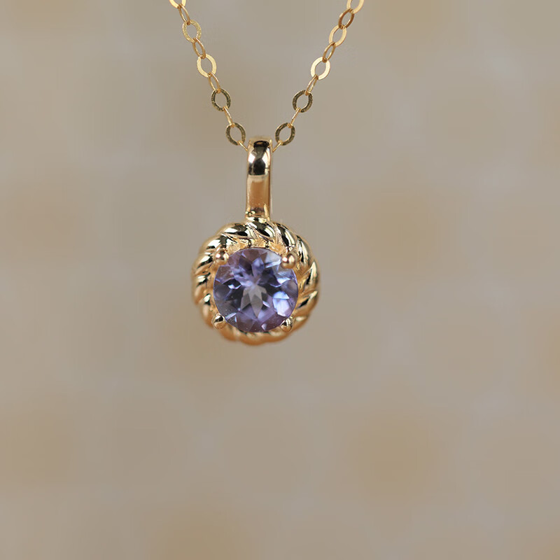 Shaoyu Natural Round Tanzanite Earrings Pendant Necklace 18k Gold Vintage Twist Inlaid Tanzania Origin Pendant (Excluding Chain)