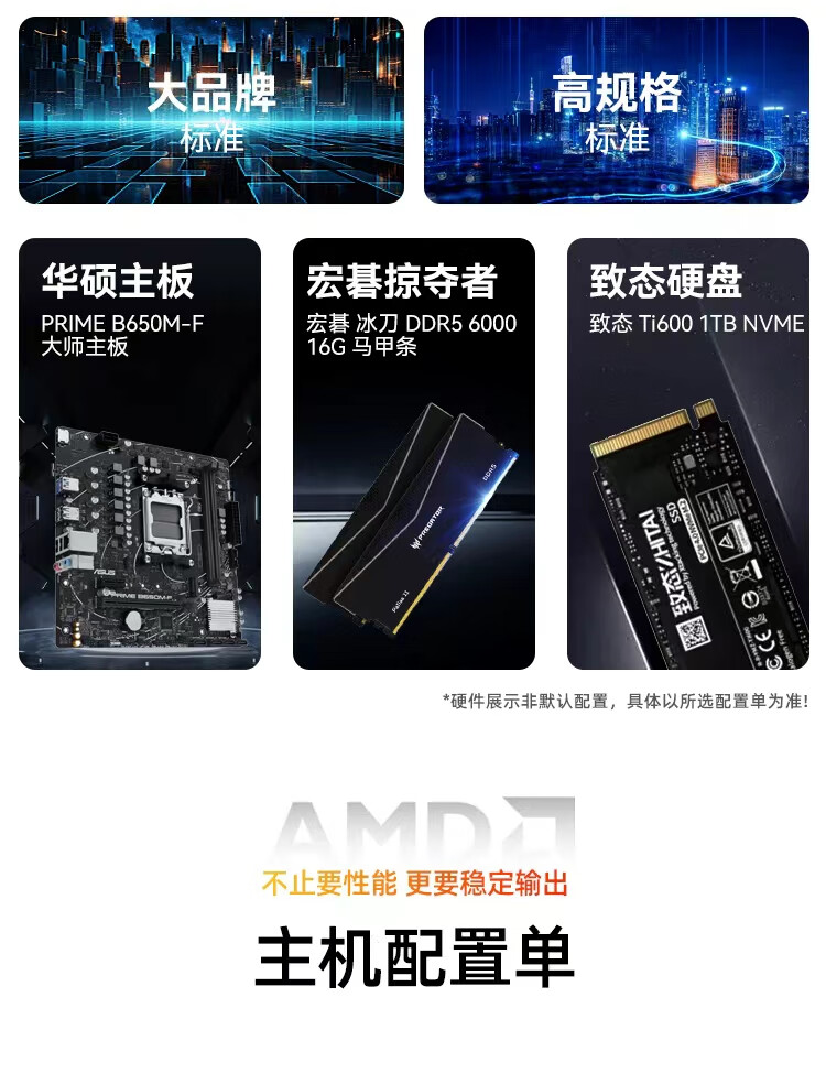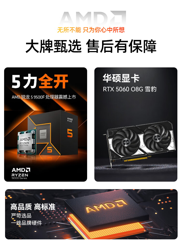 ASUS family bucket AMD 9600X host/5060/9070XT/5070/5060ti assembled computer host game e-sports design rendering host desktop DIY complete machine 9600X+RTX5060 8G丨One set