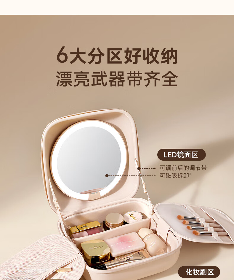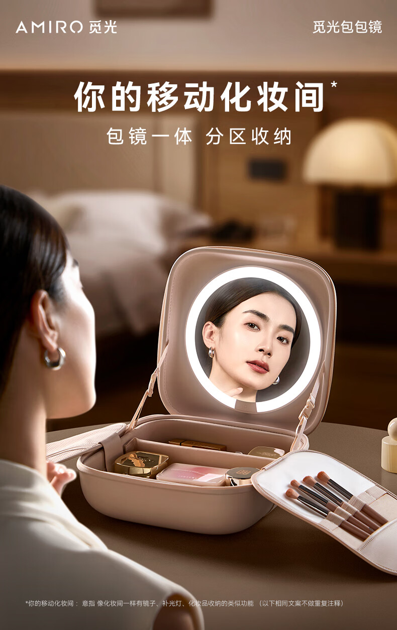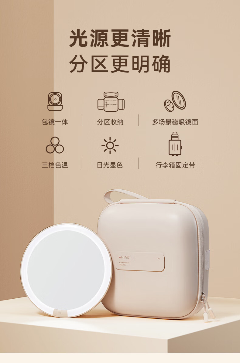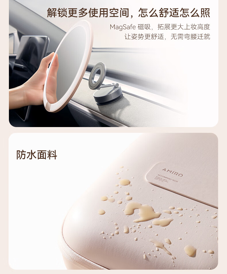 AMIRO bag vanity mirror with light led portable beauty mirror M3 partition storage magnetic car vanity mirror birthday gift pink