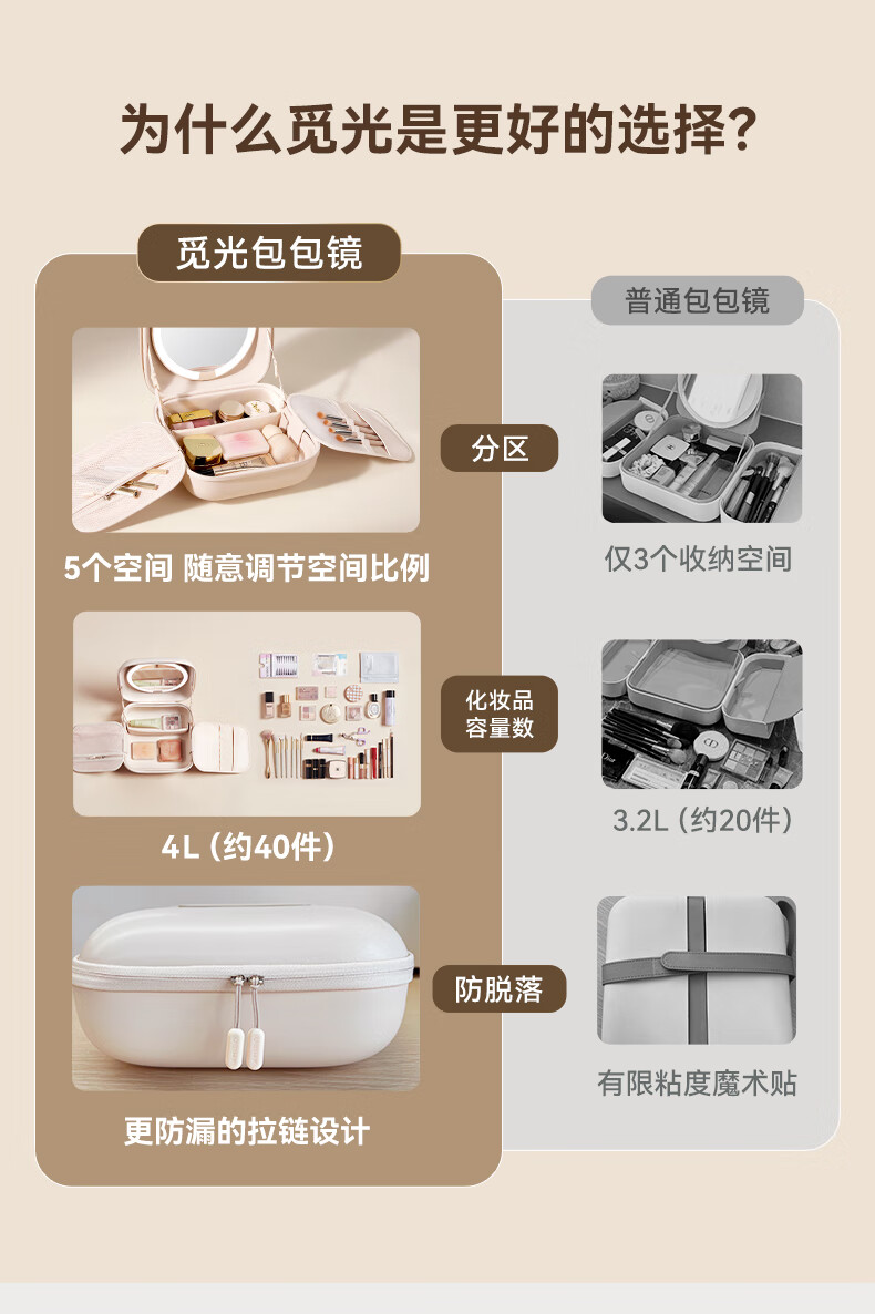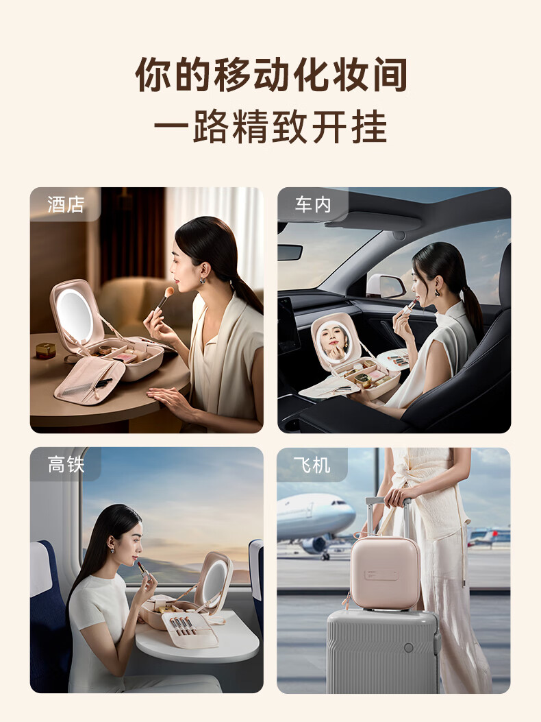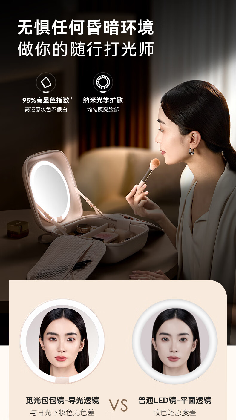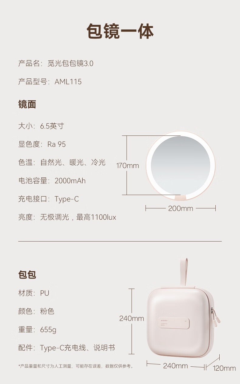 AMIRO bag vanity mirror with light led portable beauty mirror M3 partition storage magnetic car vanity mirror birthday gift pink