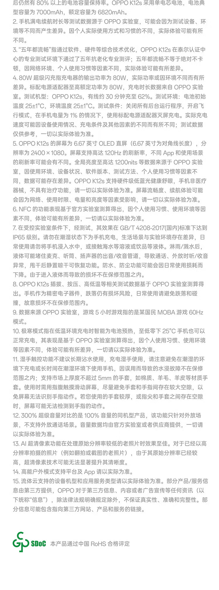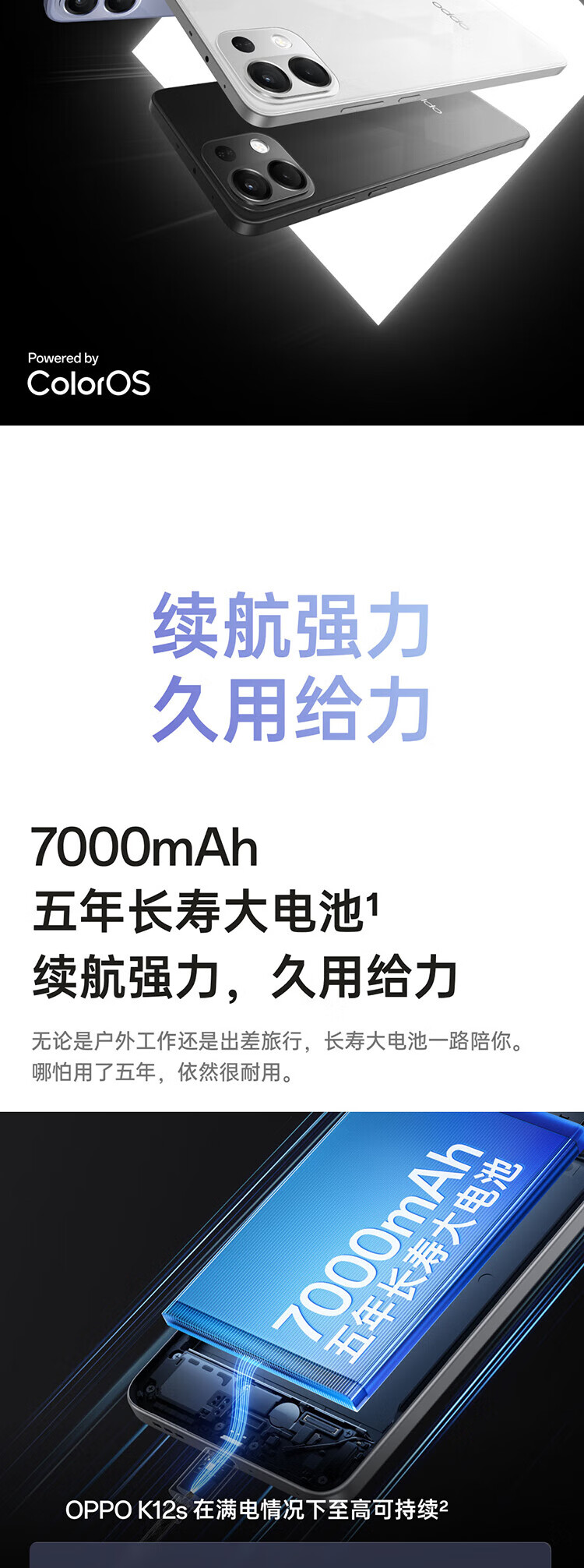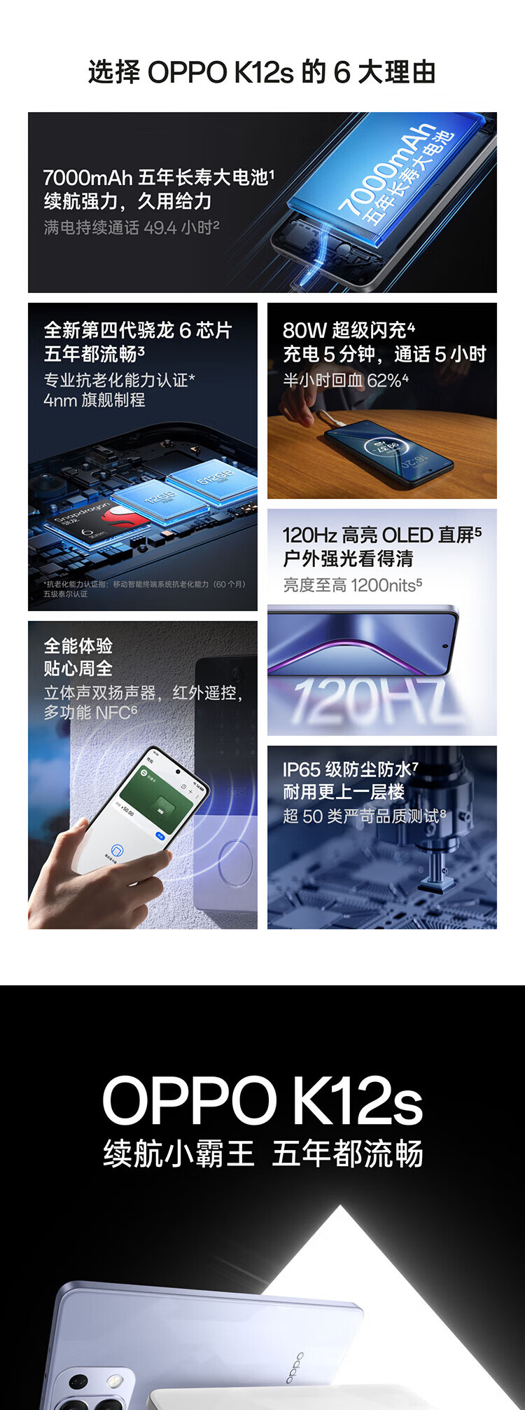 OPPO National Subsidy 15 K12s New Product Launched 7000mAh Large Longevity Battery 80W Super Flash Charge 120Hz High-Bright OLED Direct Screen 5G Mobile Phone 8GB+128GB Prism Black