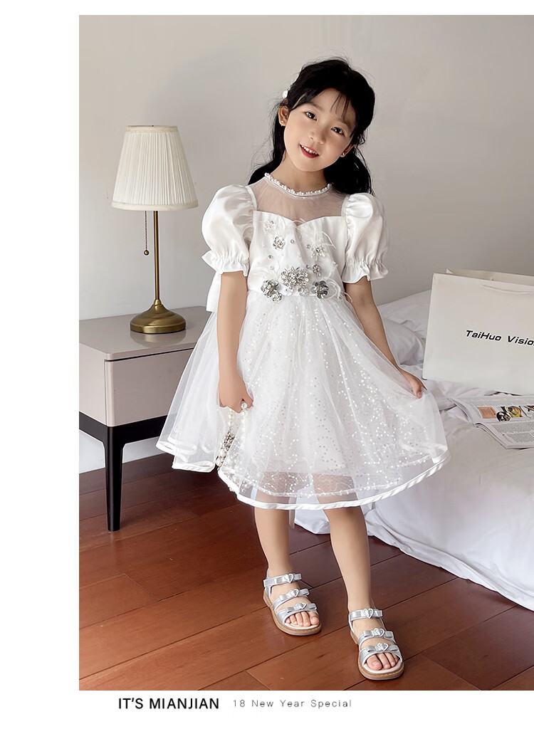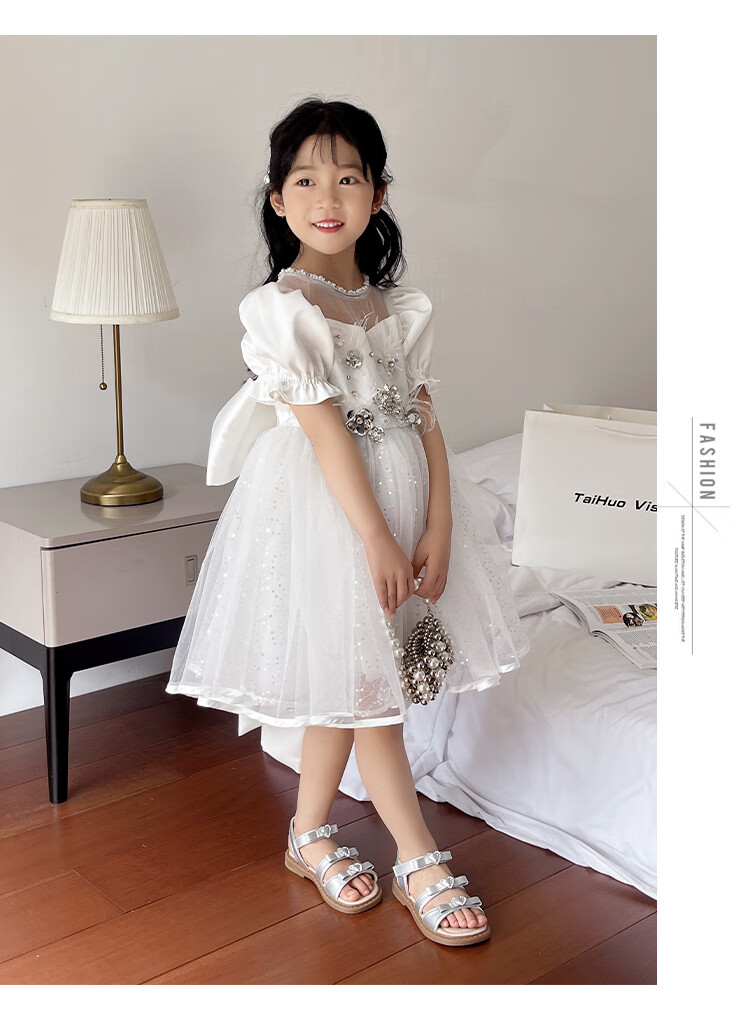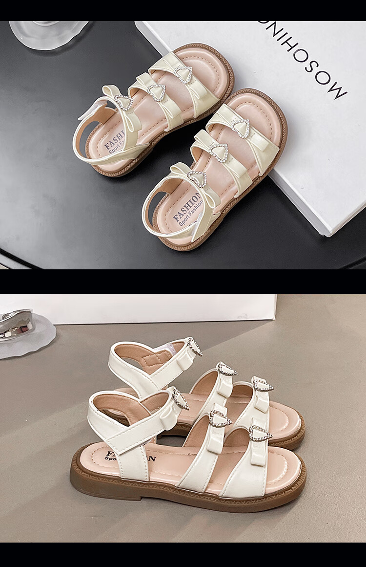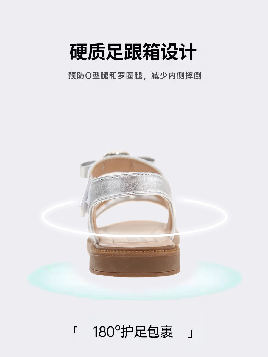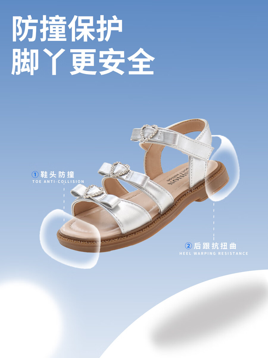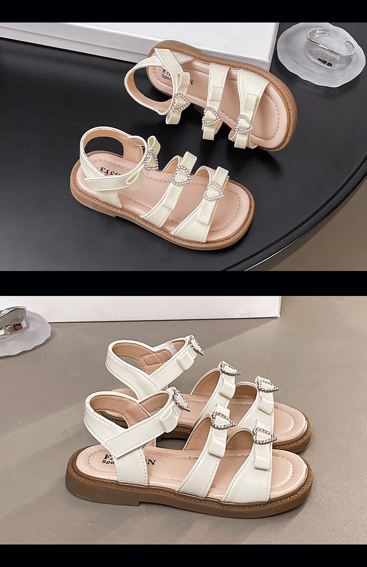 Girls Princess Sandals 2025 Summer New Children's Sandals Soft Sole Medium and Large Children's Open Toe Sandals Velcro Girls Silver Size 27 Inner Length Approximately 16.7cm