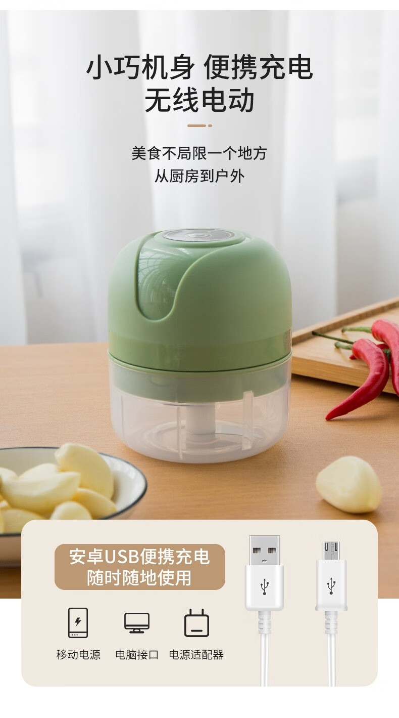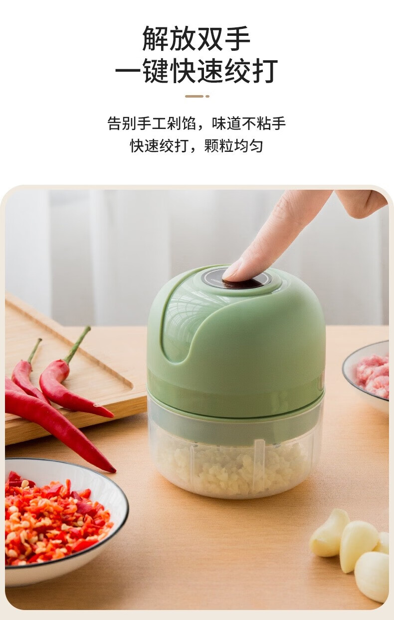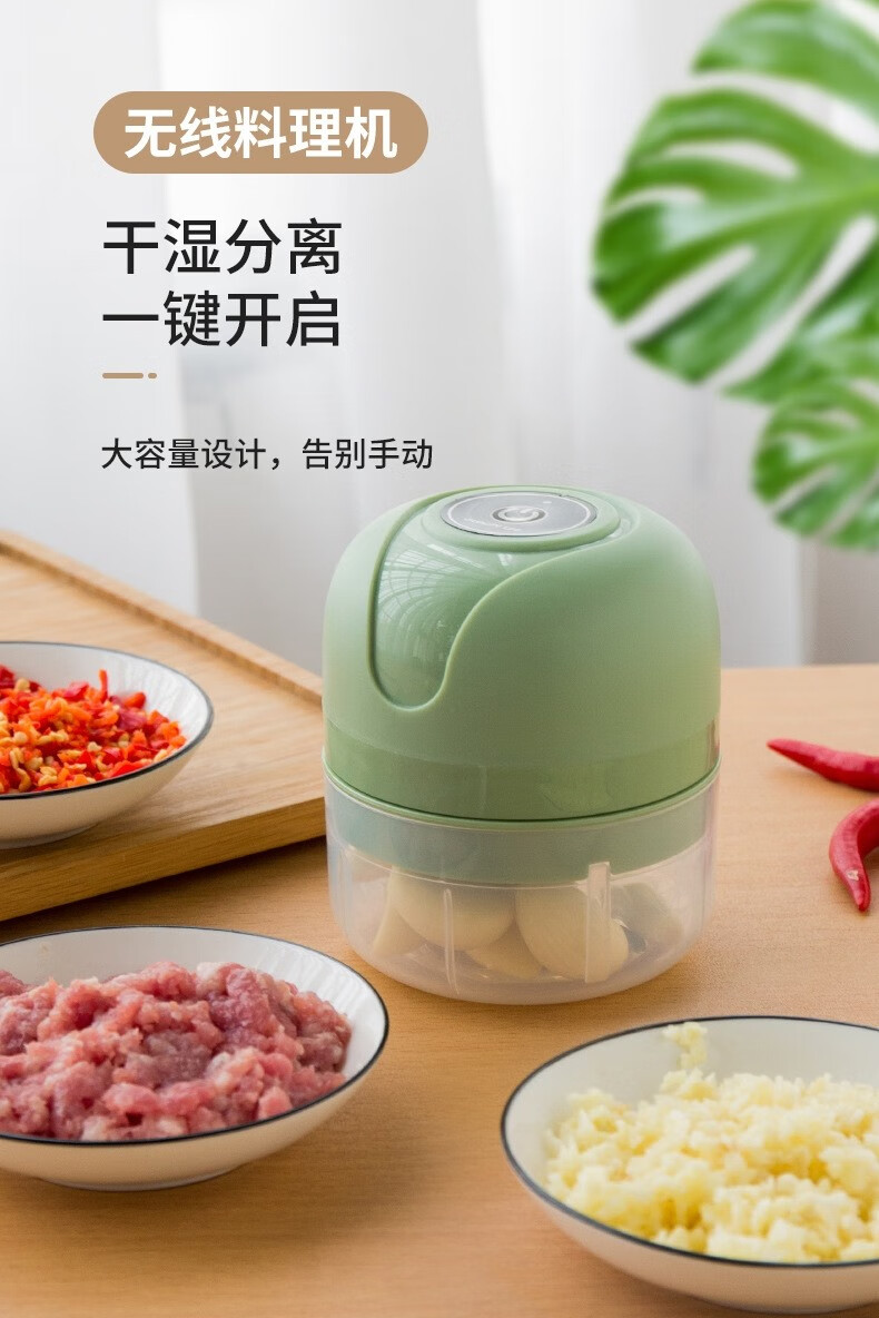 Electric garlic pounder garlic wireless meat grinder cooking machine household small garlic grinder garlic stirrer 250ml Haoyue white + 3-leaf knife + one-button fast mincing
