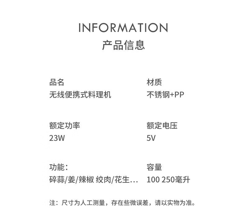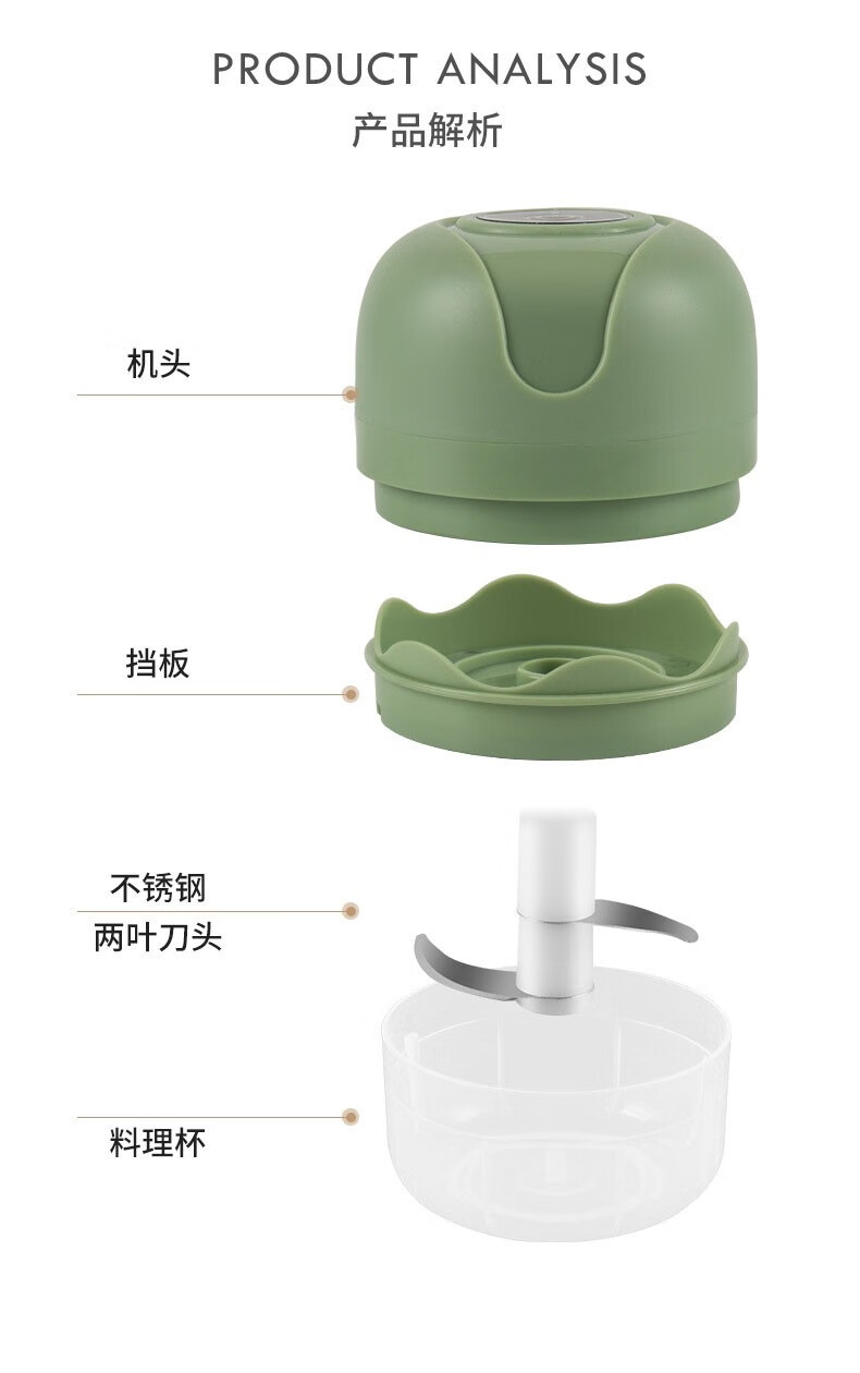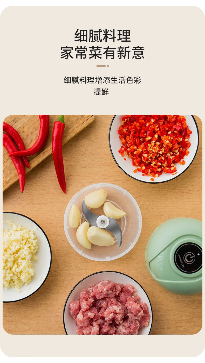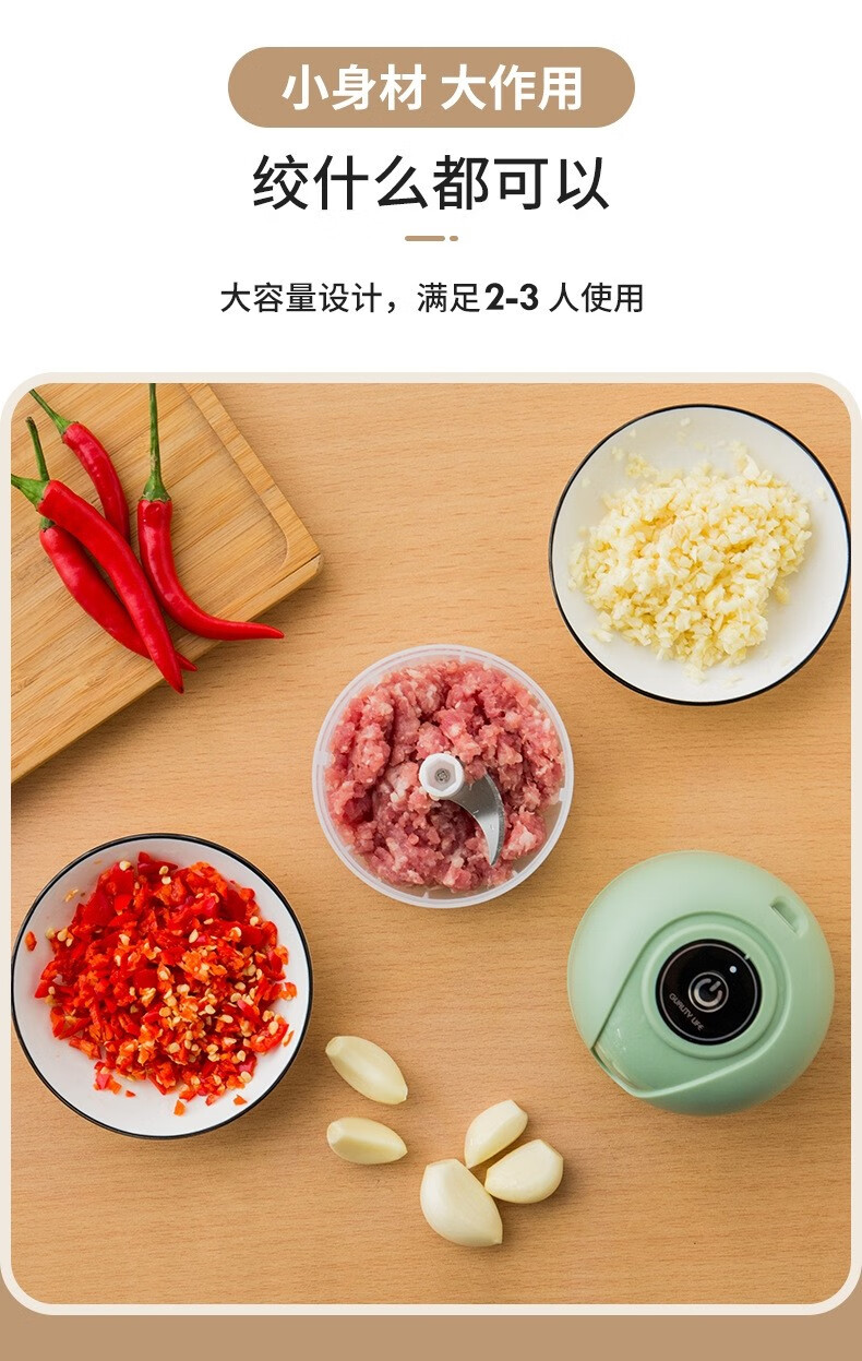 Electric garlic pounder garlic wireless meat grinder cooking machine household small garlic grinder garlic stirrer 250ml Haoyue white + 3-leaf knife + one-button fast mincing