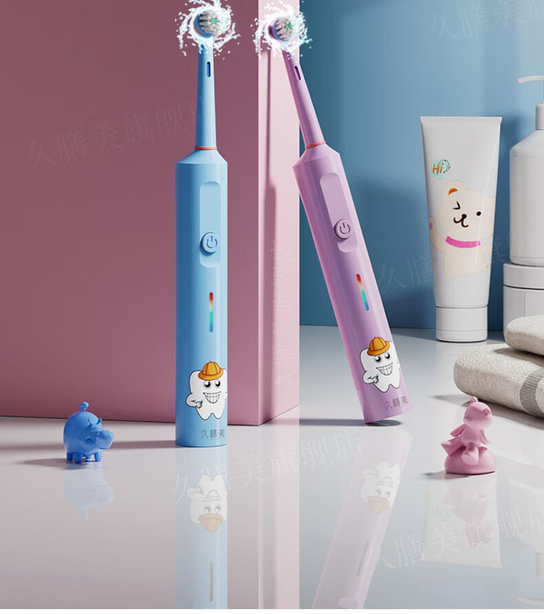 Children's rotating electric toothbrush rechargeable round head 2-3-4-6-12 years old and above, teenagers, boys and girls, soft bristles for gum protection, children's festival gift, Barbie powder + four brush heads in total