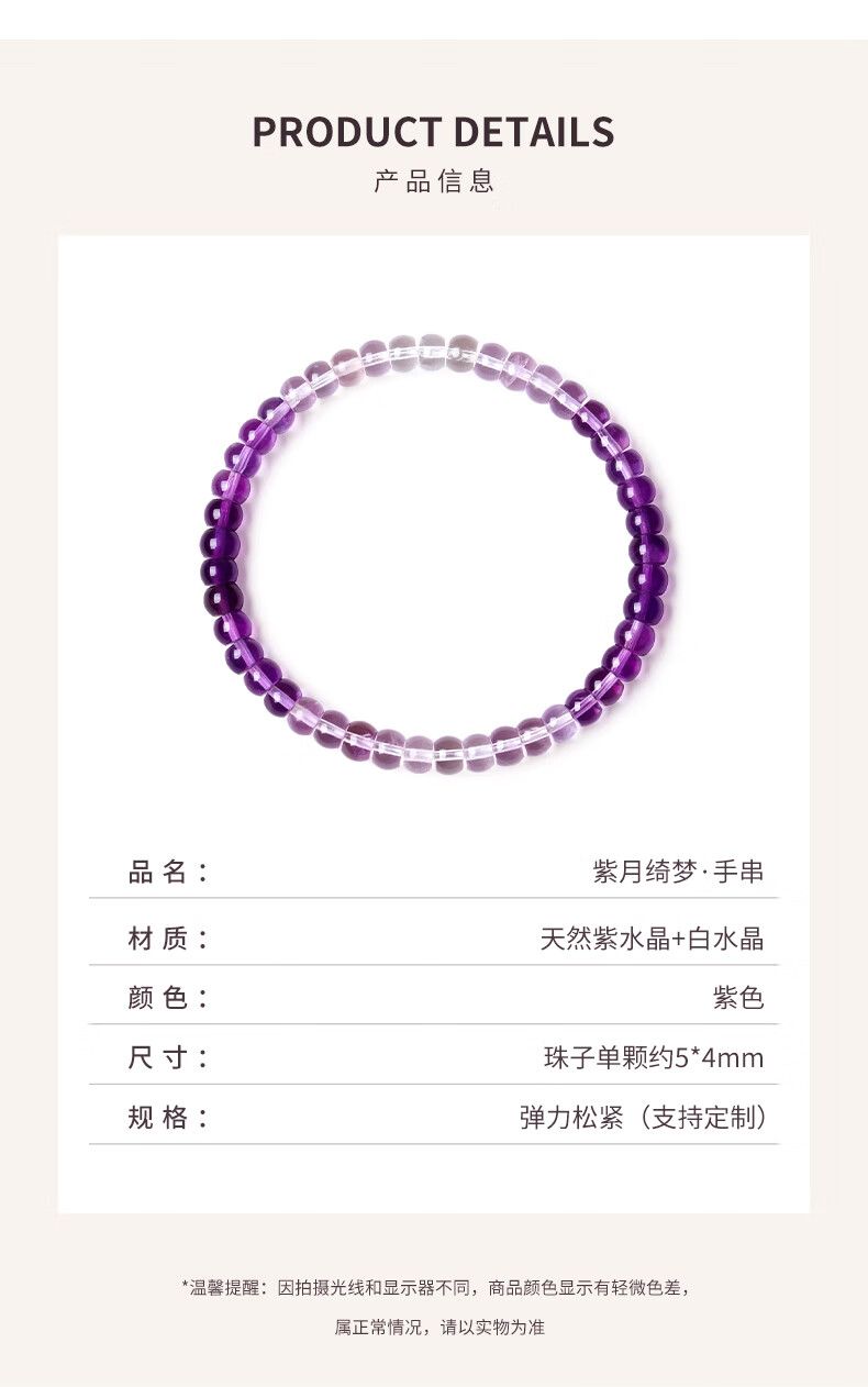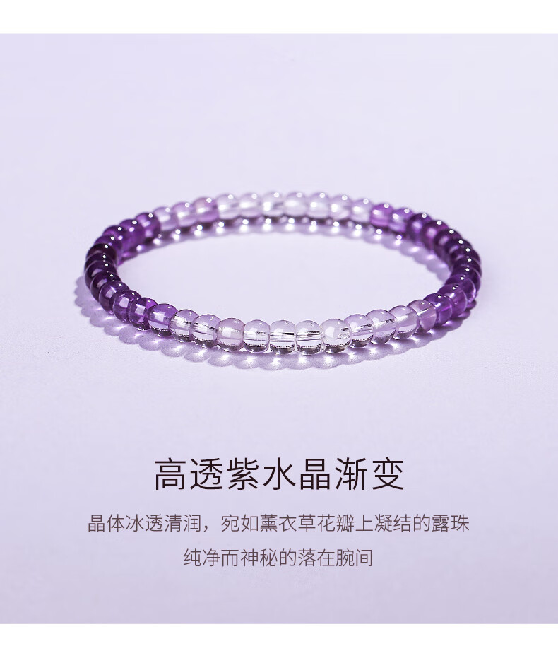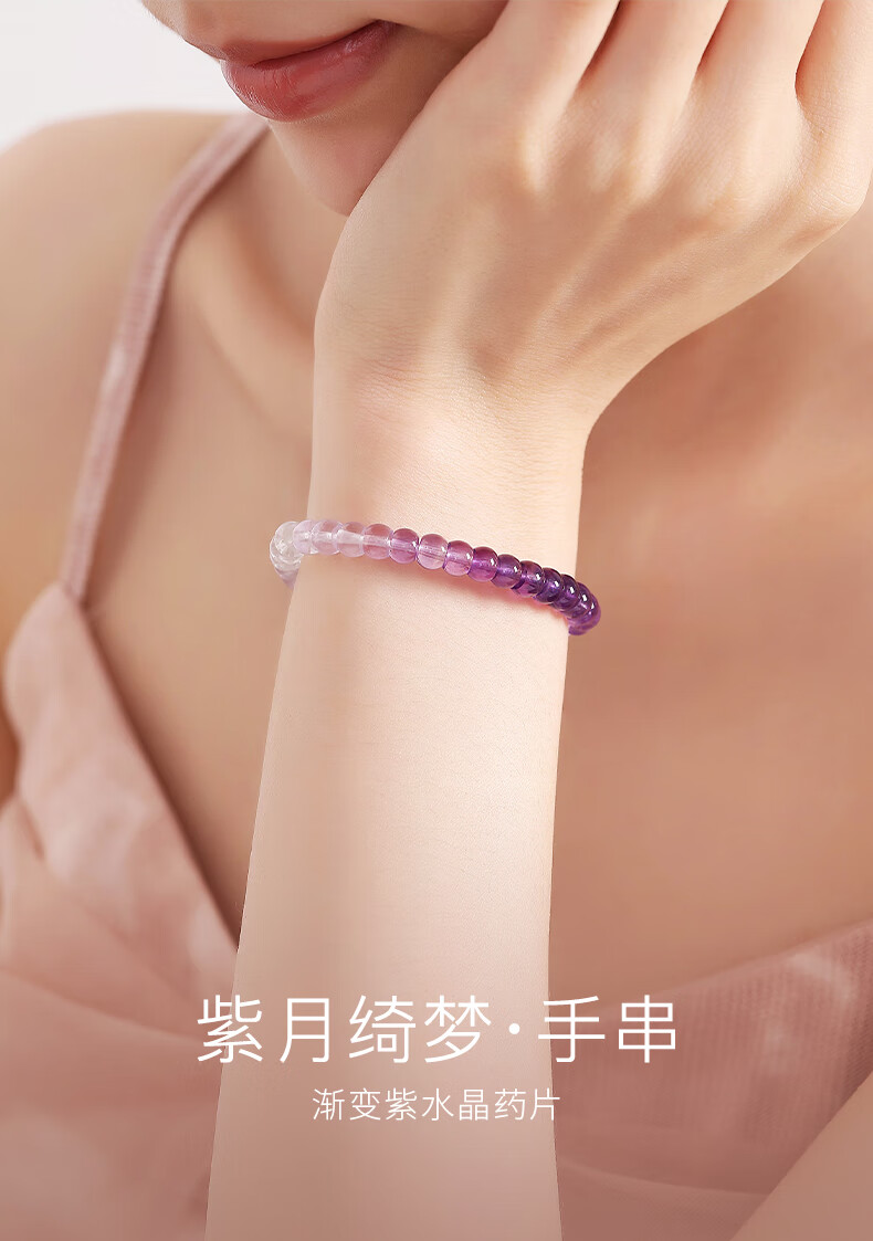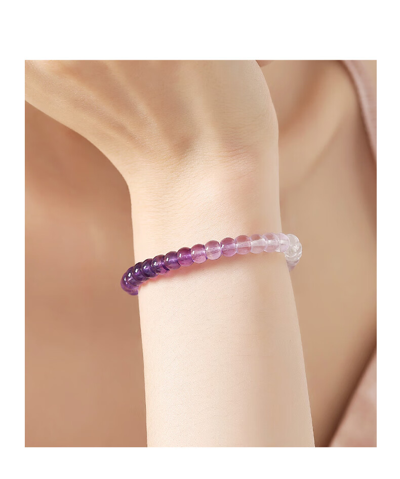 La Yun Feiyin Natural Amethyst Pill Bracelet for Women Gradient Straight Cut White Crystal Nine Purple Fire Beads Beaded Bracelet Hand Jewelry Gradient Amethyst Pill Bracelet 15cm