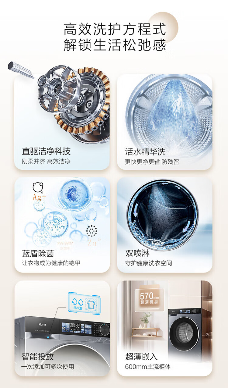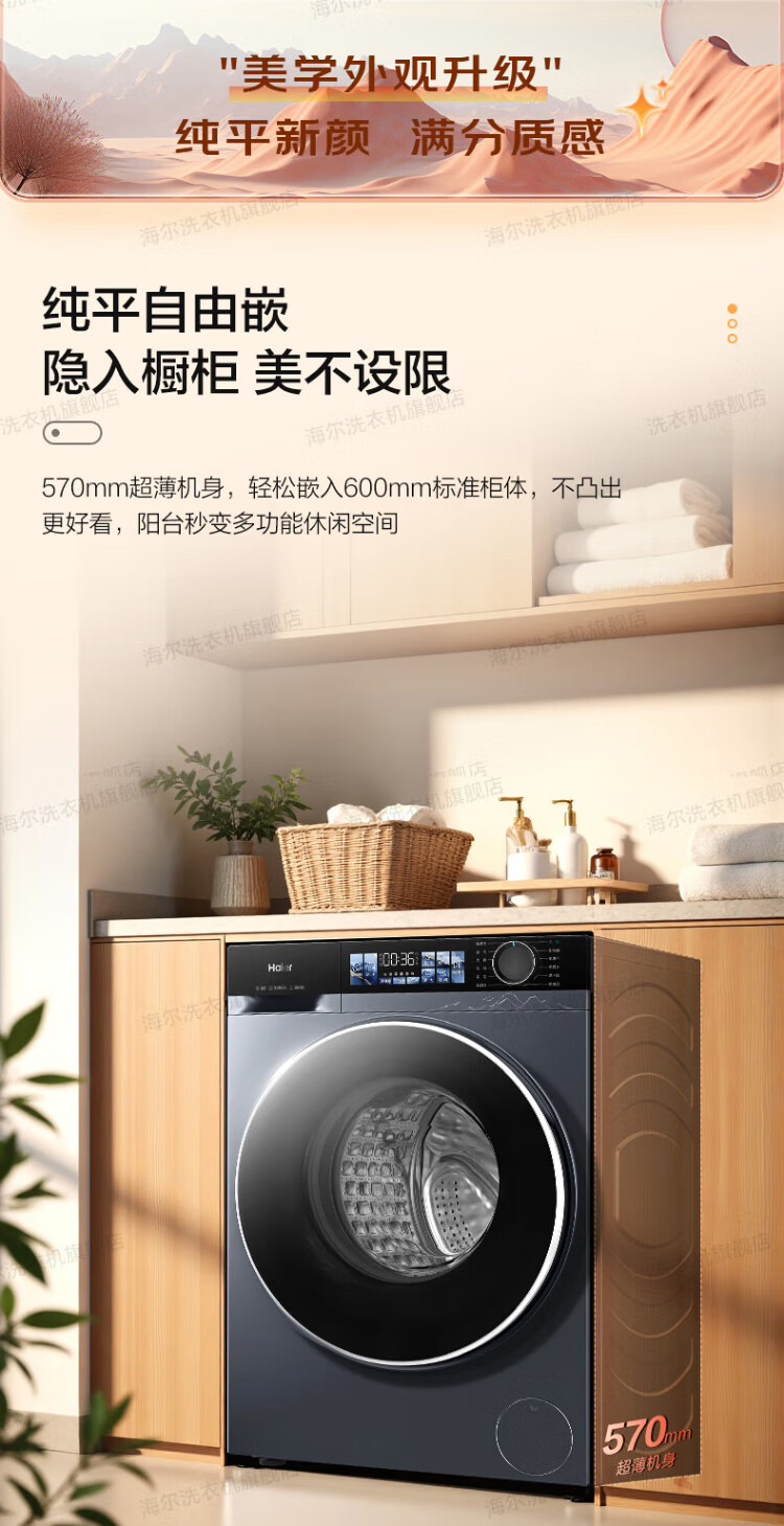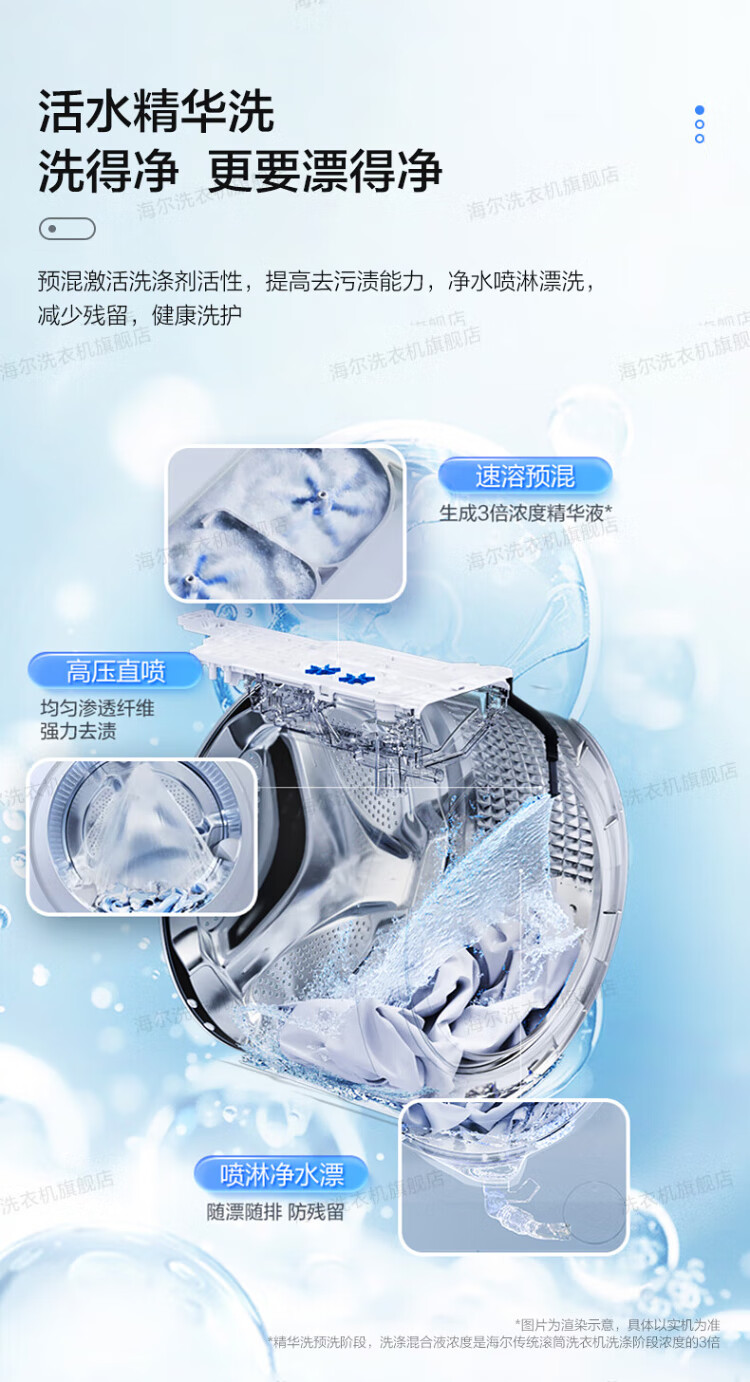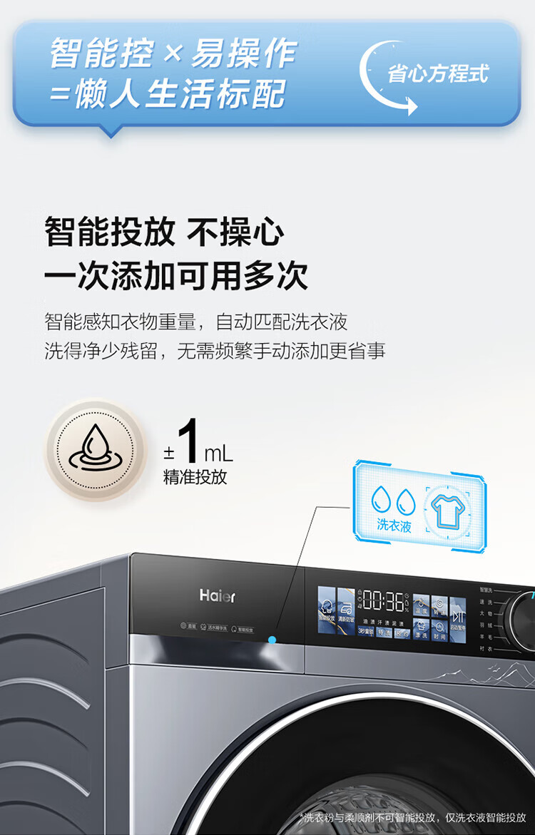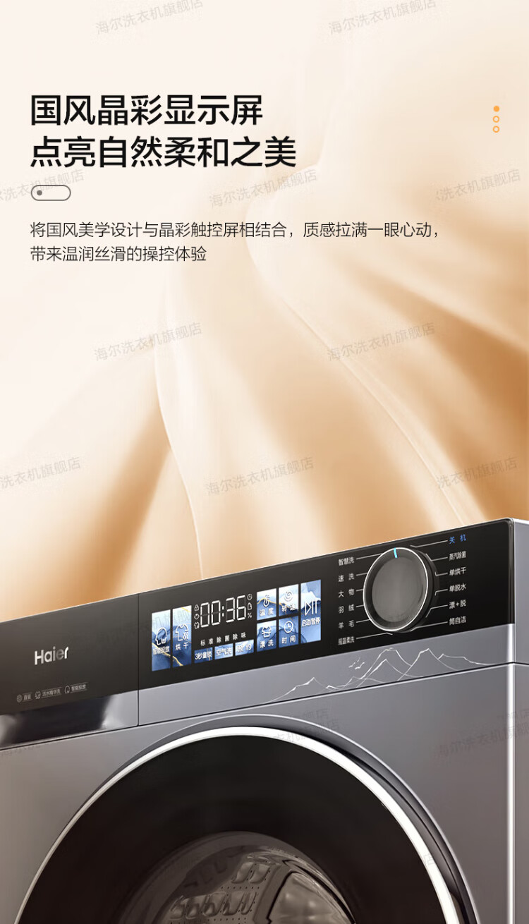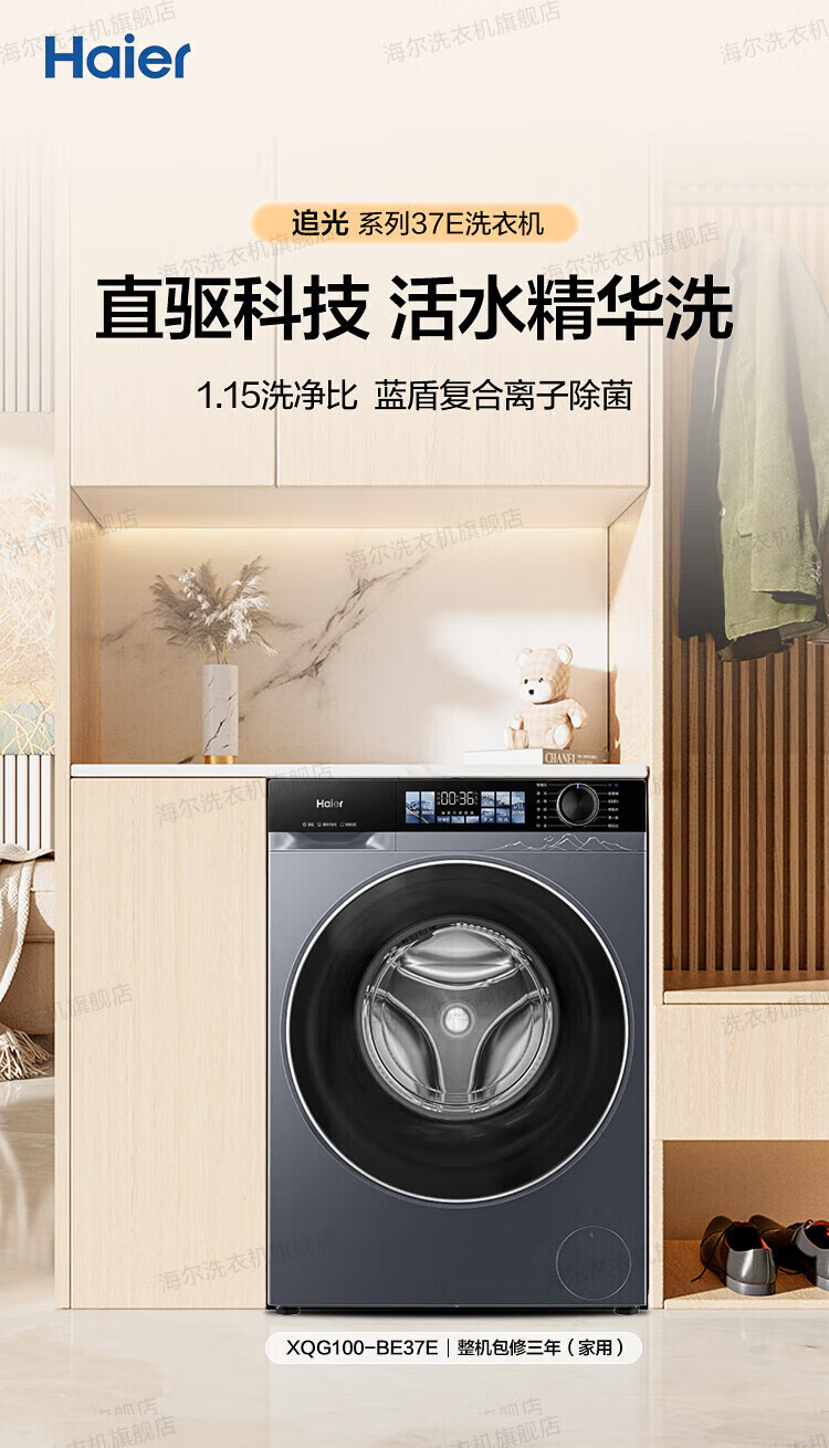 Haier flagship Yunxi 4.0 10kg crystal color screen ultra-thin direct drive drum washing machine fully automatic six-position shock-absorbing large capacity BE37E Essence Washer 2.0 national subsidy wash-out + direct drive ultra-thin + 1.15 washing ratio + smart investment + blue shield sterilization