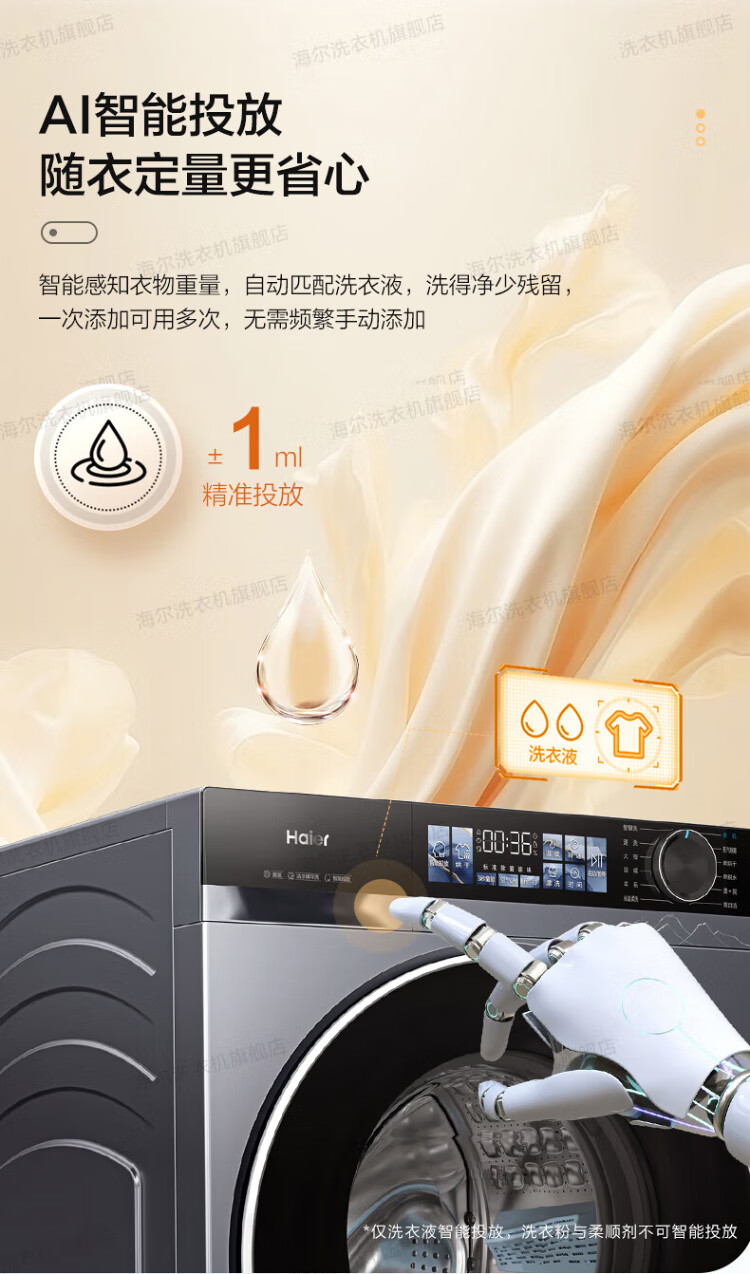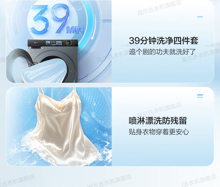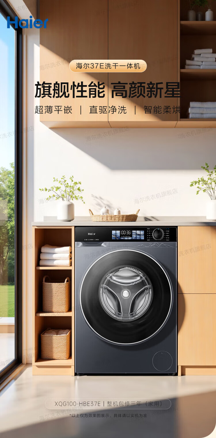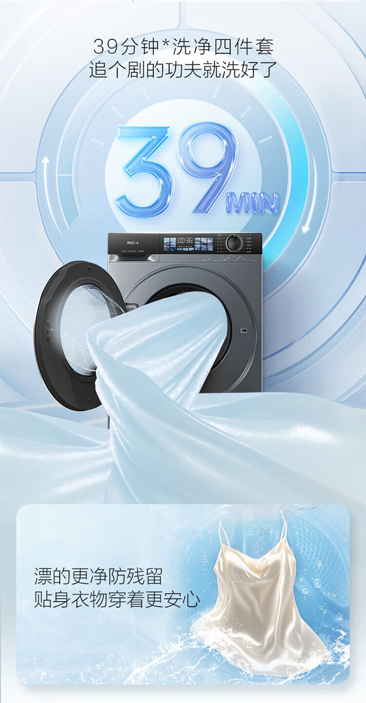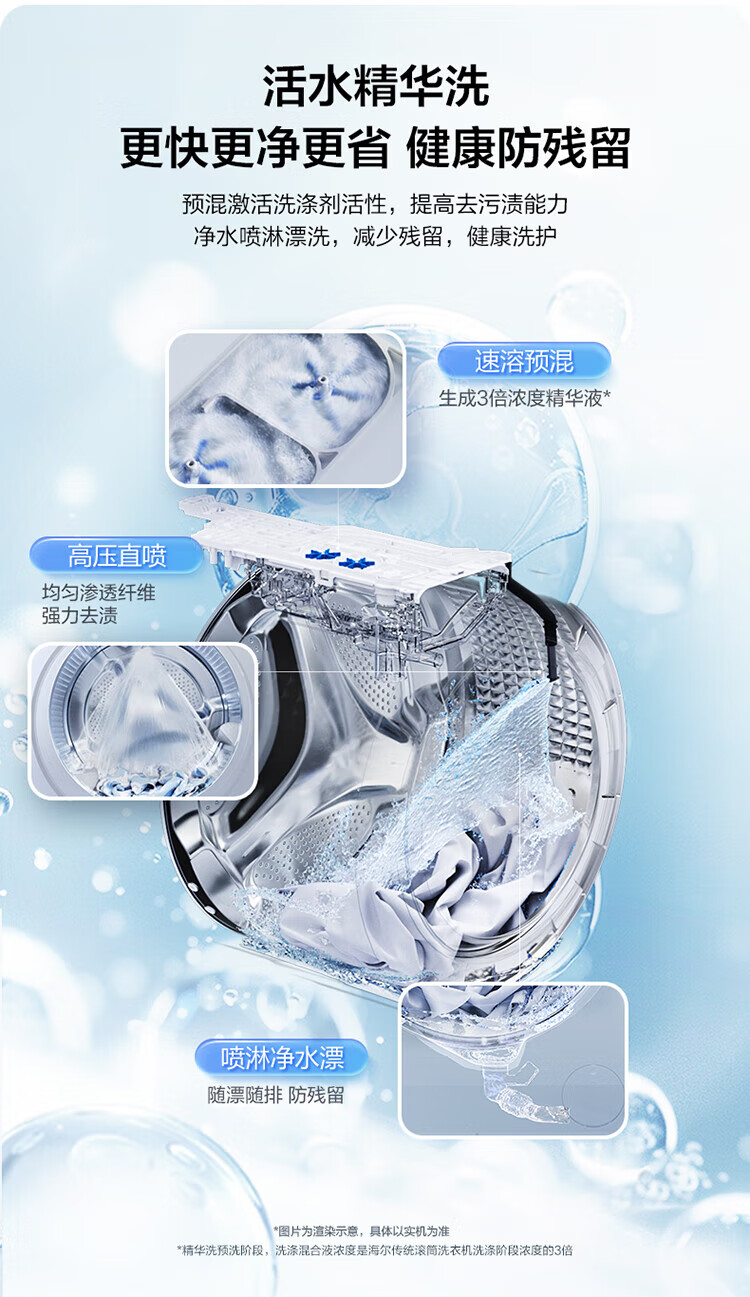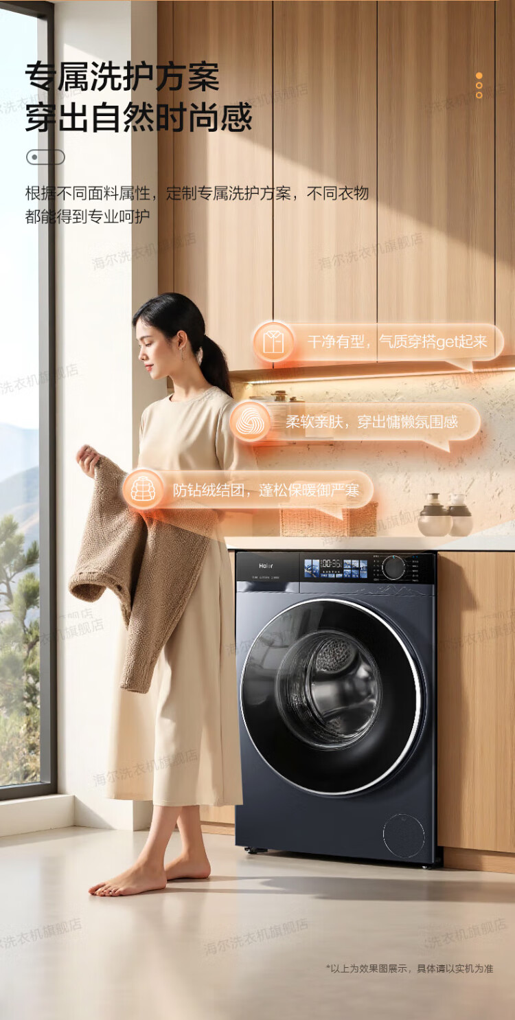 Haier flagship Yunxi 4.0 10kg crystal color screen ultra-thin direct drive drum washing machine fully automatic six-position shock-absorbing large capacity BE37E Essence Washer 2.0 national subsidy wash-out + direct drive ultra-thin + 1.15 washing ratio + smart investment + blue shield sterilization