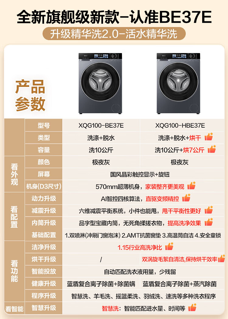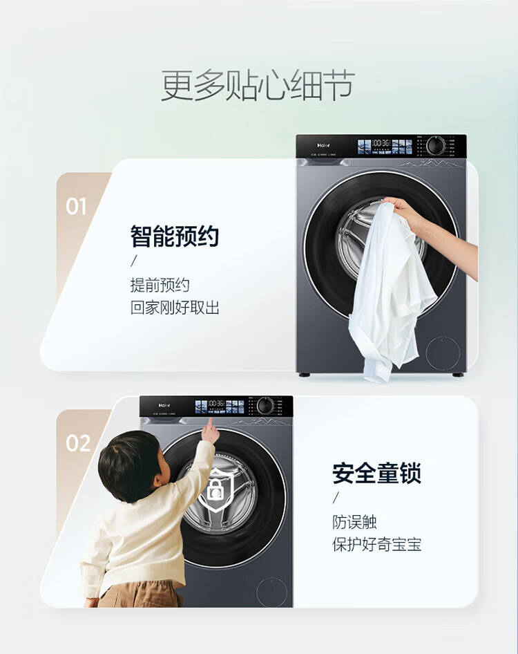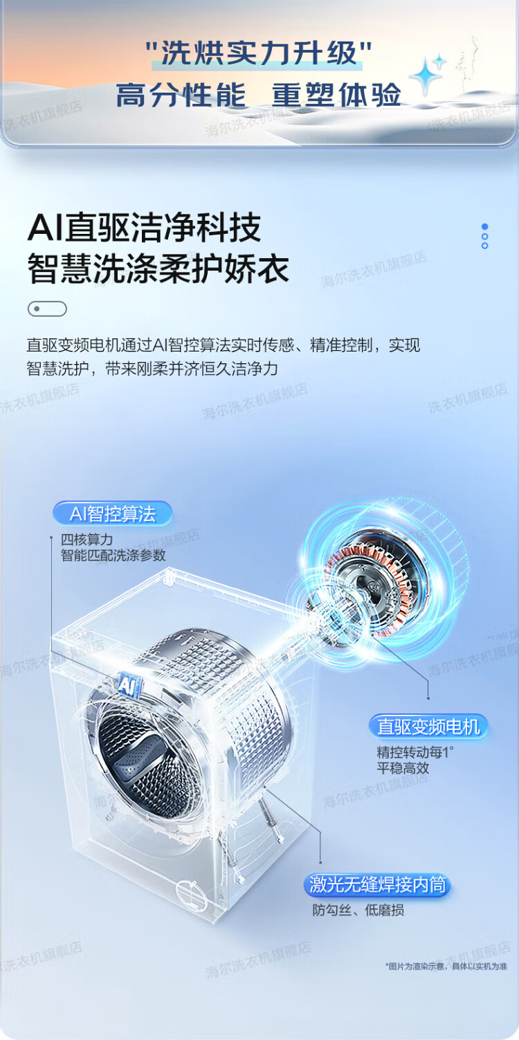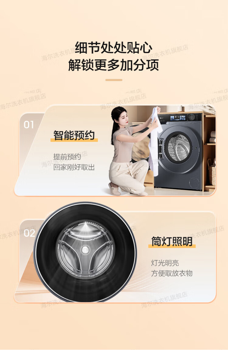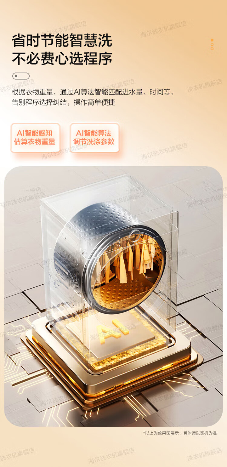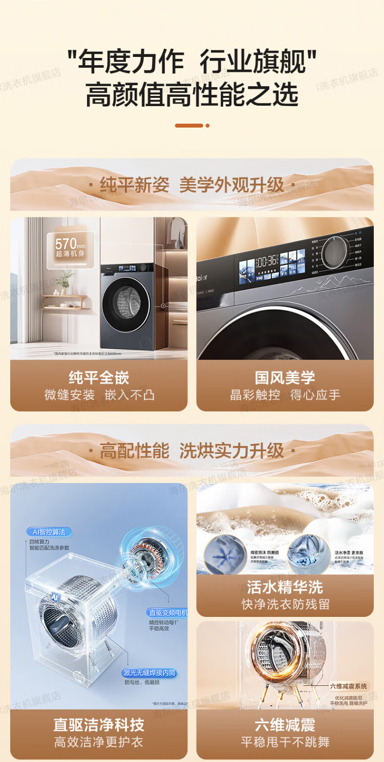 Haier flagship Yunxi 4.0 10kg crystal color screen ultra-thin direct drive drum washing machine fully automatic six-position shock-absorbing large capacity BE37E Essence Washer 2.0 national subsidy wash-out + direct drive ultra-thin + 1.15 washing ratio + smart investment + blue shield sterilization