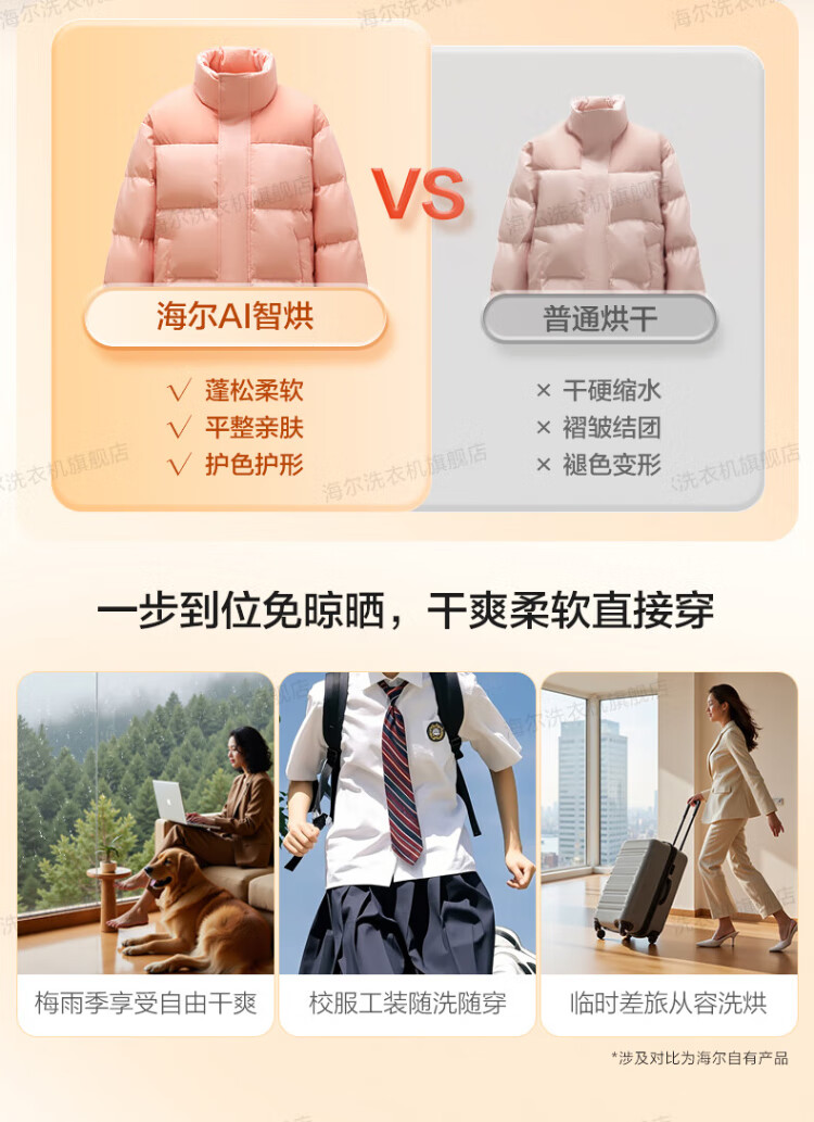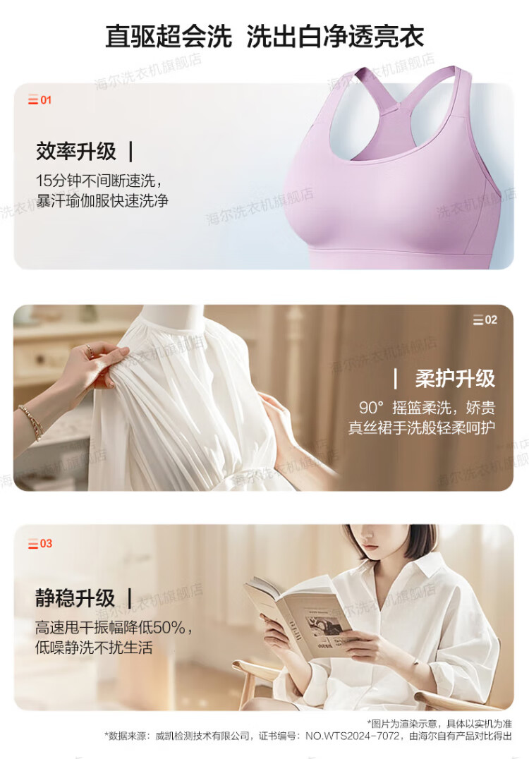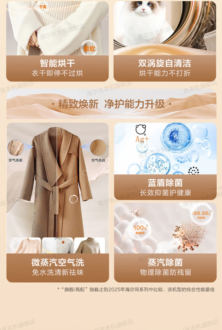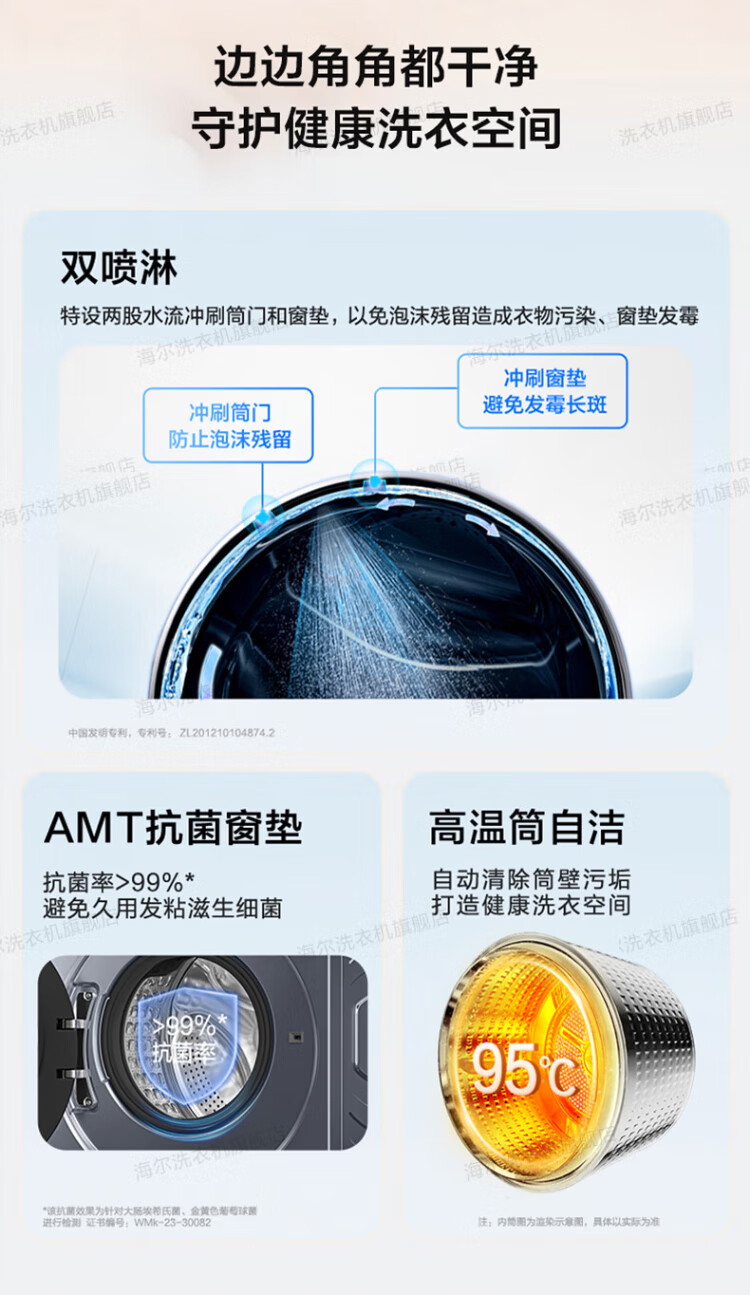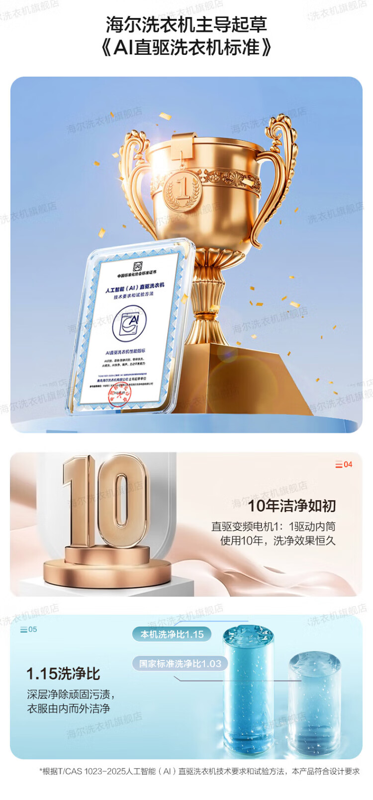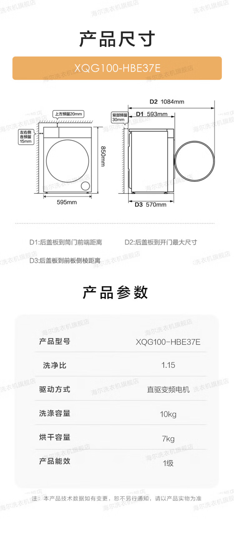 Haier flagship Yunxi 4.0 10kg crystal color screen ultra-thin direct drive drum washing machine fully automatic six-position shock-absorbing large capacity BE37E Essence Washer 2.0 national subsidy wash-out + direct drive ultra-thin + 1.15 washing ratio + smart investment + blue shield sterilization