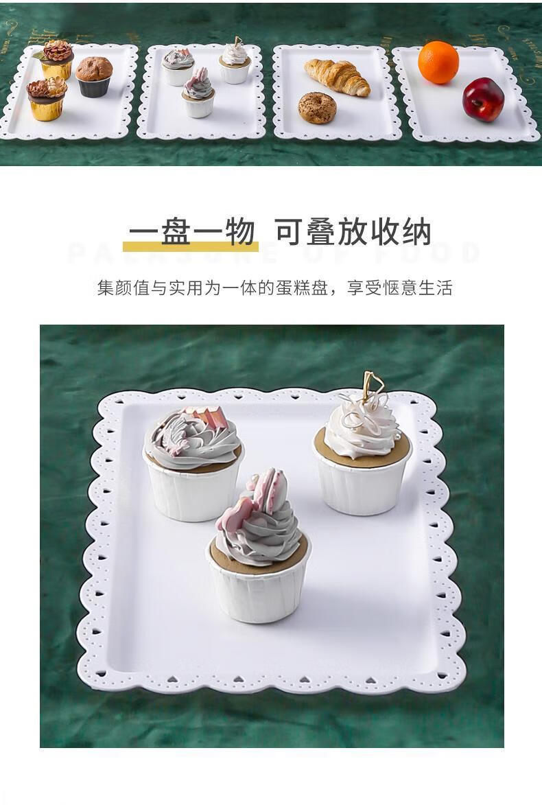 Bodenju Baked White Dessert Fruit Plastic Plate Rectangular Home Dessert Bakery Cabinet Cake Display Plate Exquisite Lace Lace Rectangular Plate*1