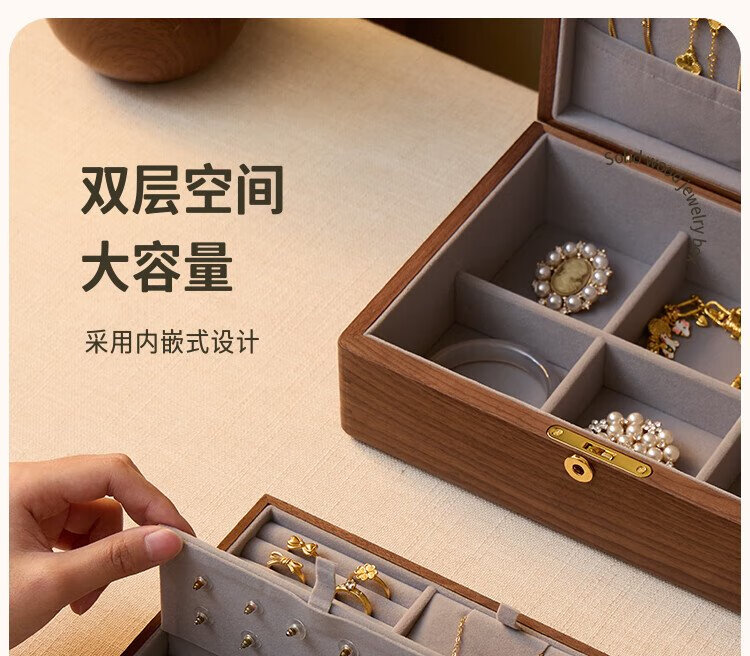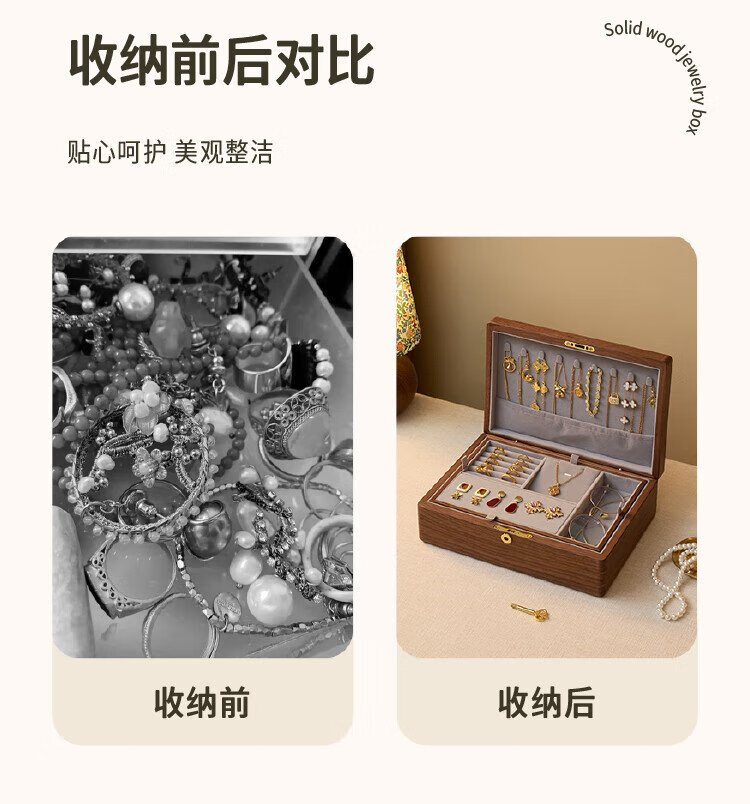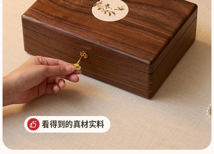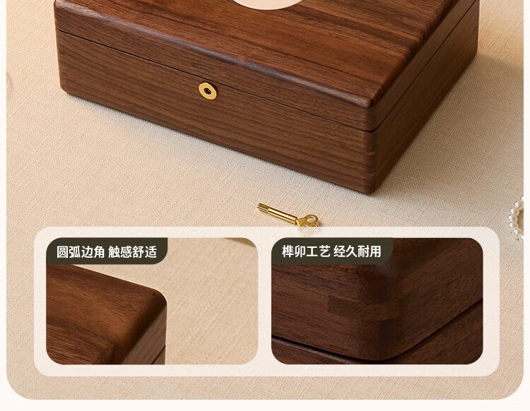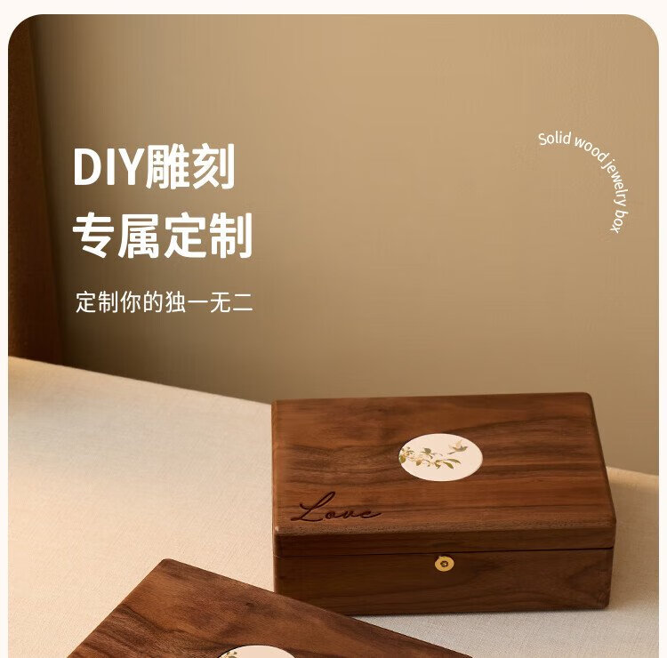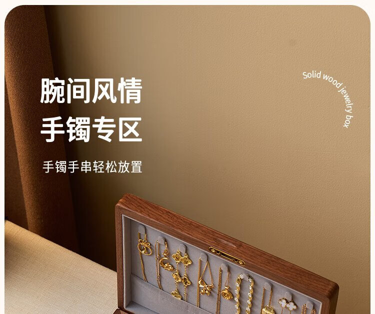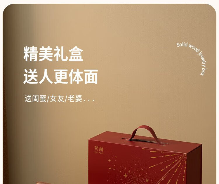 Fanhan solid wood jewelry box new style Chinese jewelry box Valentine's Day gift high-end exquisite jewelry storage box New Year's gift Yuezhi double layer large size with lock black walnut