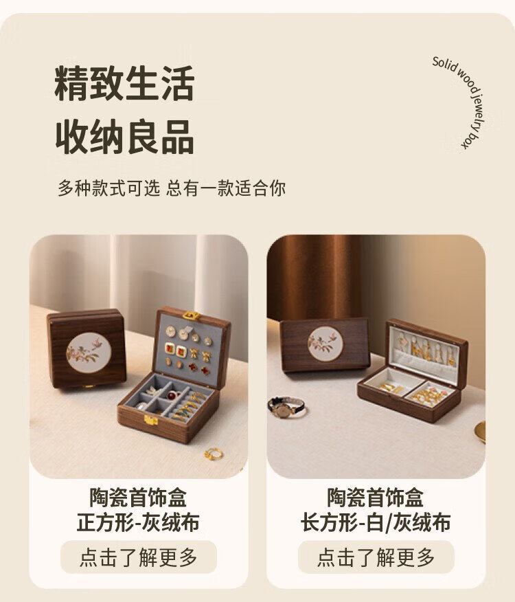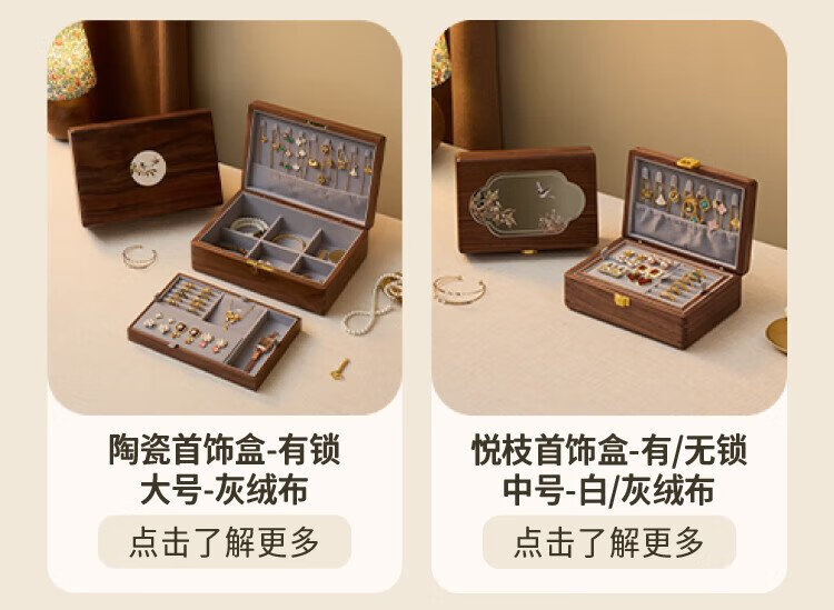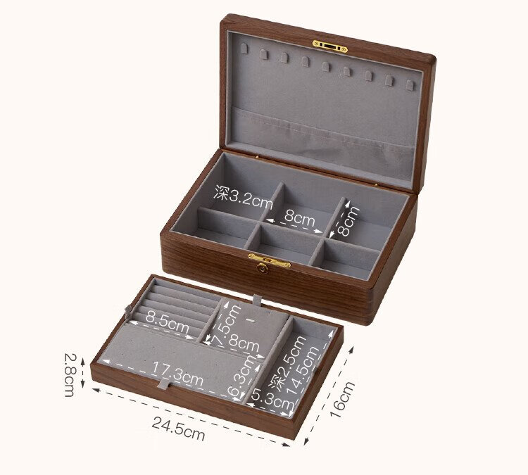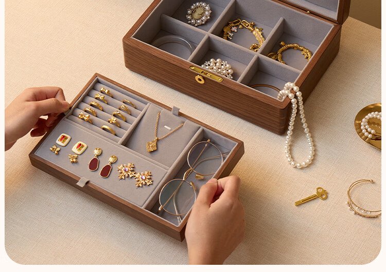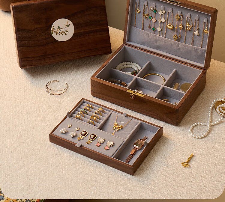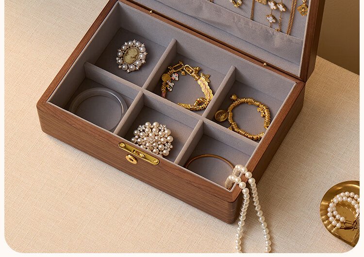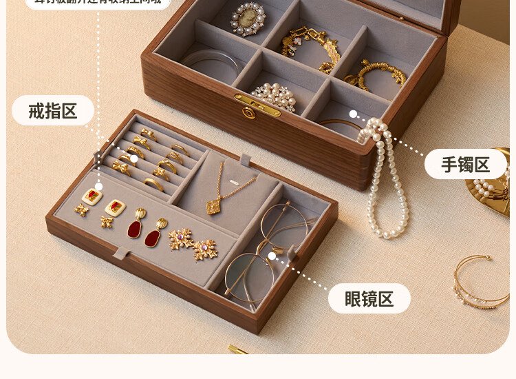 Fanhan solid wood jewelry box new style Chinese jewelry box Valentine's Day gift high-end exquisite jewelry storage box New Year's gift Yuezhi double layer large size with lock black walnut