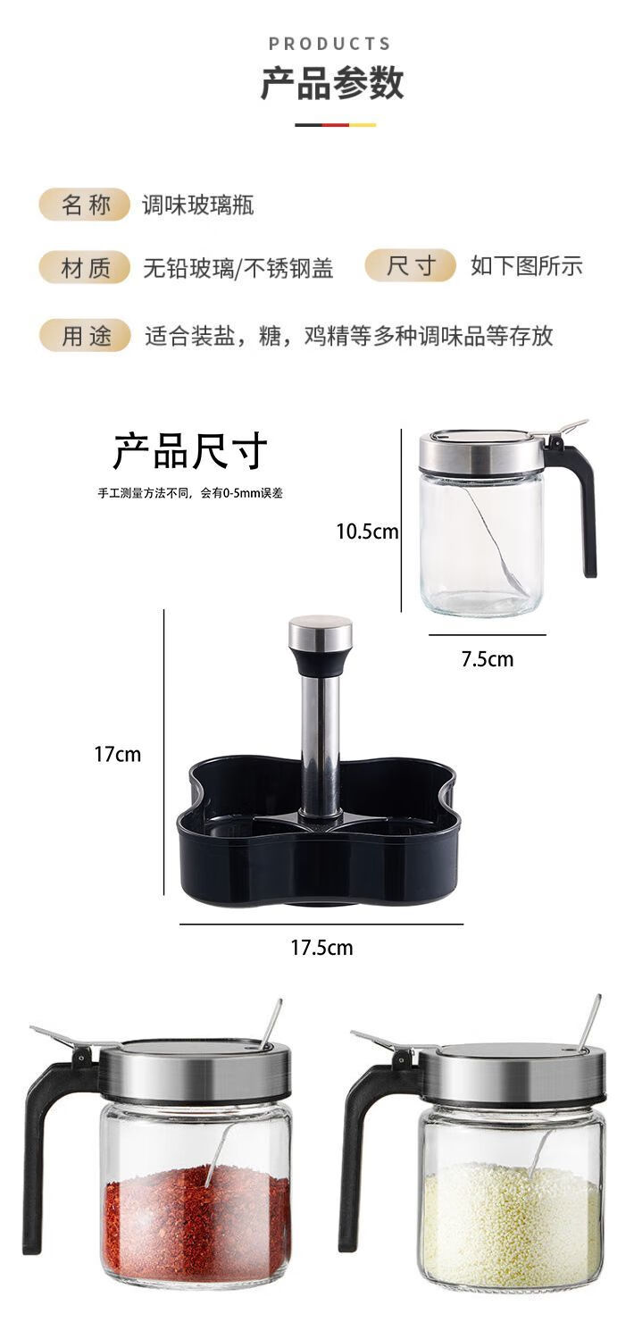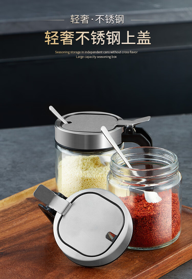 Bodenju high-end kitchen seasoning box salt shaker seasoning jar glass seasoning bottle household seasoning jar storage box combination set lead-free glass (can hold 400g salt) 350ml sharing pack 2 (free stainless steel spoon + label)
