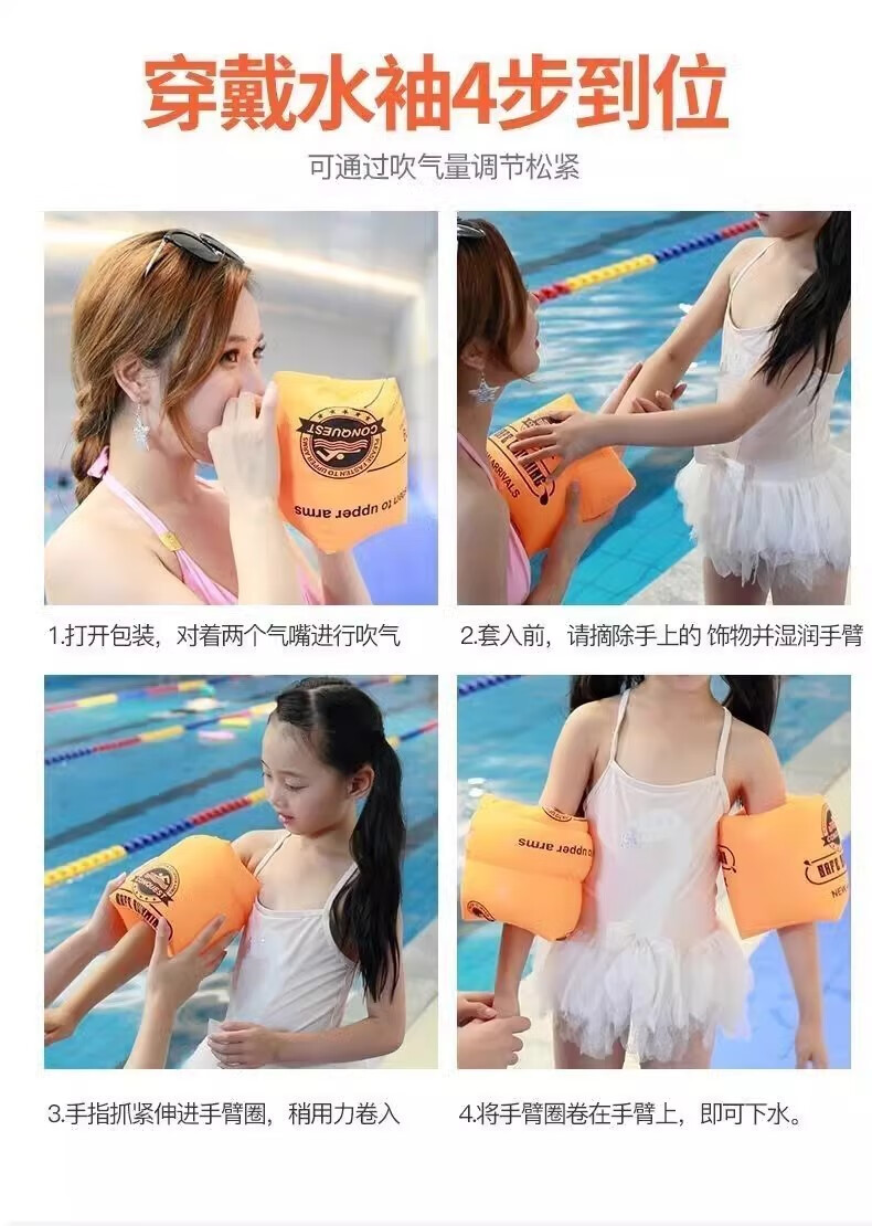 Shantou Lin Village Children's Floating Swim Ring Water Sleeve Artifact Baby Arm Ring Life-Saving Airbag Upgraded Extra Thick Orange 2 Pairs Pack of 4